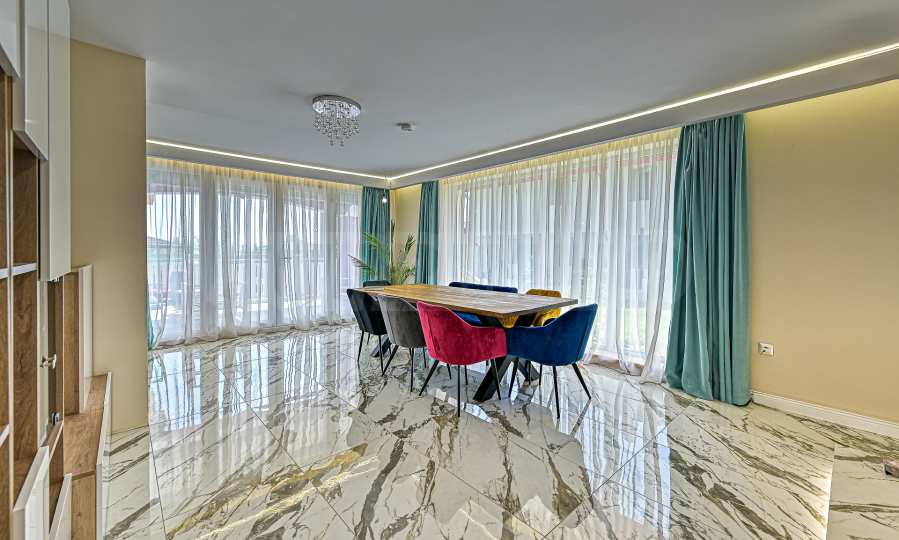 The house is built and finished with high-quality materials, fully furnished and equipped with appliances and furniture of the highest class: The heating in the whole house is underfloor heating: