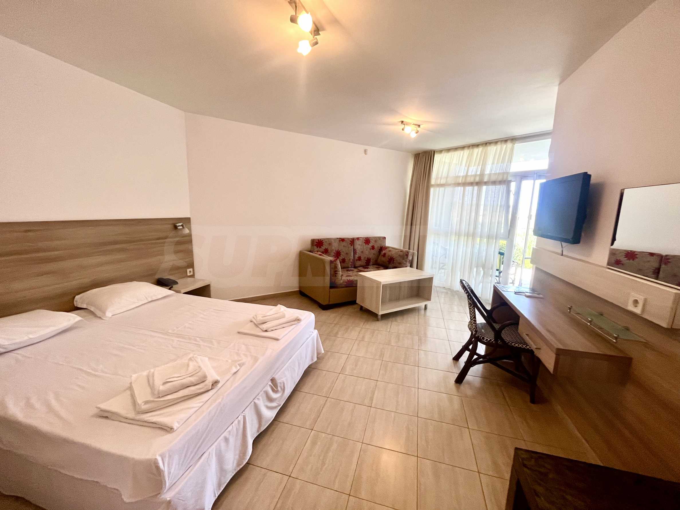 The property is part of a complex with amenities, a three-star modern resort with a lobby bar and restaurant, swimming pool, children's pool and playground, garden, etc. The maintenance fee for the apartment is 10.80 euros per square meter per year.