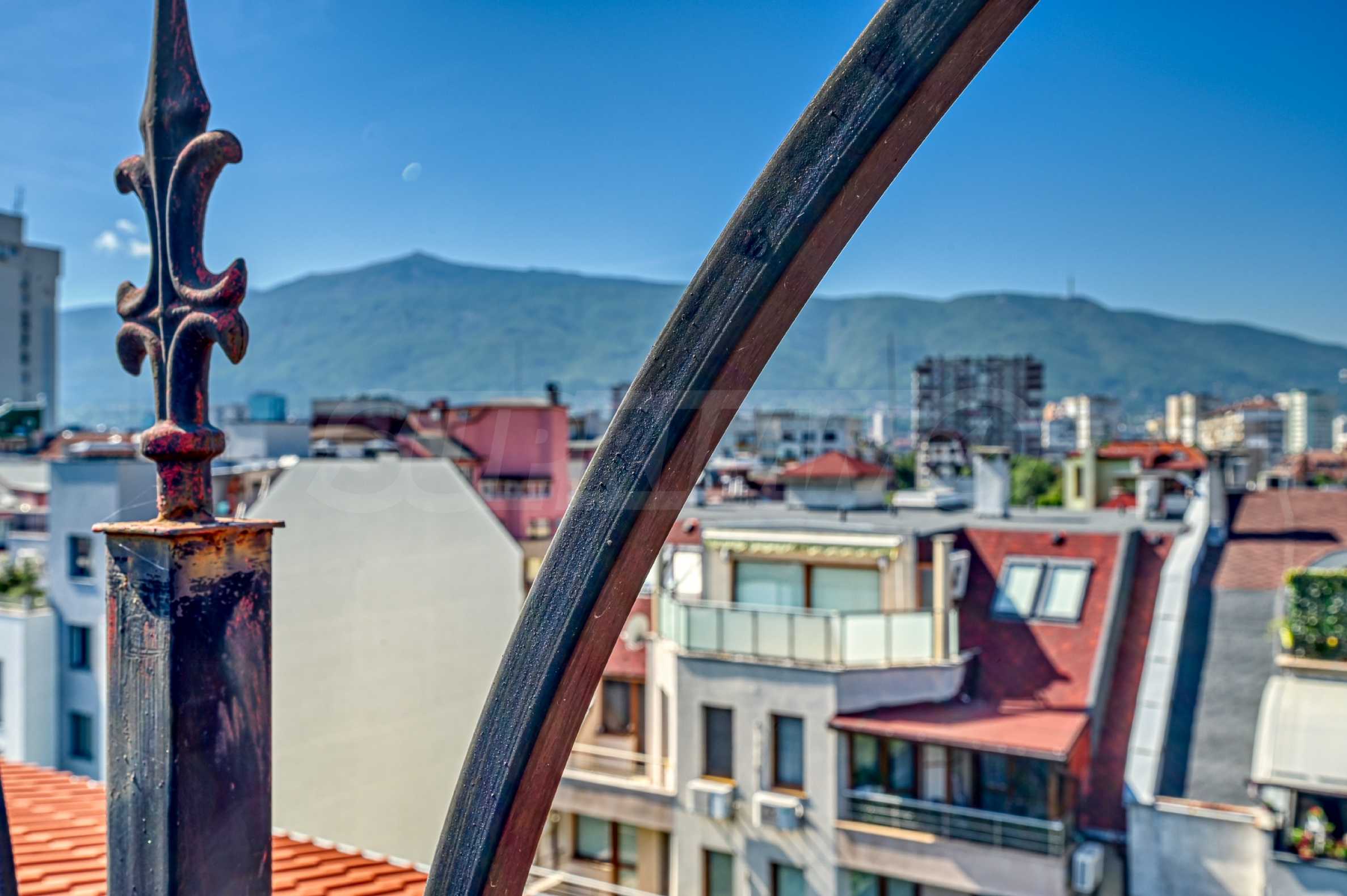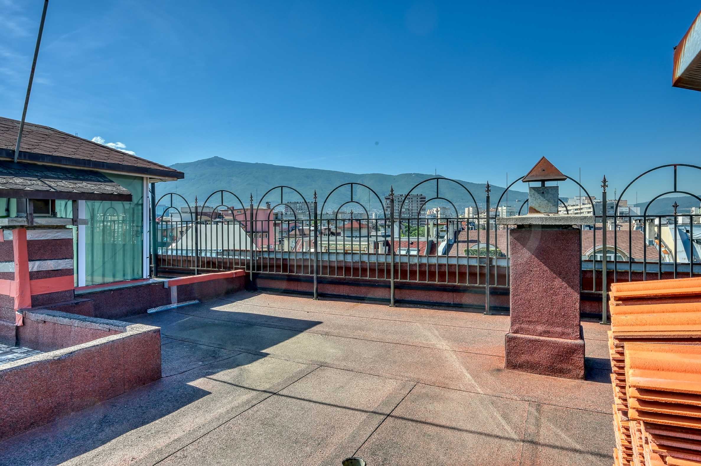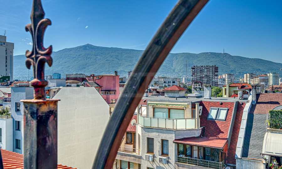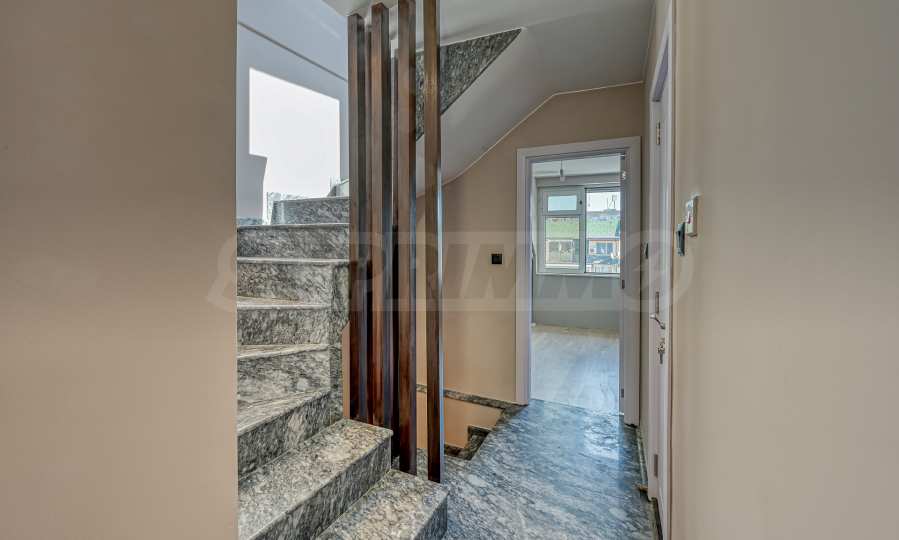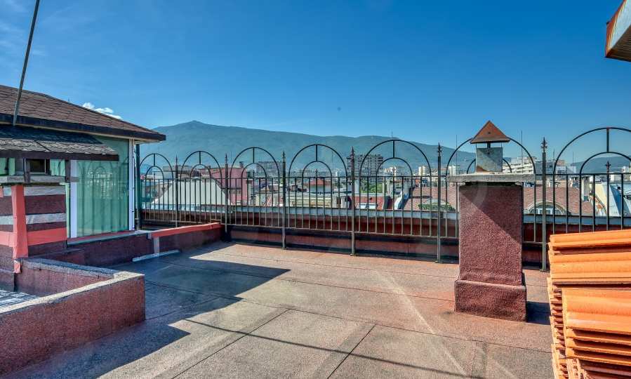 - First level - 105.8m2, which includes a large living room with a kitchenette and a winter garden (47m2), a terrace of 8.7m2 with a guaranteed view of the Vitosha mountain and a densely landscaped street, a corridor, a bathroom with a toilet (5m2), a separate bedroom/office (16.7m2) to it glazed terrace (4.3m2) staircase to the second level.