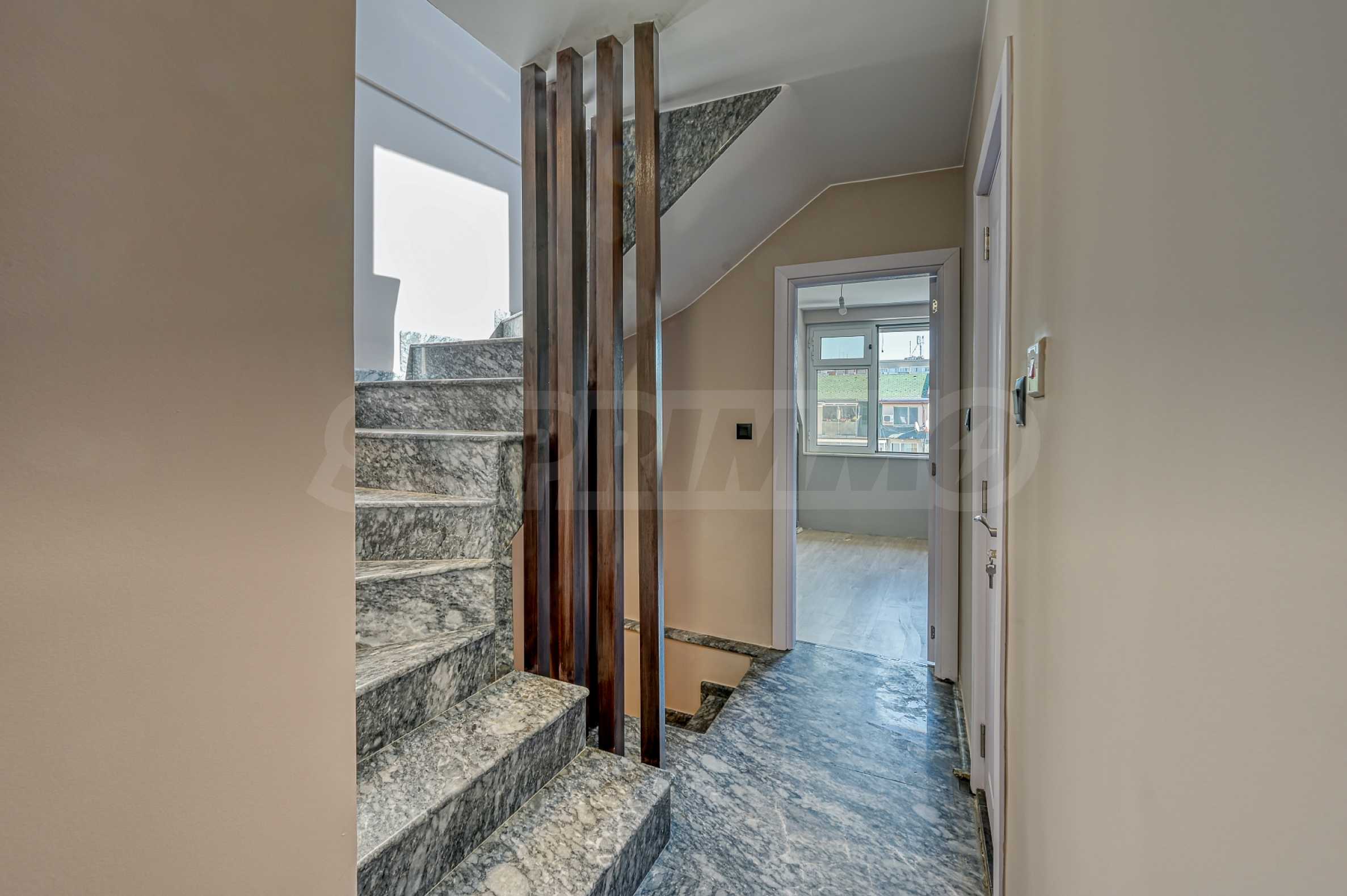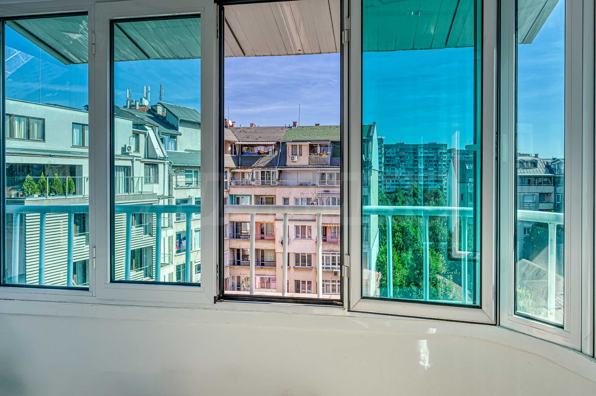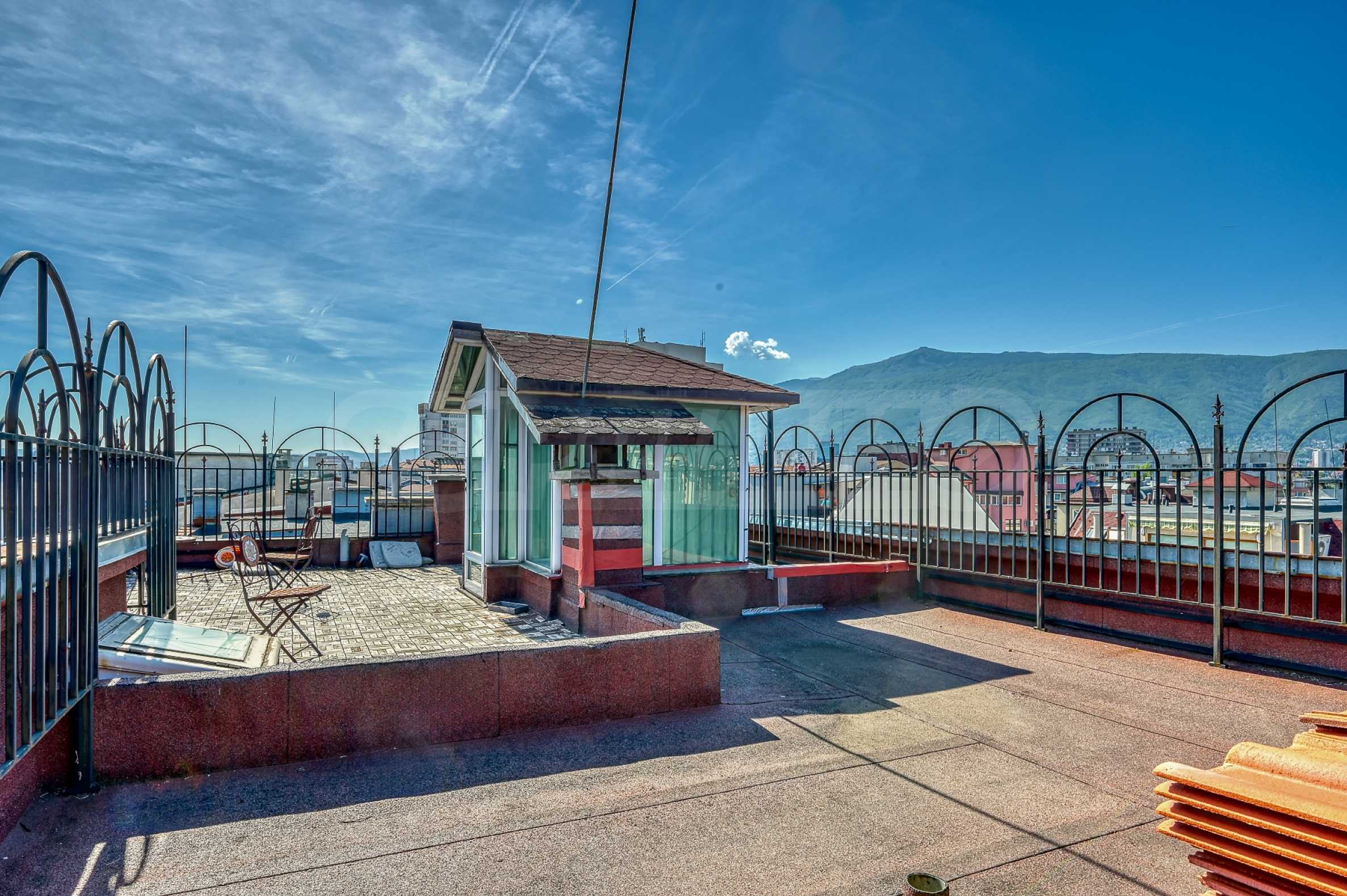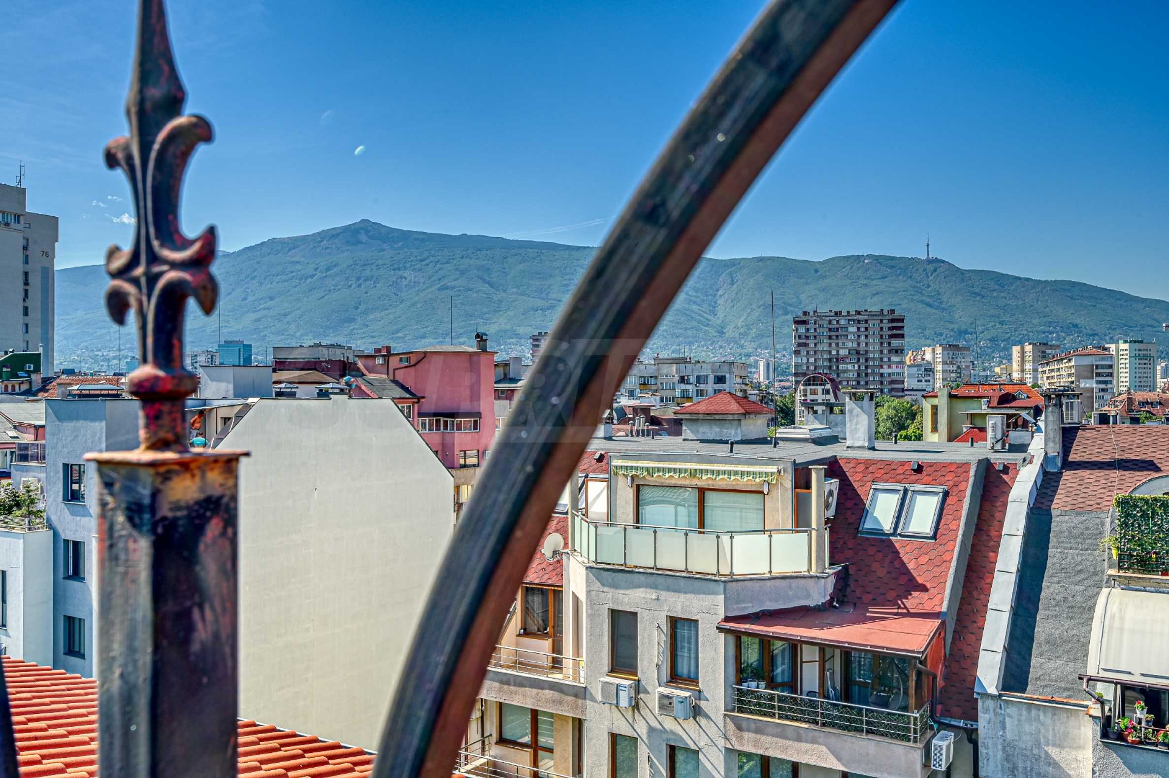 - First level - 105.8m2, which includes a large living room with a kitchenette and a winter garden (47m2), a terrace of 8.7m2 with a guaranteed view of the Vitosha mountain and a densely landscaped street, a corridor, a bathroom with a toilet (5m2), a separate bedroom/office (16.7m2) to it glazed terrace (4.3m2) staircase to the second level.
