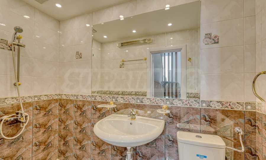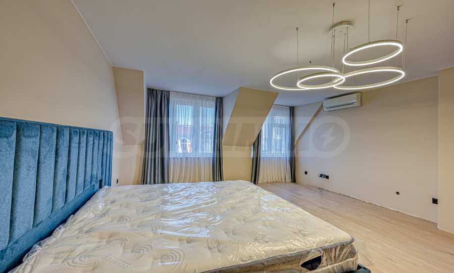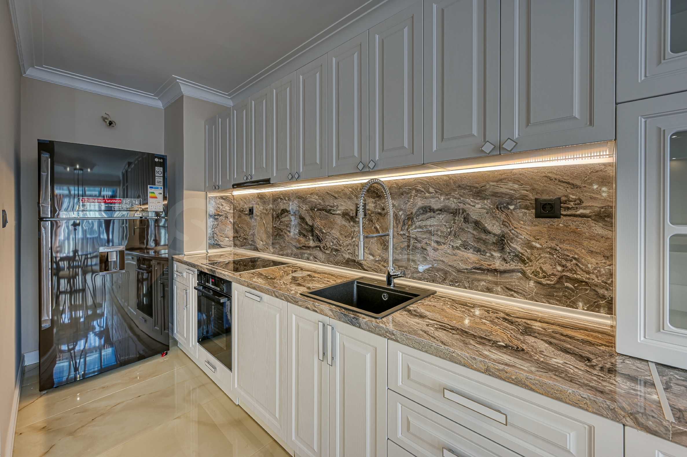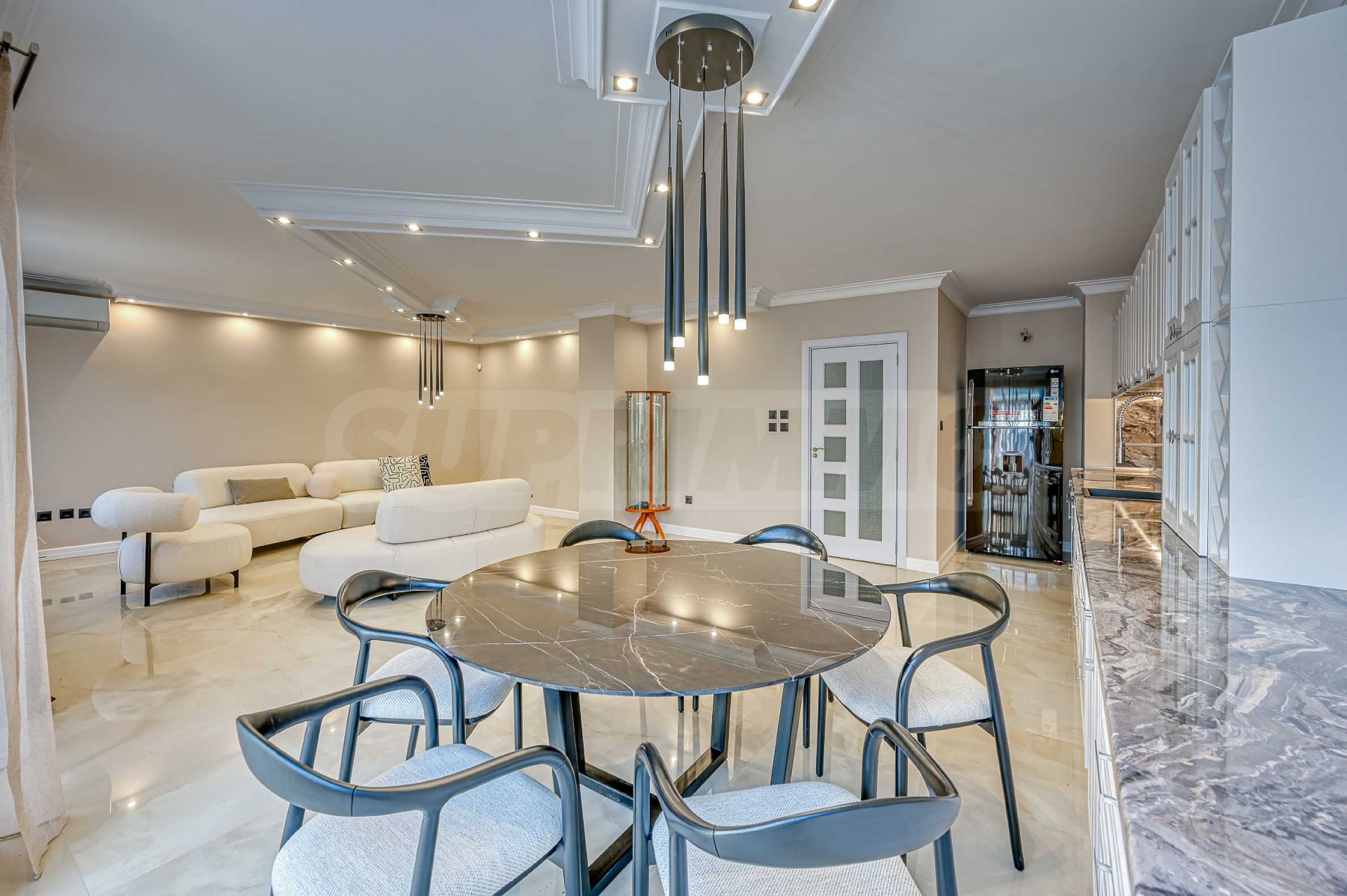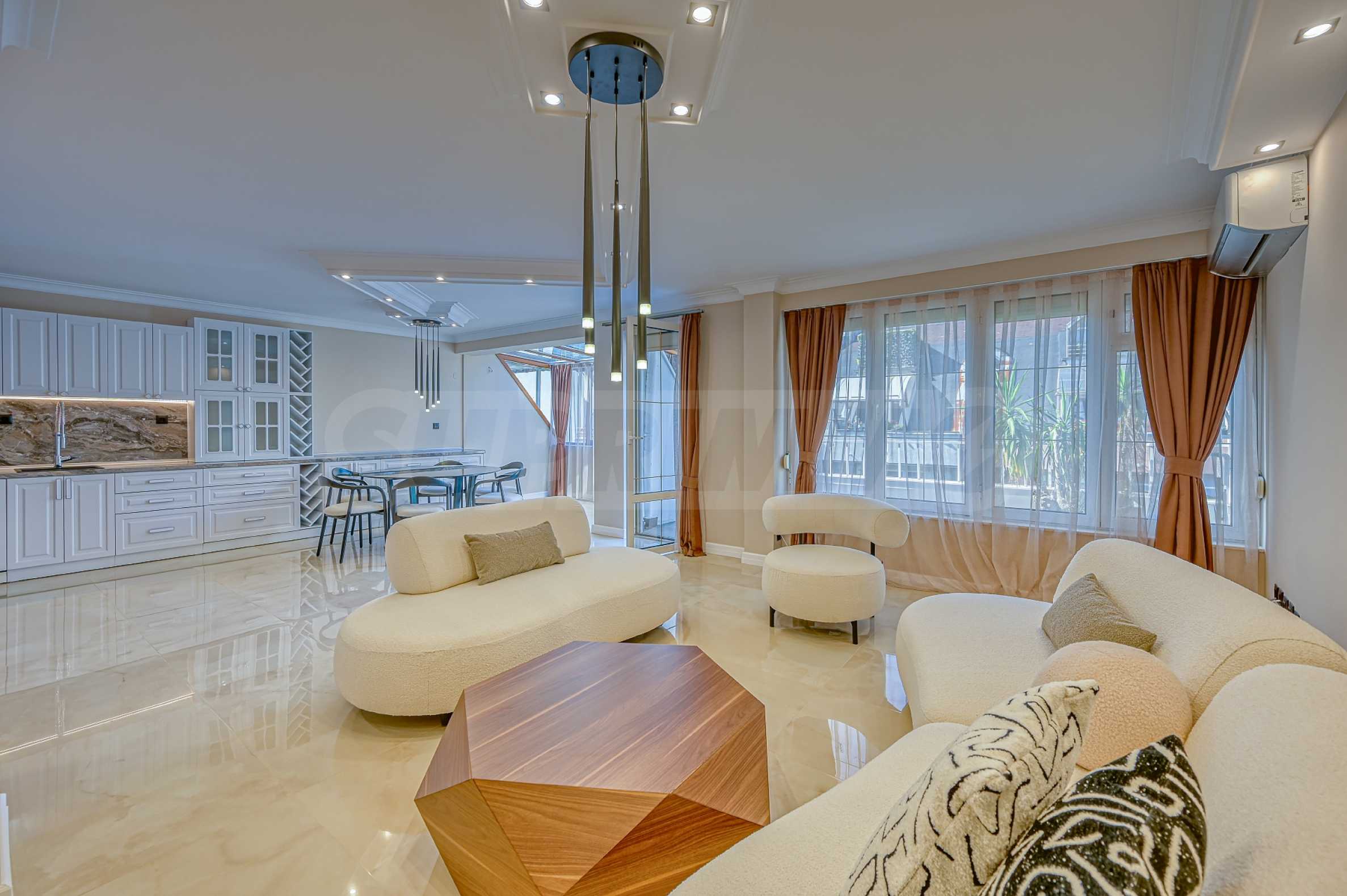 The apartment has undergone a complete renovation, with the replacement of flooring - stone, granite, marble stairs, natural parquet, complete putty and latex on walls and ceilings, top-class armored entrance door with video intercom system, security system, new lighting fixtures, complete replacement of EL and VIK installations, wiring for the Internet, custom-made kitchen with a massive worktop, brand new TEKA, LG, BOSH appliances with a 5-year warranty, custom-made upholstered furniture and dining table, new bedrooms and high-class mattresses. Heating and cooling are organized by means of inverter air conditioners in each room, and hot water from two boilers. The maisonette is sunny all day long thanks to the good exposure - East - West.