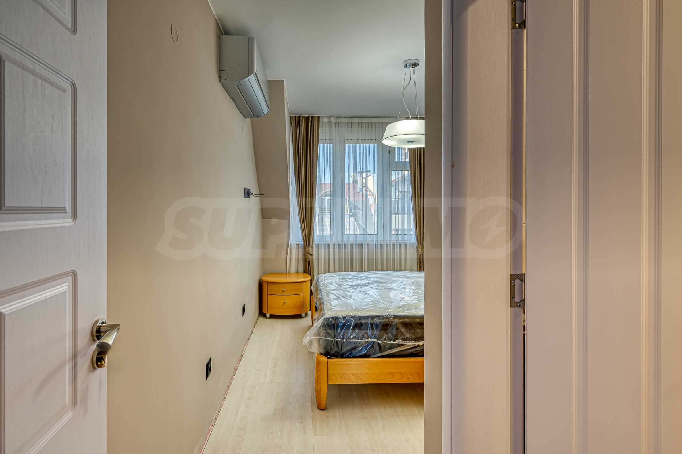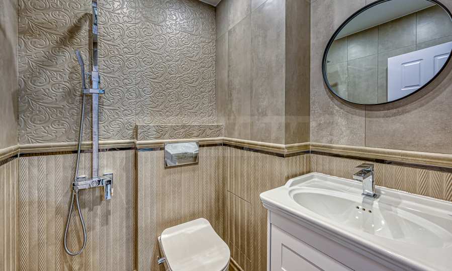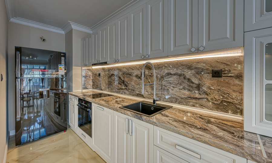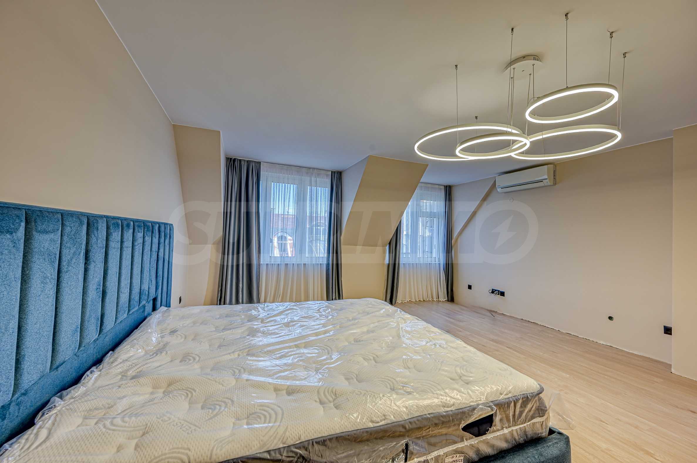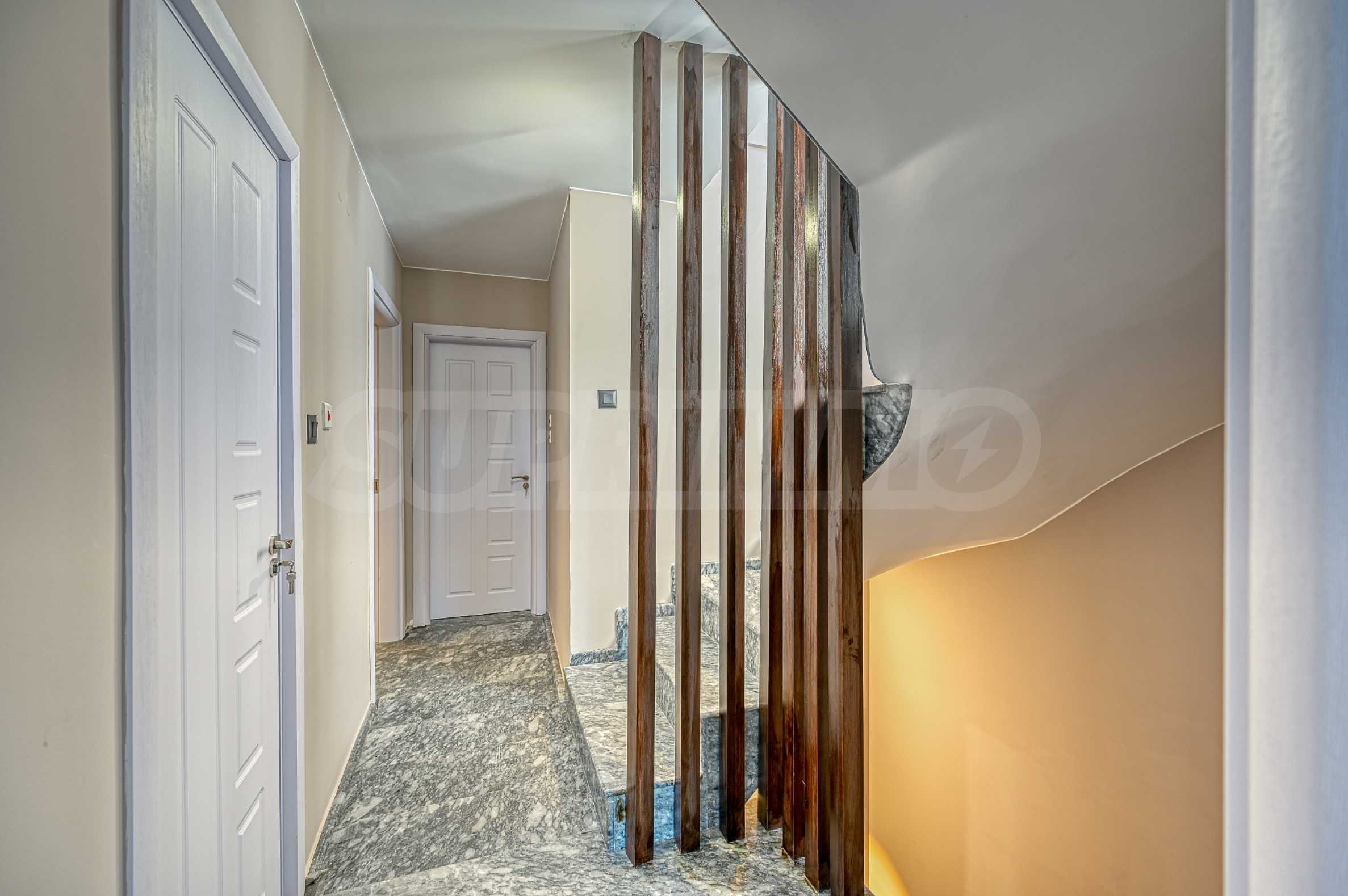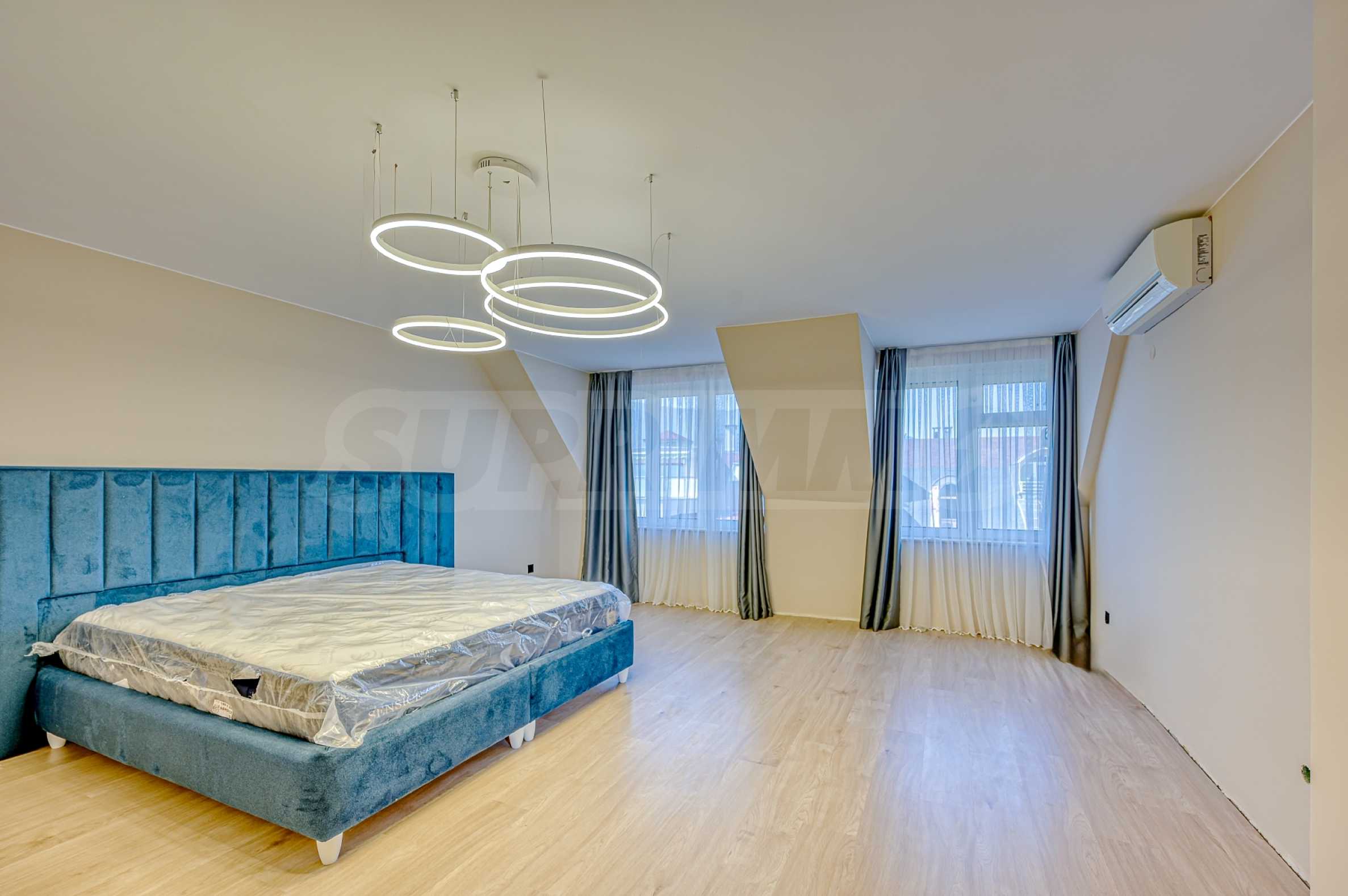 The apartment has undergone a complete renovation, with the replacement of flooring - stone, granite, marble stairs, natural parquet, complete putty and latex on walls and ceilings, top-class armored entrance door with video intercom system, security system, new lighting fixtures, complete replacement of EL and VIK installations, wiring for the Internet, custom-made kitchen with a massive worktop, brand new TEKA, LG, BOSH appliances with a 5-year warranty, custom-made upholstered furniture and dining table, new bedrooms and high-class mattresses. Heating and cooling are organized by means of inverter air conditioners in each room, and hot water from two boilers. The maisonette is sunny all day long thanks to the good exposure - East - West.
