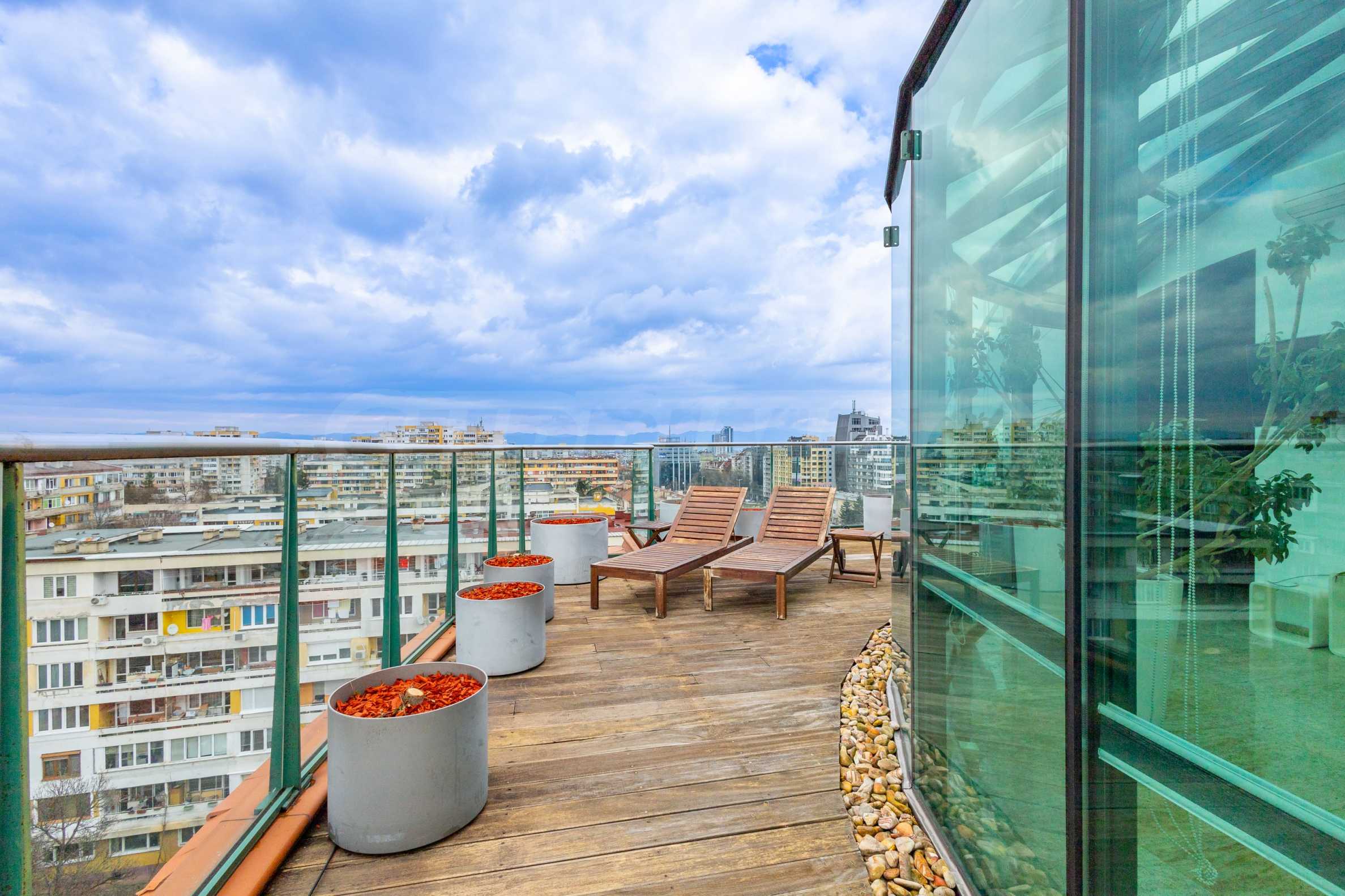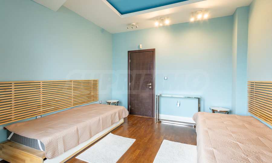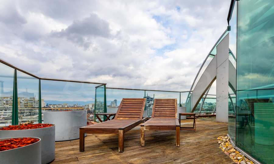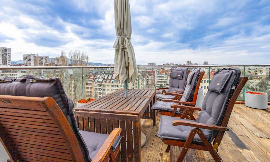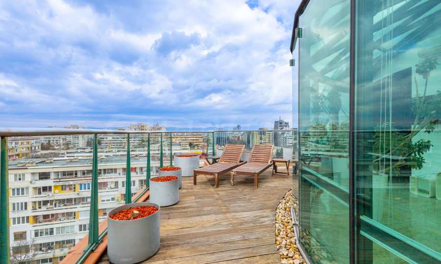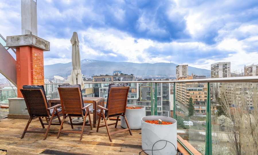 We present an impressive four-bedroom penthouse with wonderful panoramic views of Vitosha Mountain in a modern building in the Borovo district.