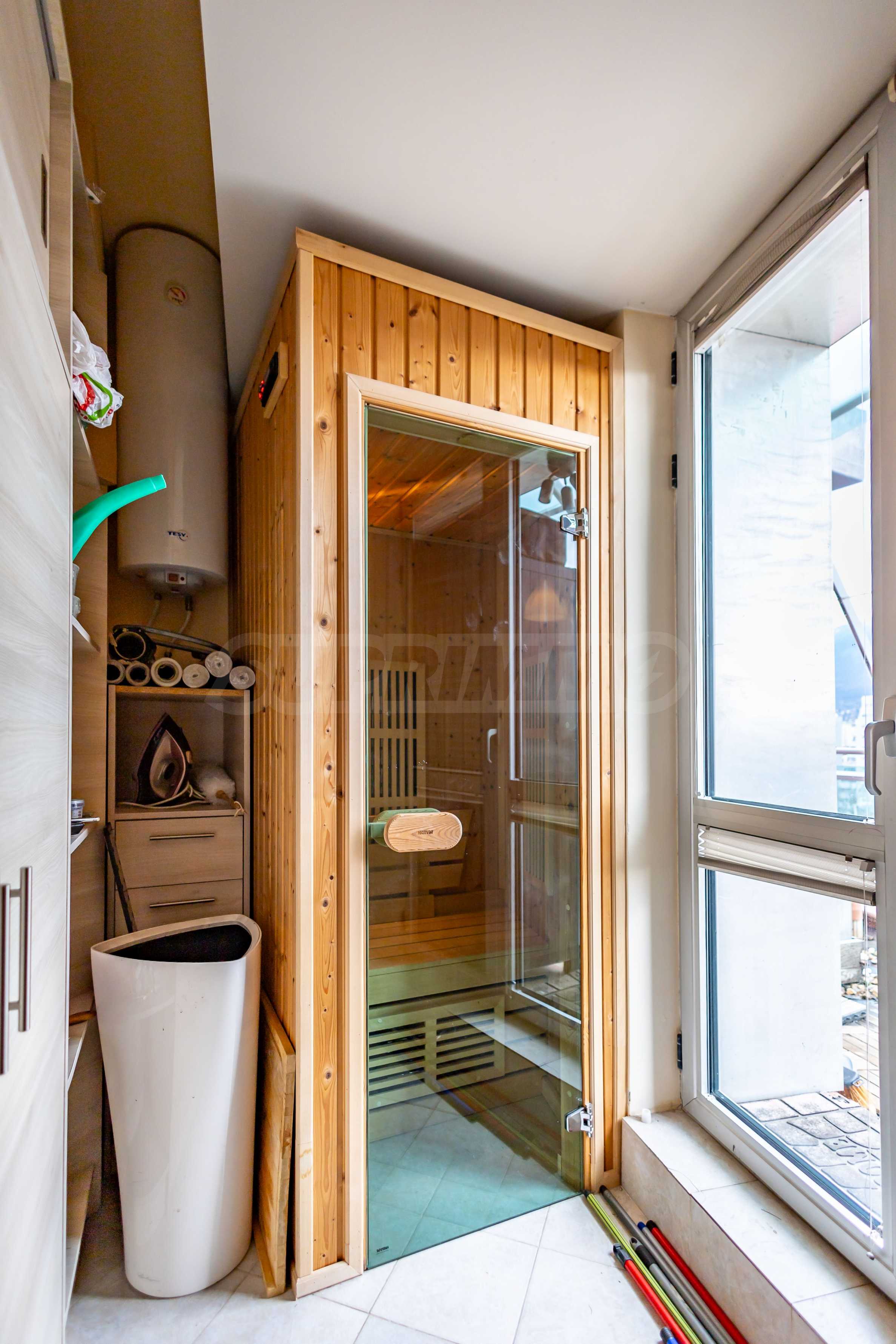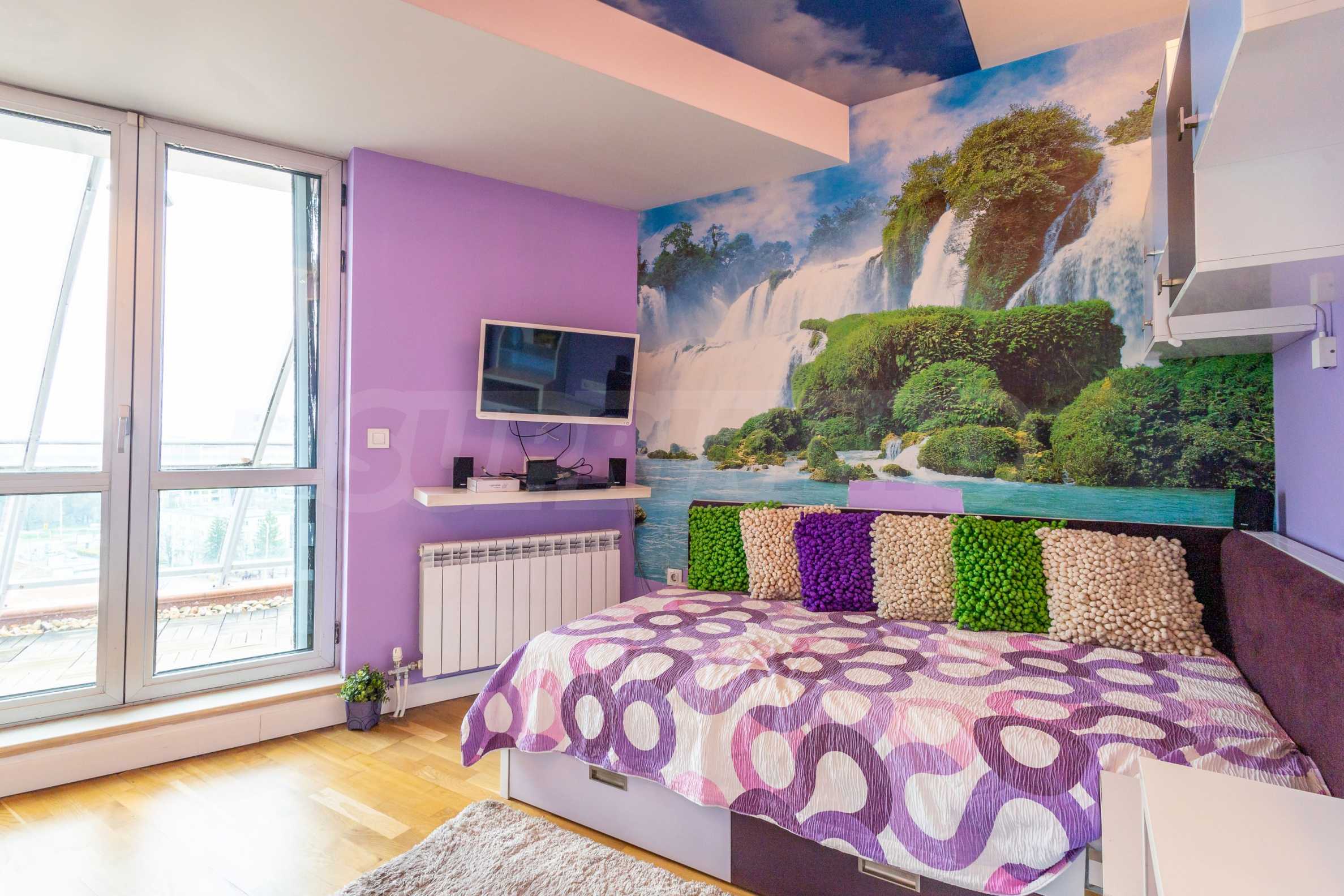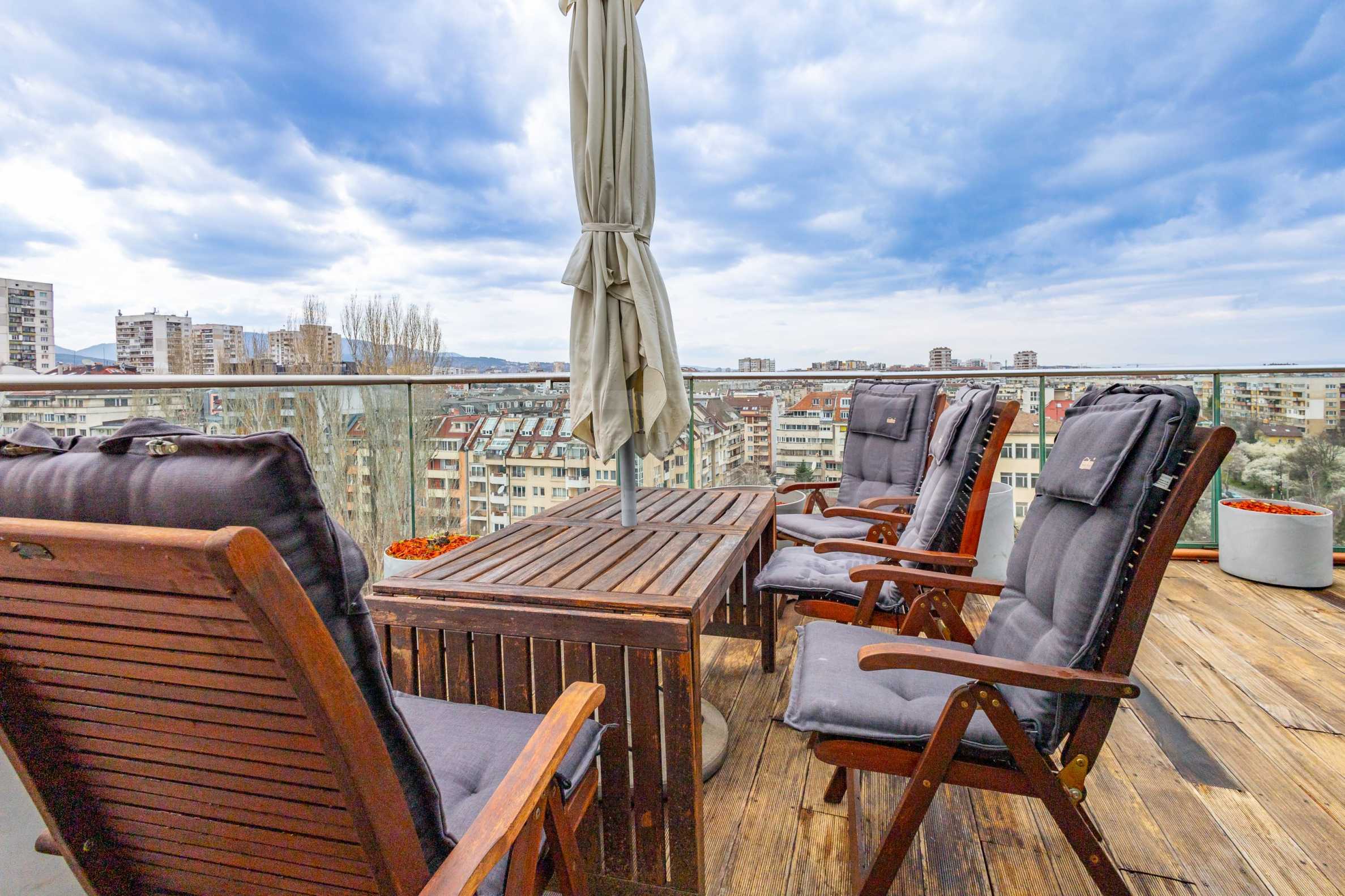 We present an impressive four-bedroom penthouse with wonderful panoramic views of Vitosha Mountain in a modern building in the Borovo district.