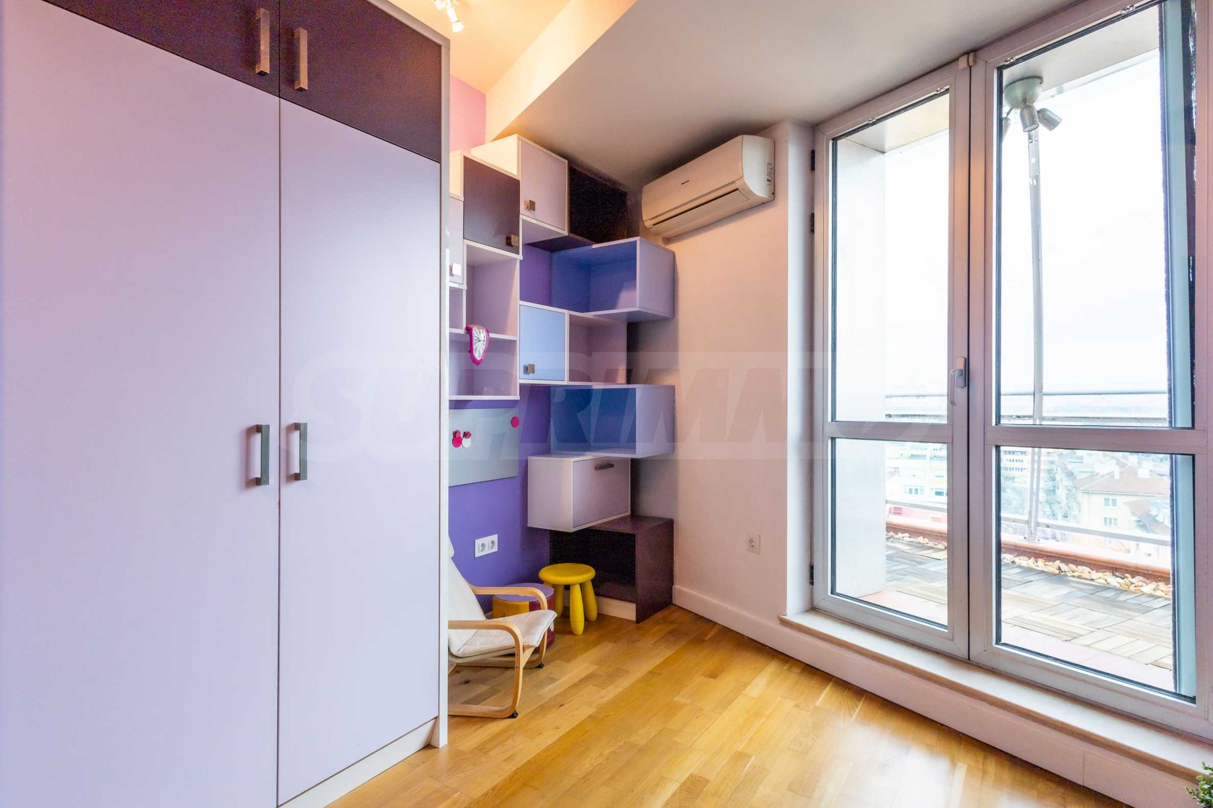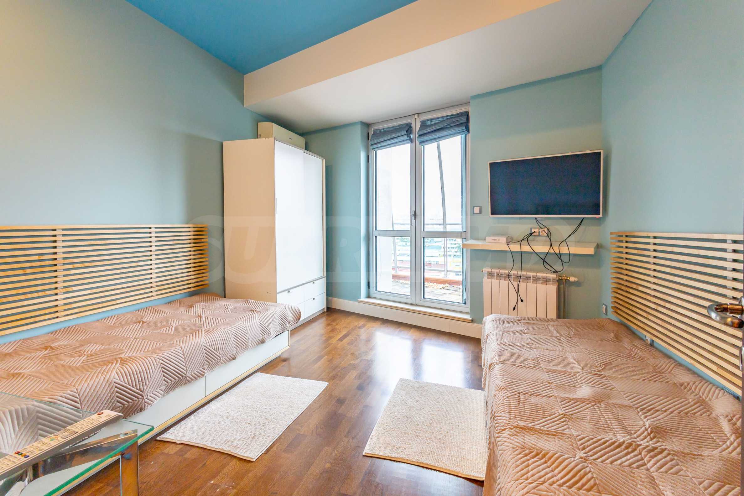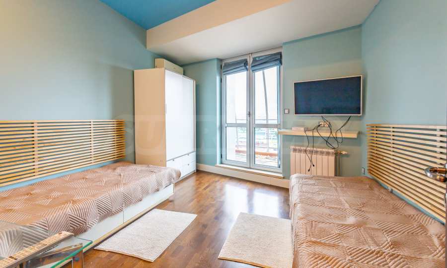 The apartment offers spacious and bright rooms with high ceilings and panoramic windows in the living room, which reveal a wonderful panoramic view of the city and Vitosha Mountain.