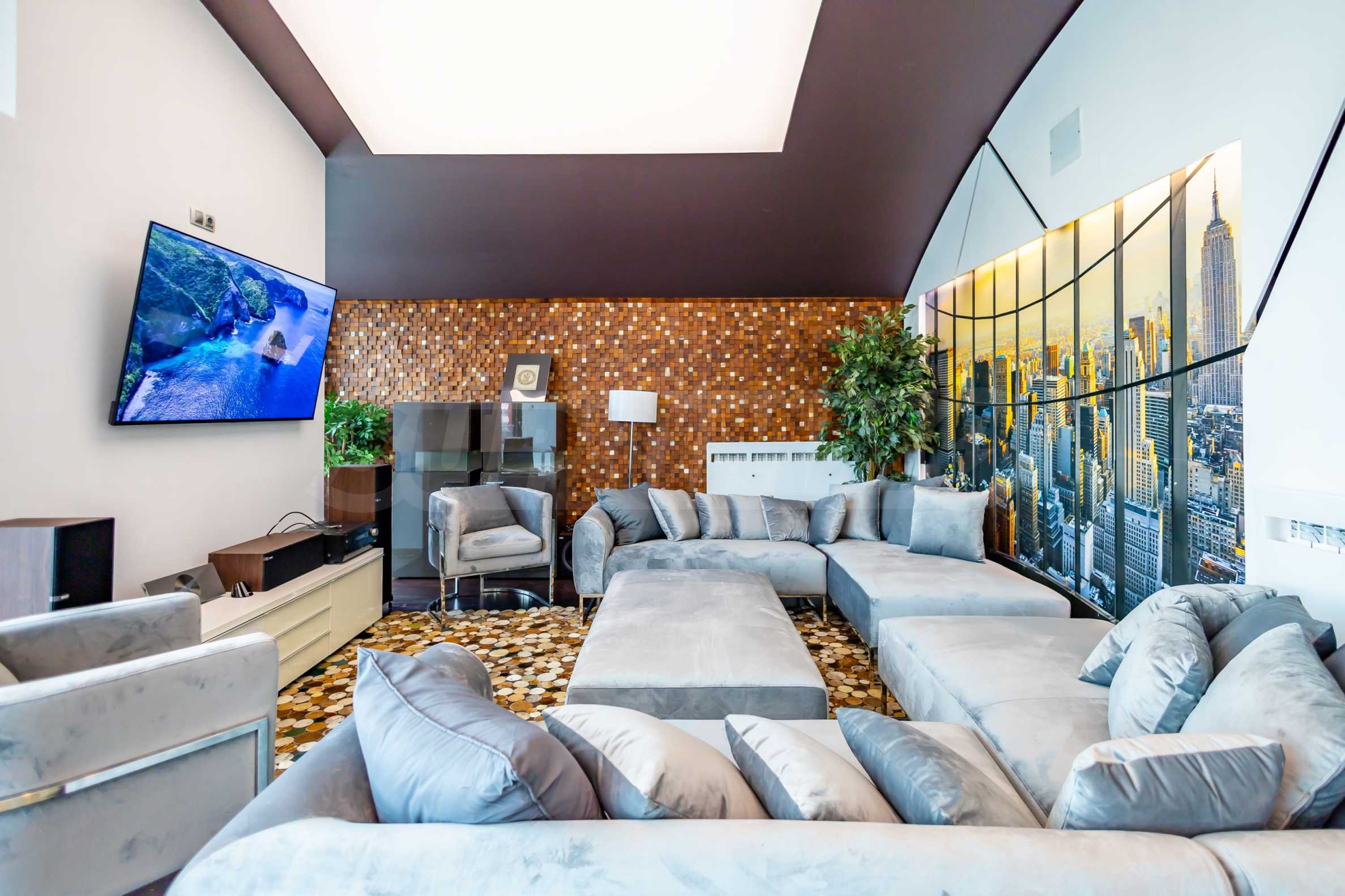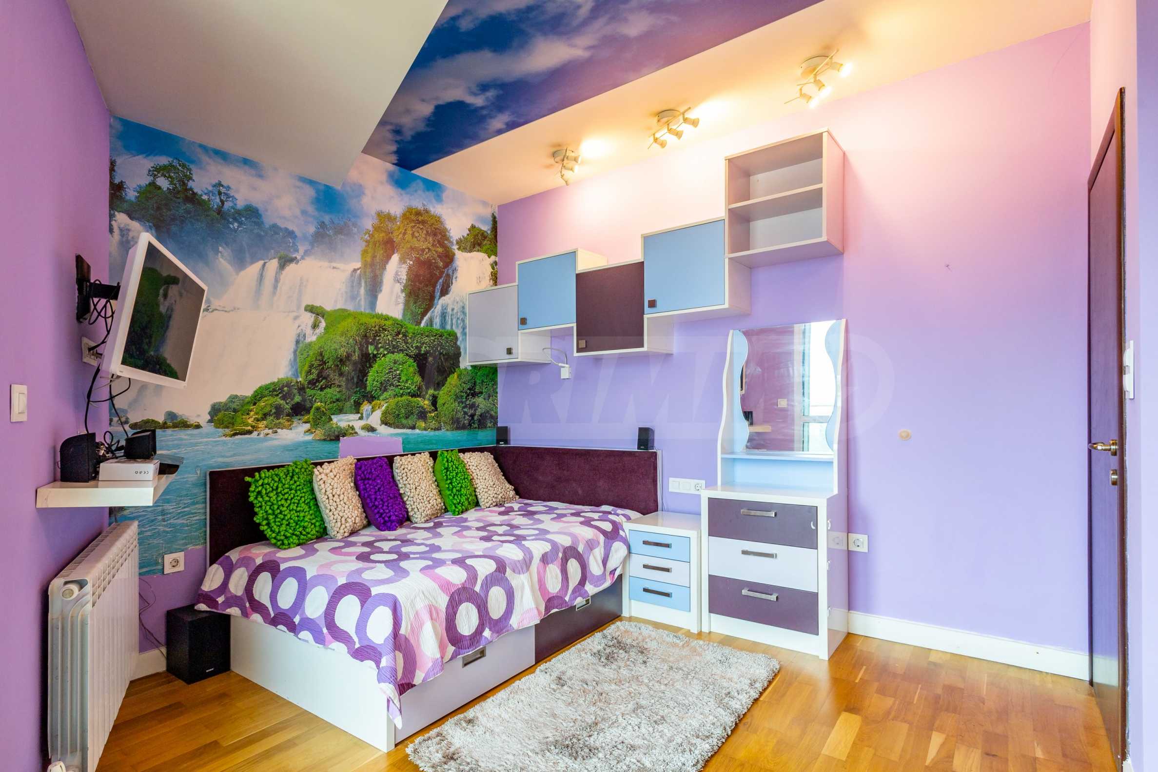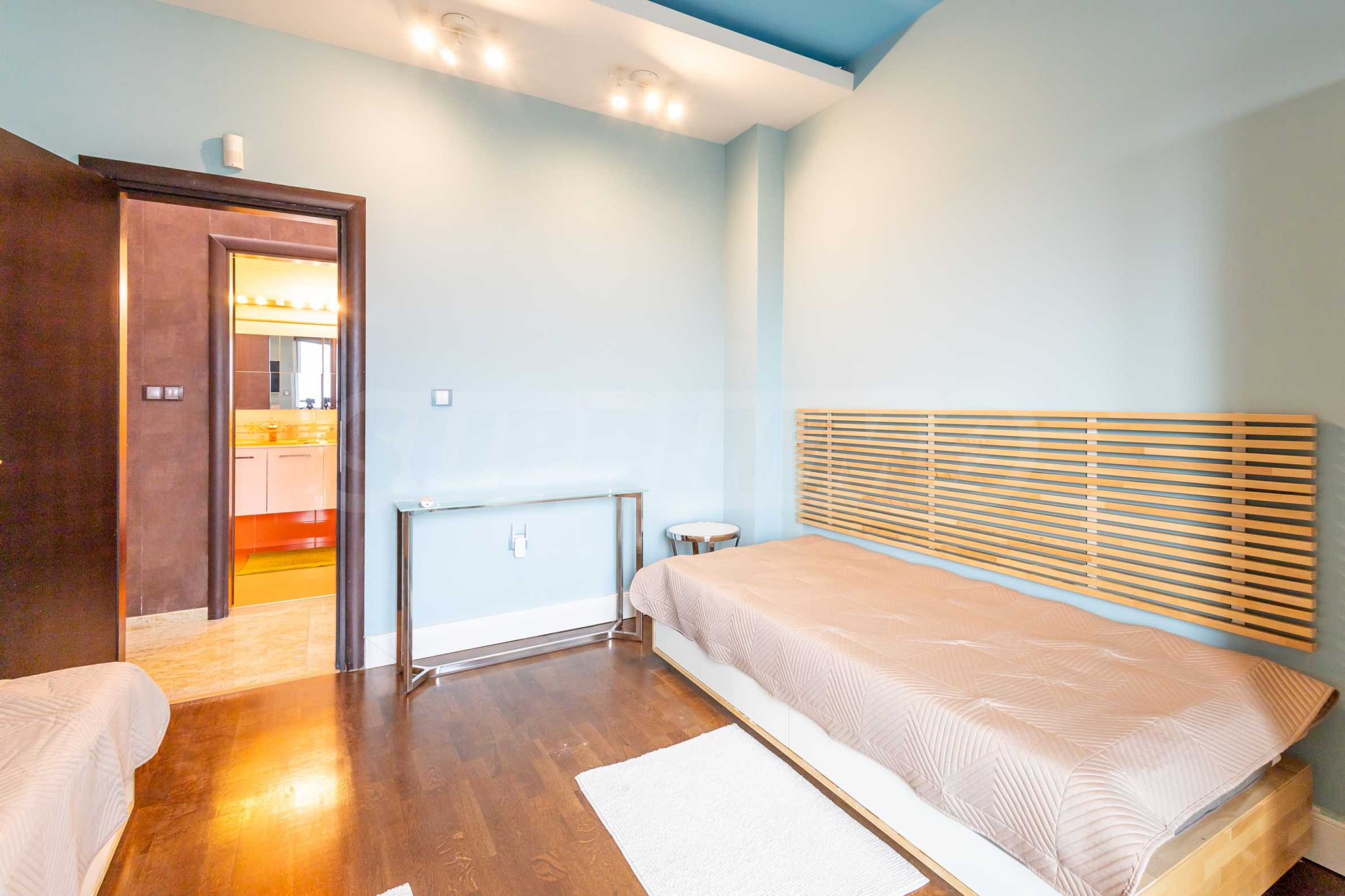 The apartment offers spacious and bright rooms with high ceilings and panoramic windows in the living room, which reveal a wonderful panoramic view of the city and Vitosha Mountain.