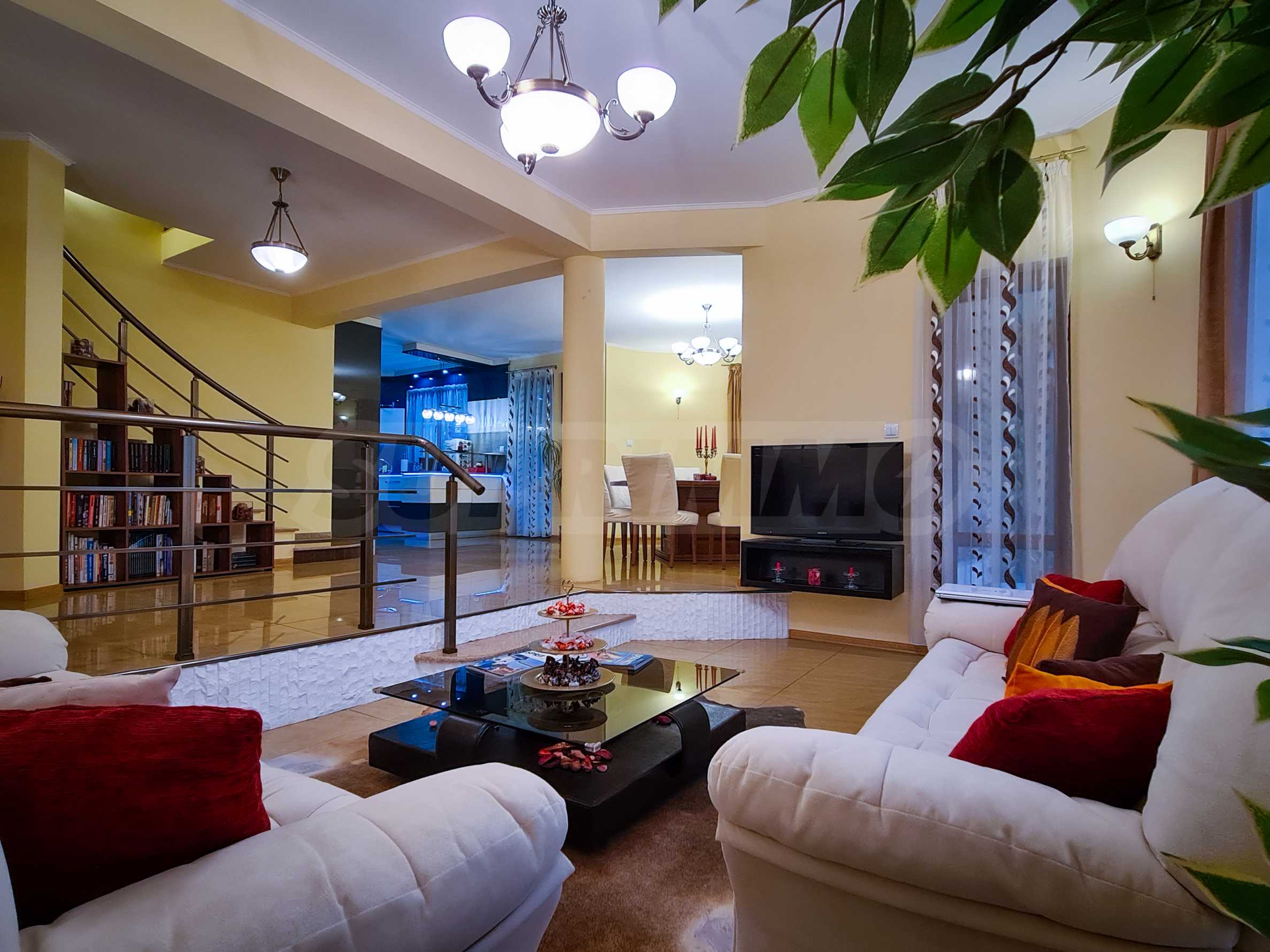 The first floor is located on 2 levels, consisting of a spacious living room with kitchen, dining room, sofas, foyer, toilet, boiler room, terrace and veranda with a relaxation area, overlooking the courtyard.