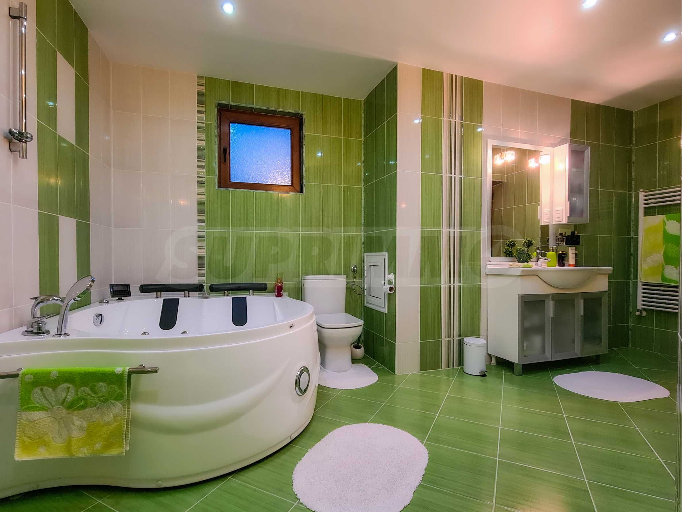 The villa is spread over 2 floors and offers exceptional comfort, privacy and high quality furnitures and equipment. Every detail in this home has been selected with attention to functionality, style and family comfort. The interior is a combination of natural materials such as wood, leather, stone, granite, granite tiles and brass.