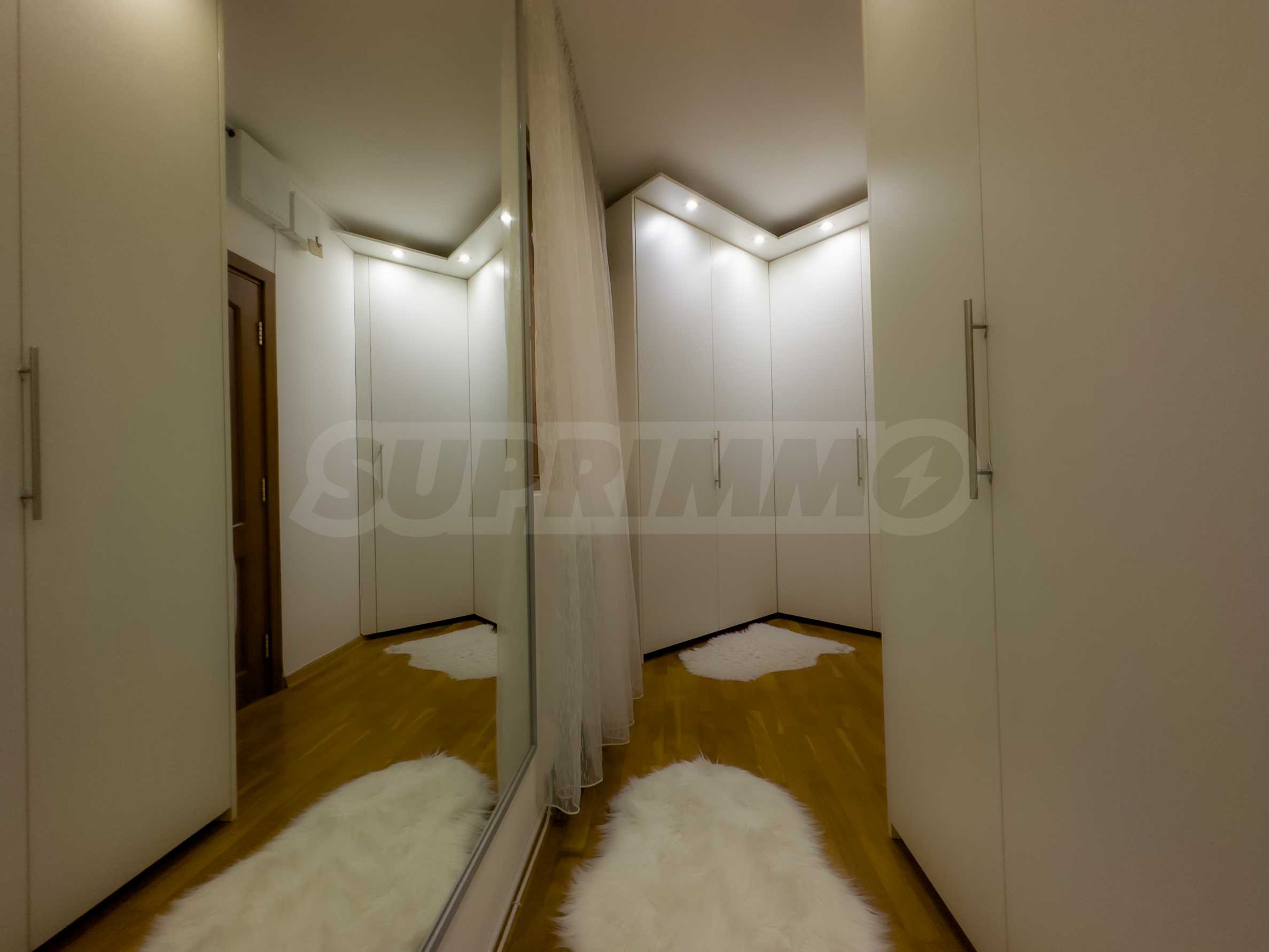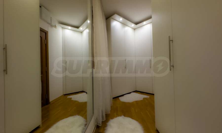 The second floor is distributed over three spacious and comfortable bedrooms, each with an area of 18 sq m, two bathrooms with toilets, one of which has a double jacuzzi and a custom-made wardrobe room with sliding and drop mechanisms.