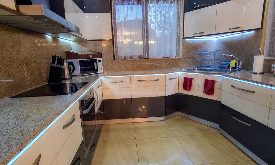 The house is rented with all necessary appliances, ensuring a hassle-free stay. There are selective solar collectors on the roof. The windows are five-chamber profile and double-glazed, ensuring effective insulation.