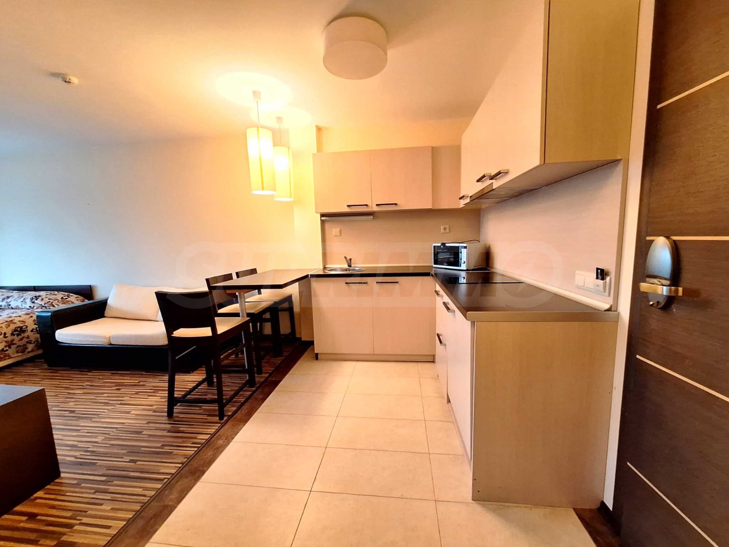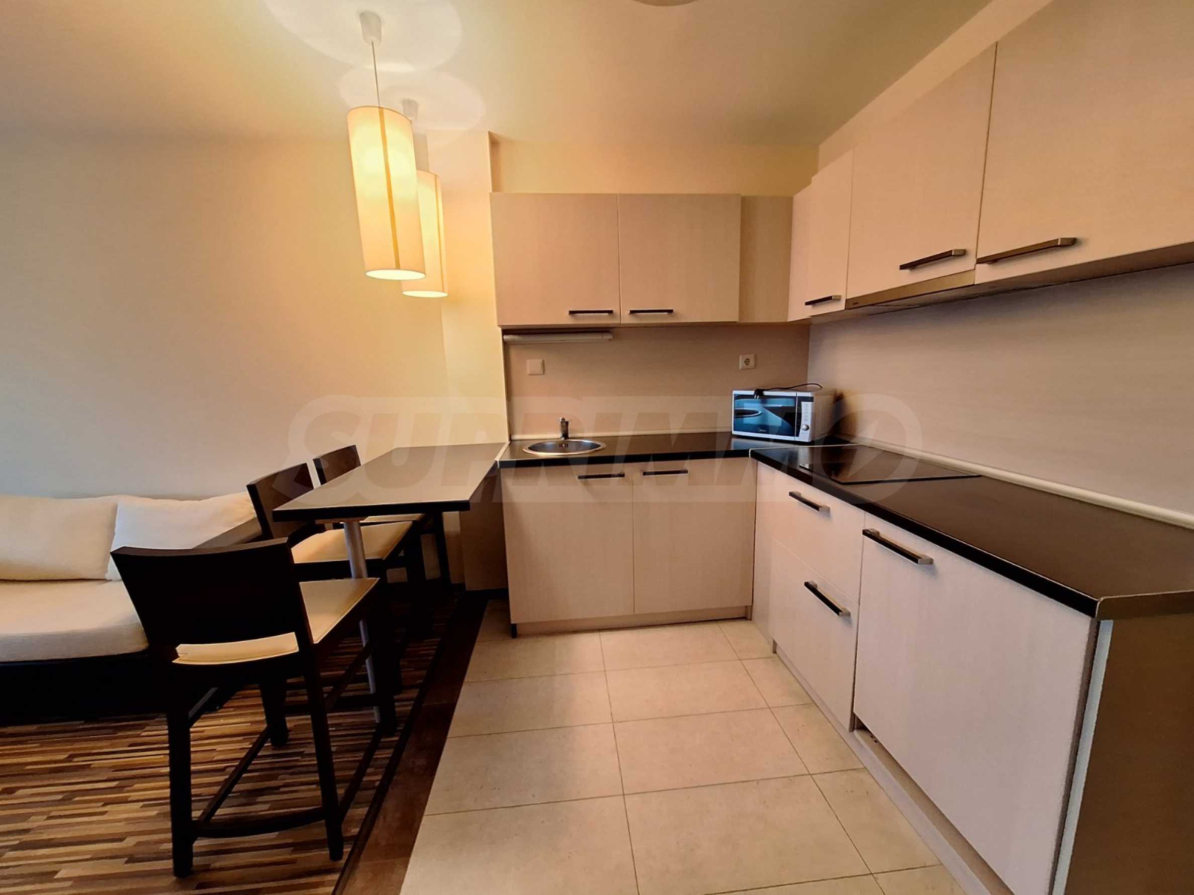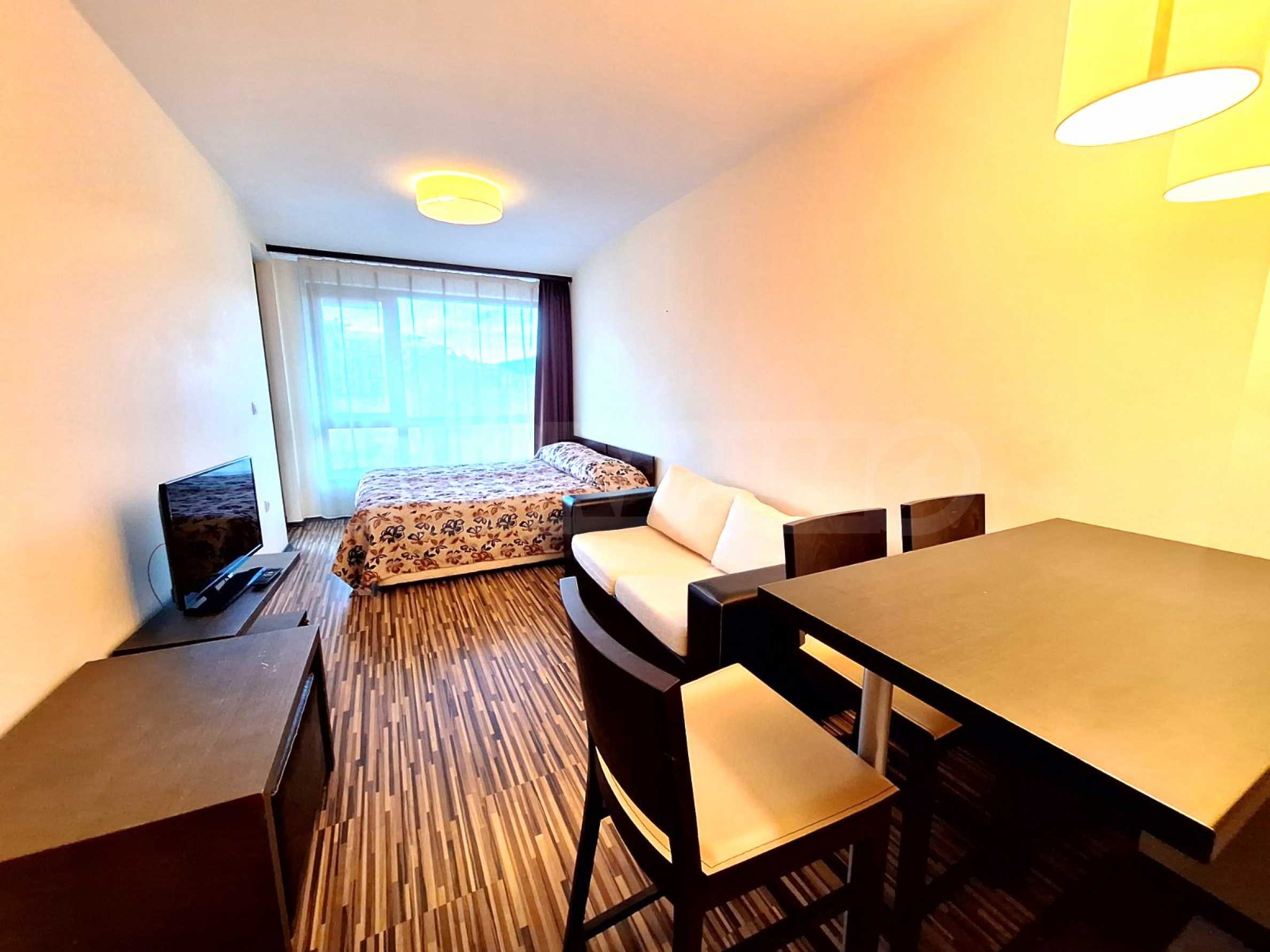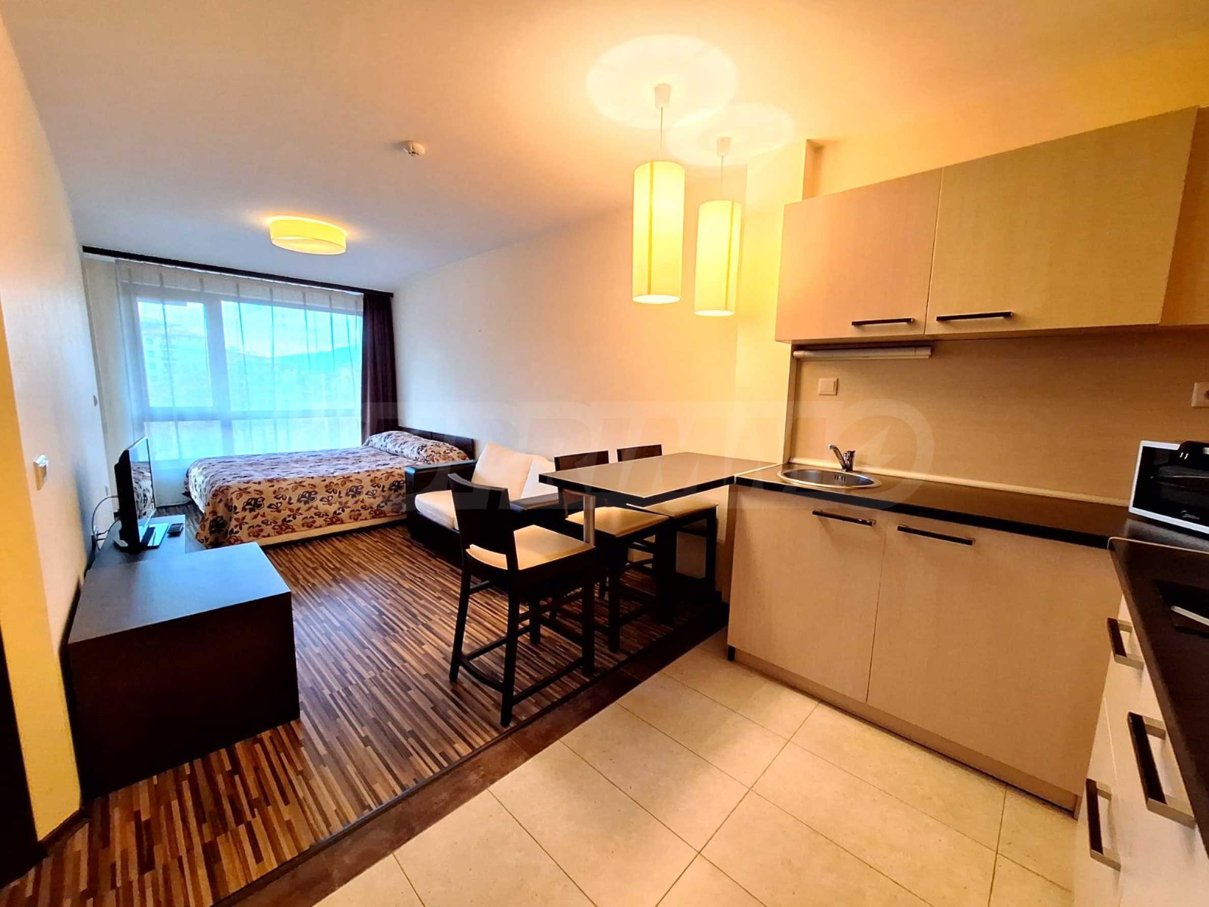 We present a furnished one-bedroom apartment in a luxury complex within walking distance of the center and only 350 m from the ski lift of the popular mountain resort.