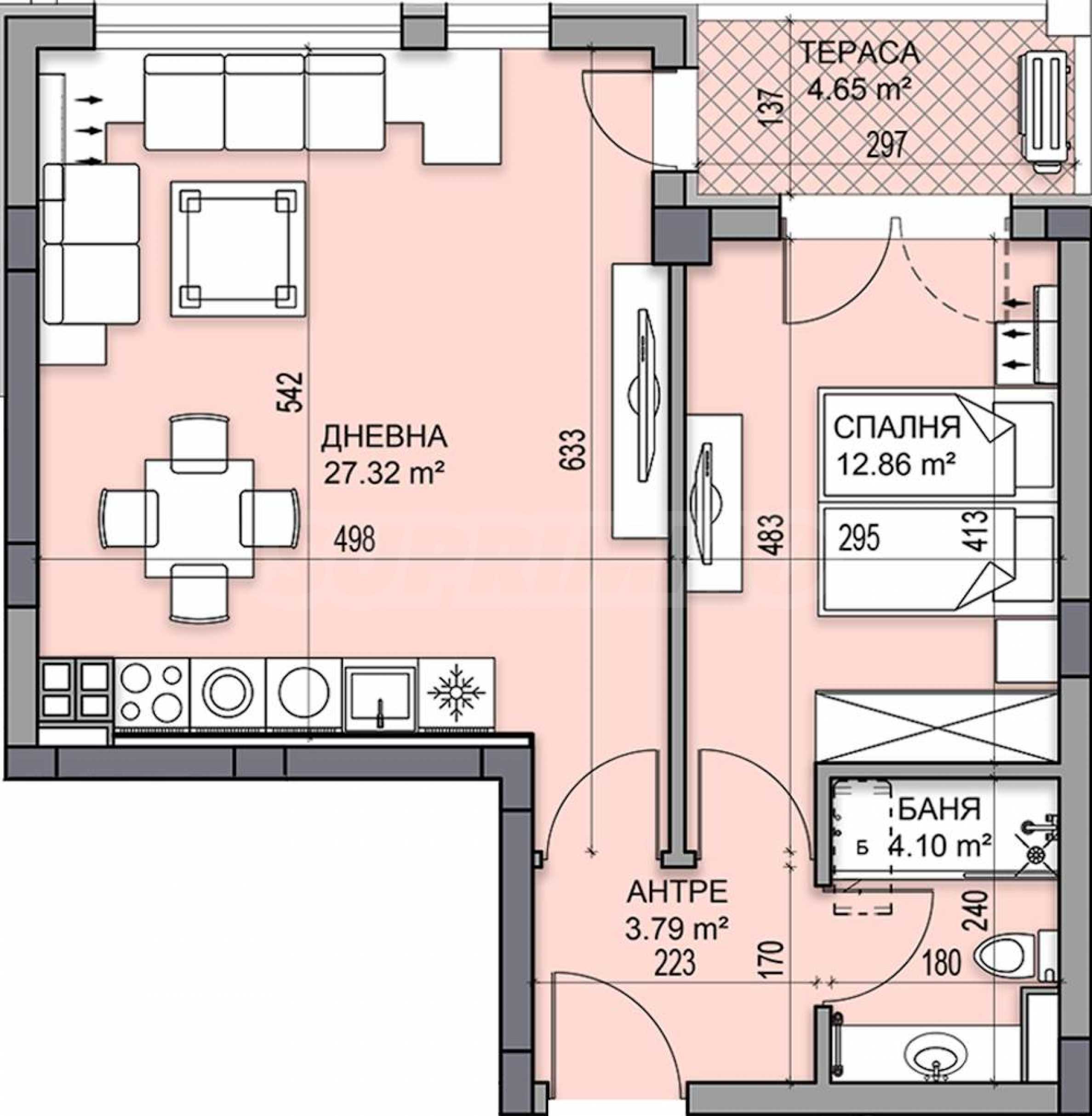 We present a one-bedroom apartment in a new gated complex in the Gagarin district of Plovdiv. Convenient location near Kaufland hypermarket, main boulevard, main roads, commercial structures, kindergartens, schools, park, etc.
