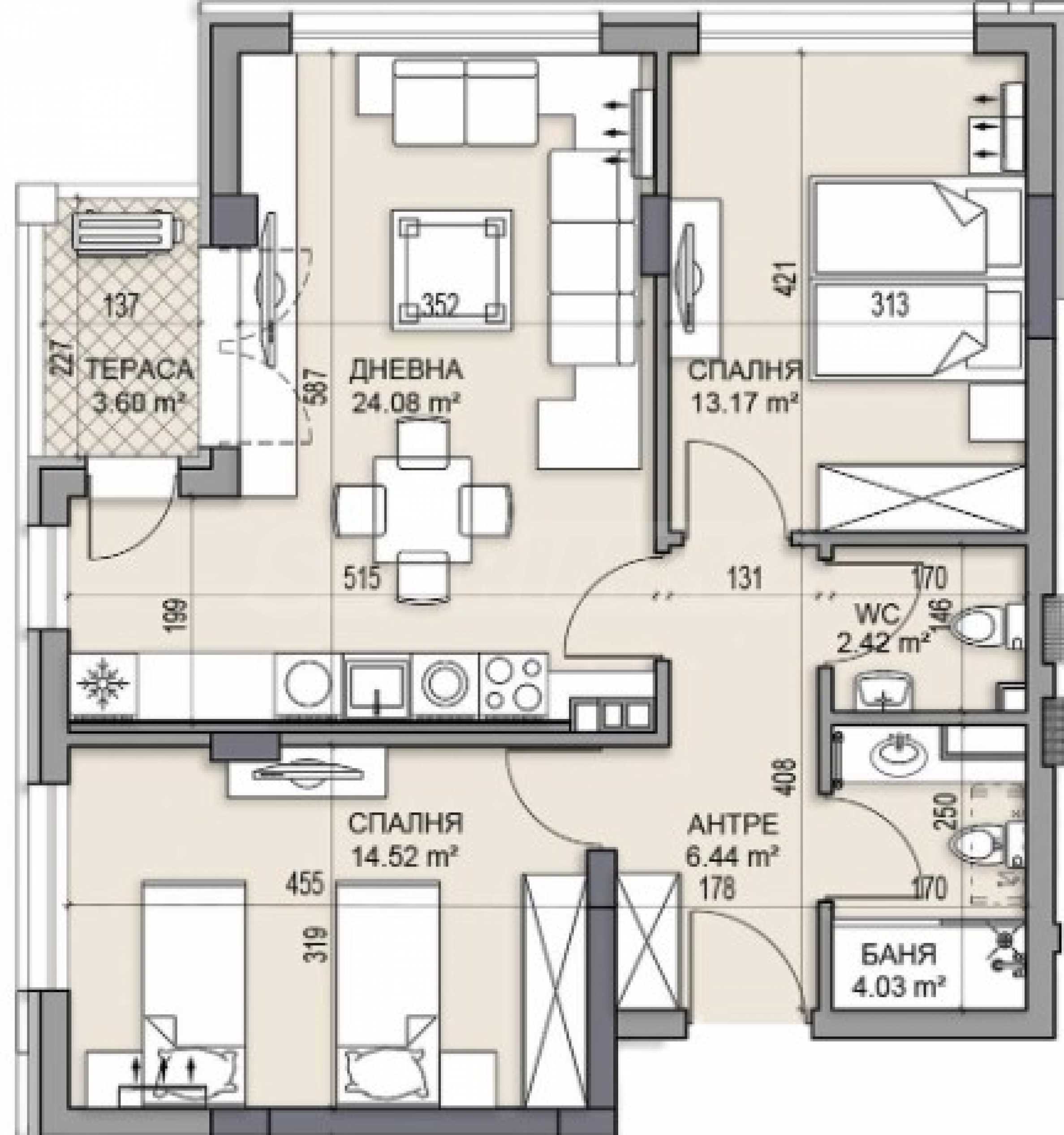 The apartments will be handed over in a degree of completion according to the Bulgarian Civil Code:
