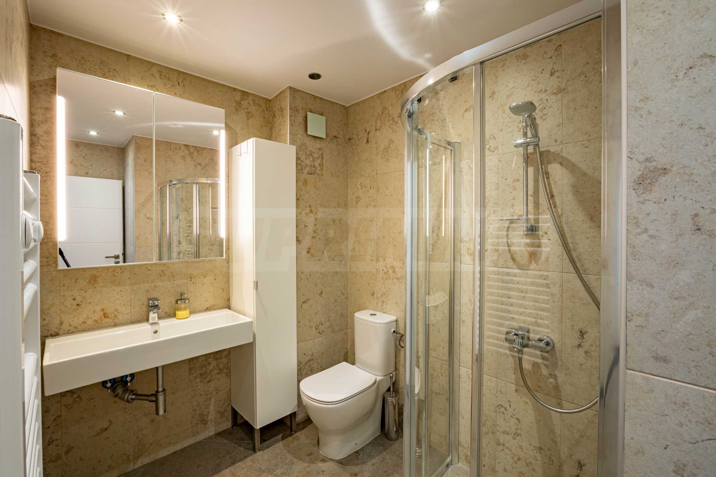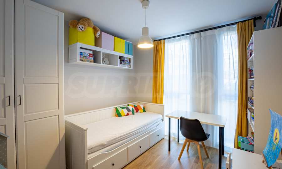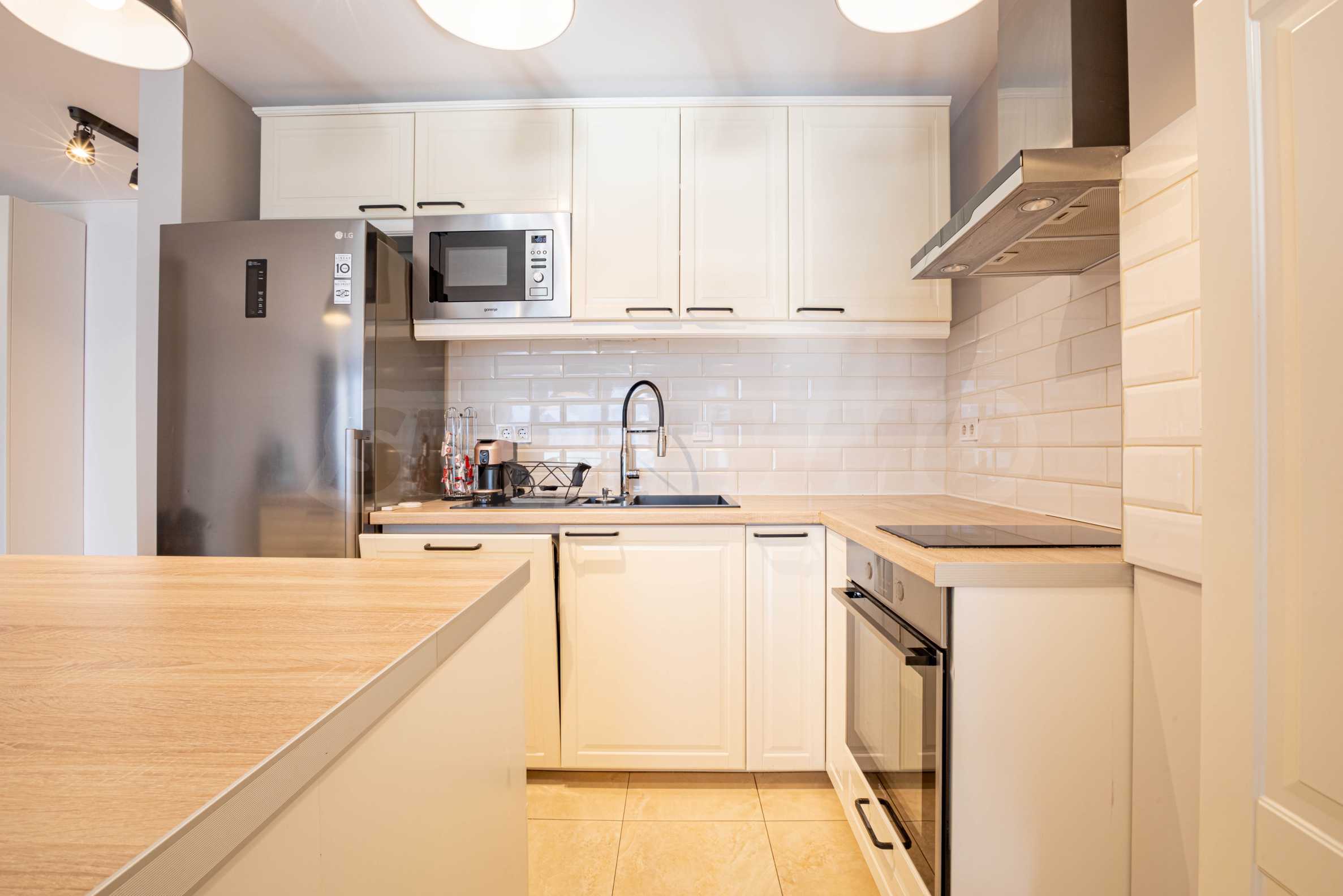The apartment is fully finished, with high quality finishing works and materials used, with lots of natural light.