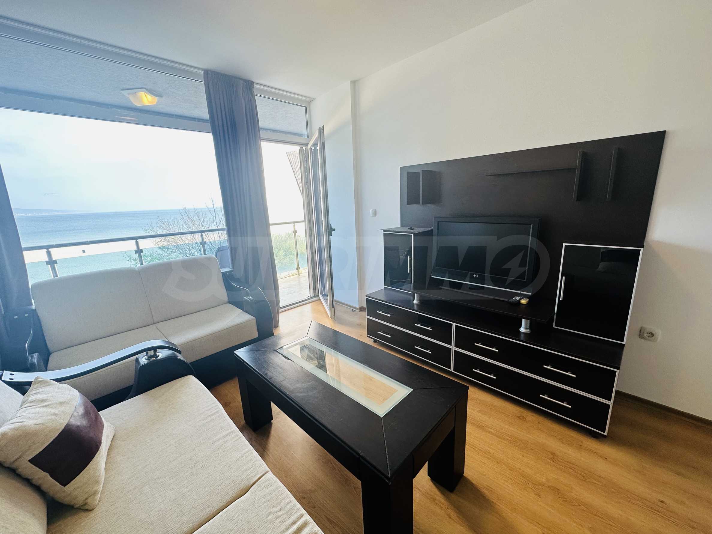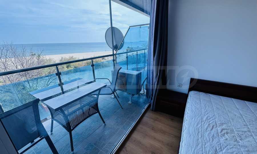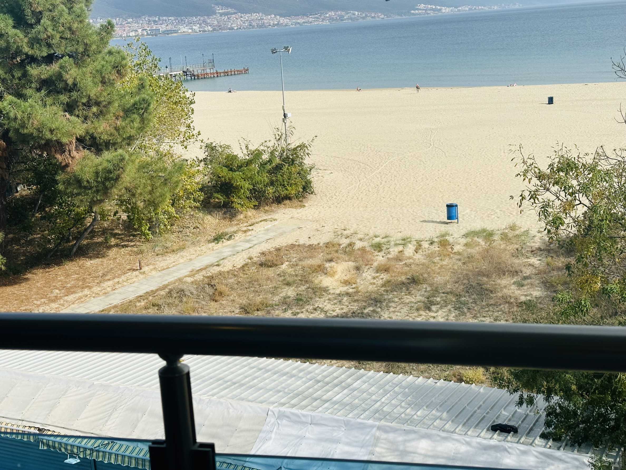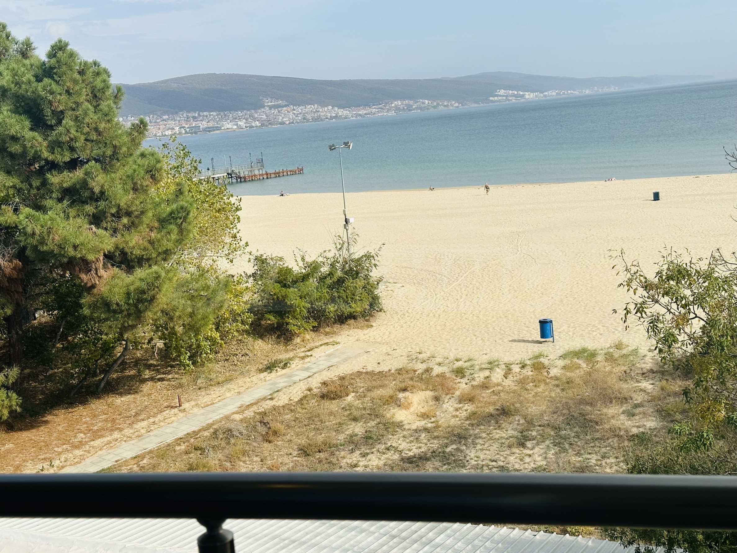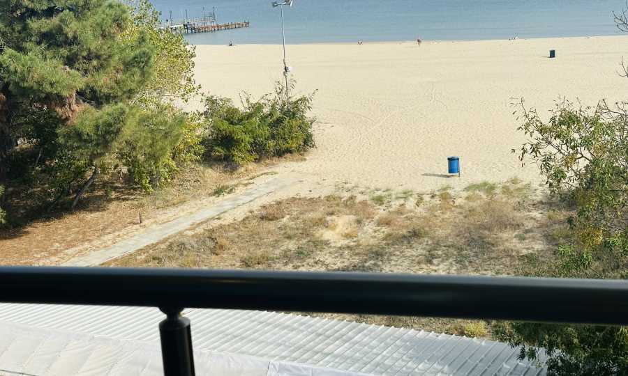 The property is part of a complex with a pool, located on the first line of the sea, in the top center of the resort. The location is strategic for renting out the apartment during the summer season. The complex has a restaurant and a children's playground. There is a bus stop 300 meters away.