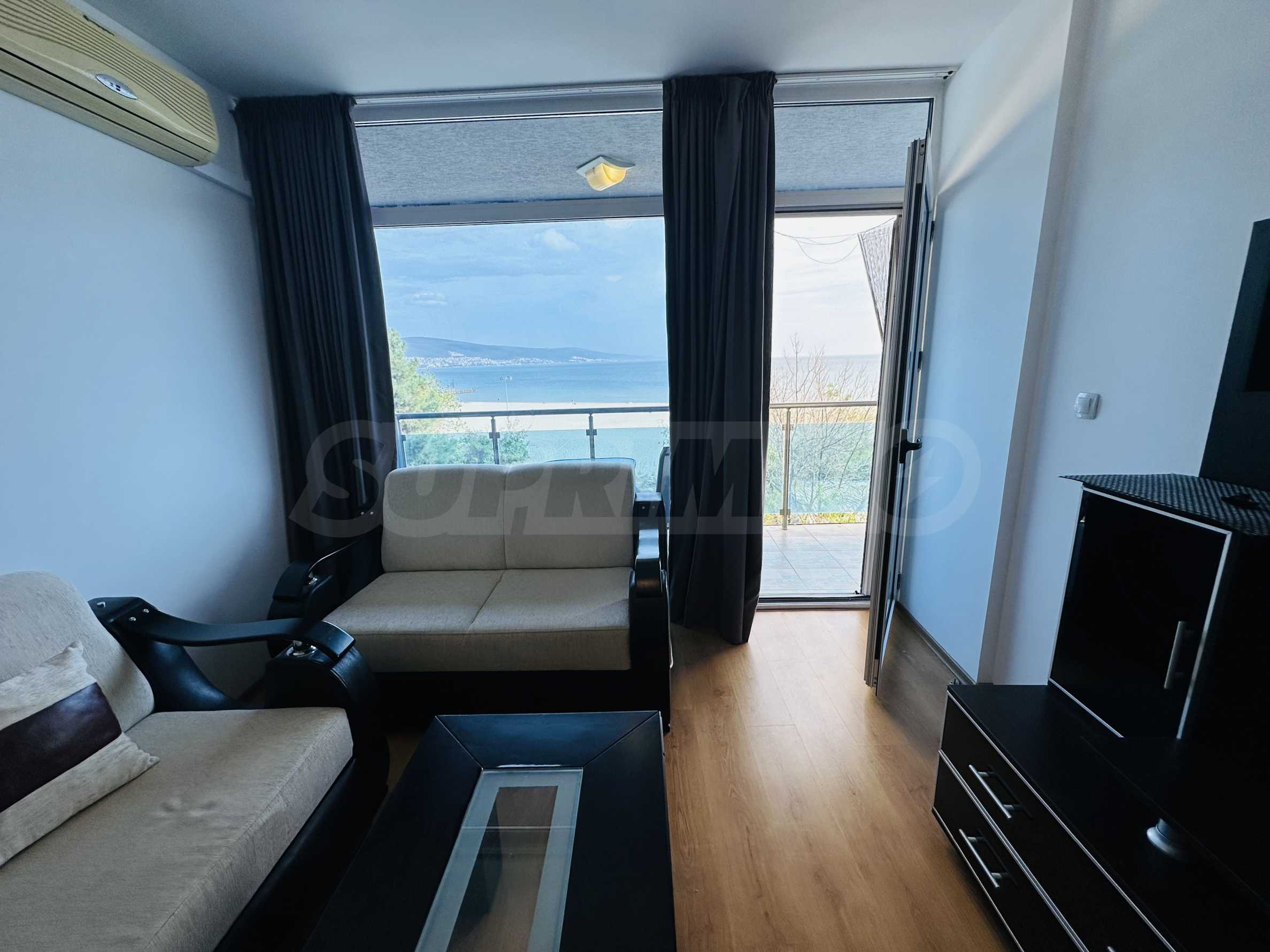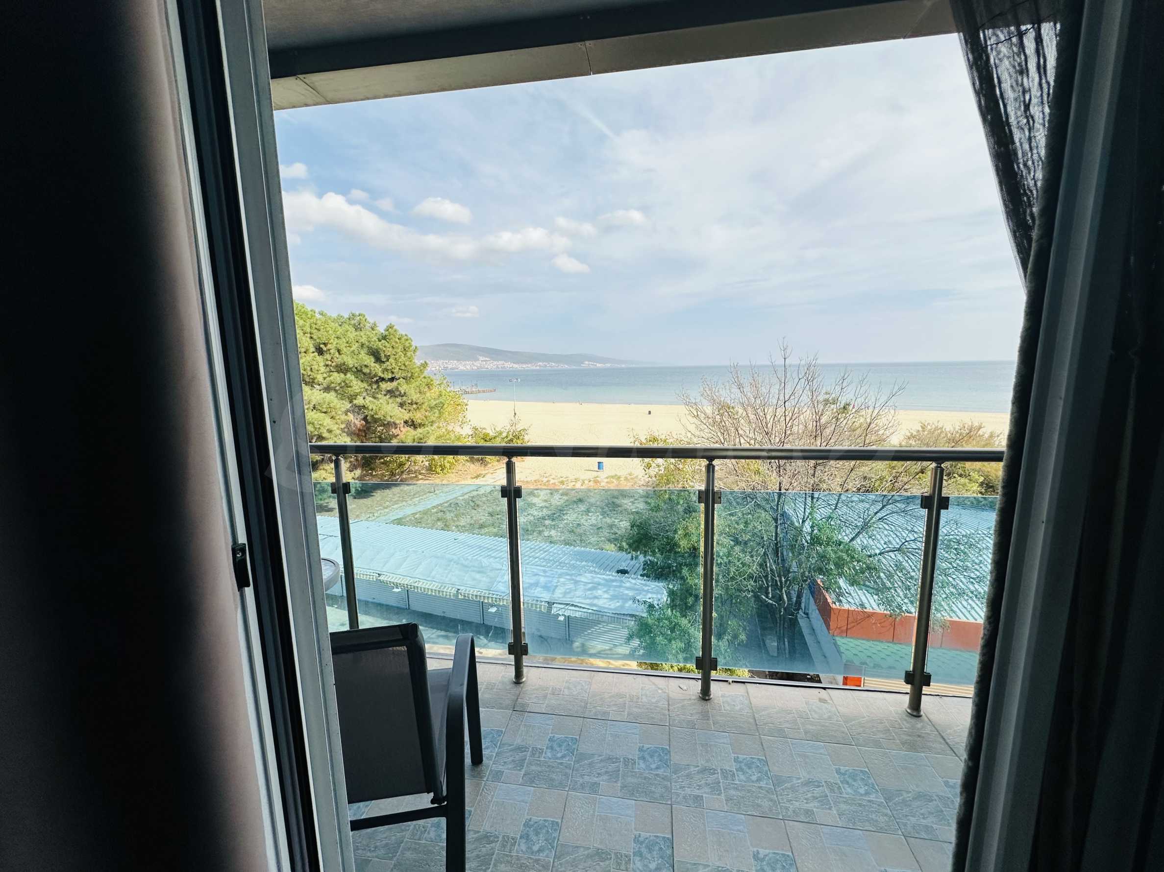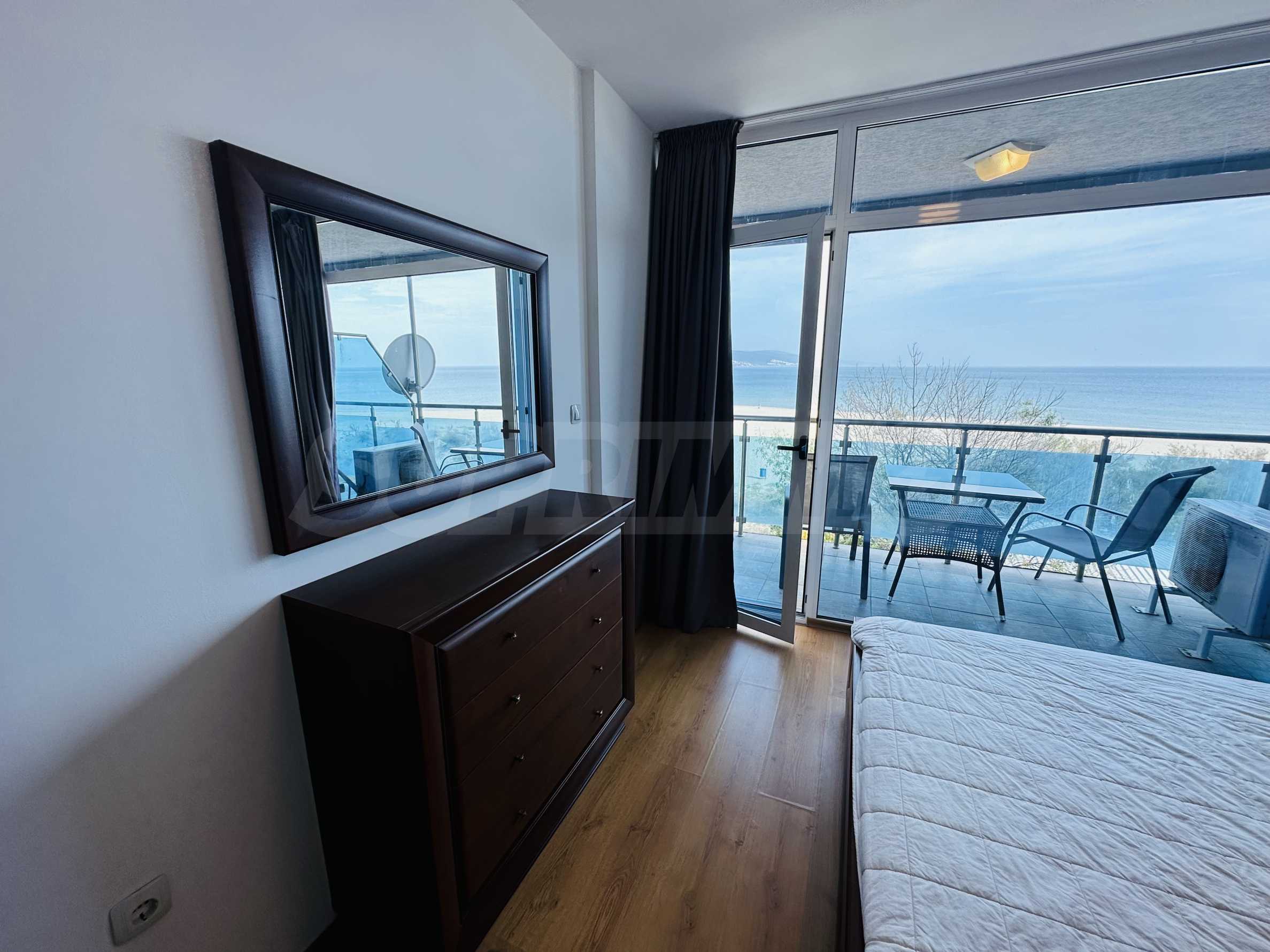 The property is part of a complex with a pool, located on the first line of the sea, in the top center of the resort. The location is strategic for renting out the apartment during the summer season. The complex has a restaurant and a children's playground. There is a bus stop 300 meters away.