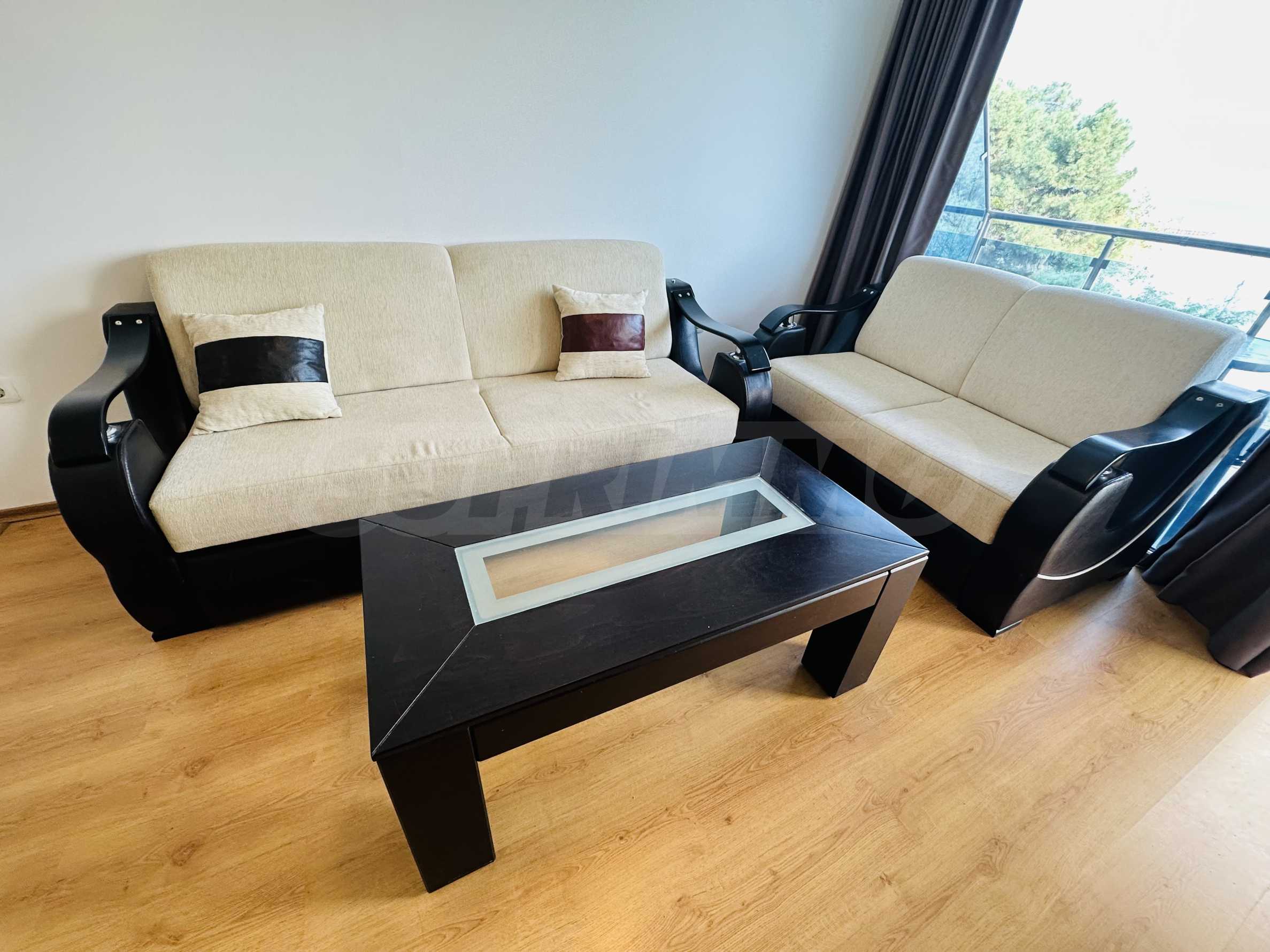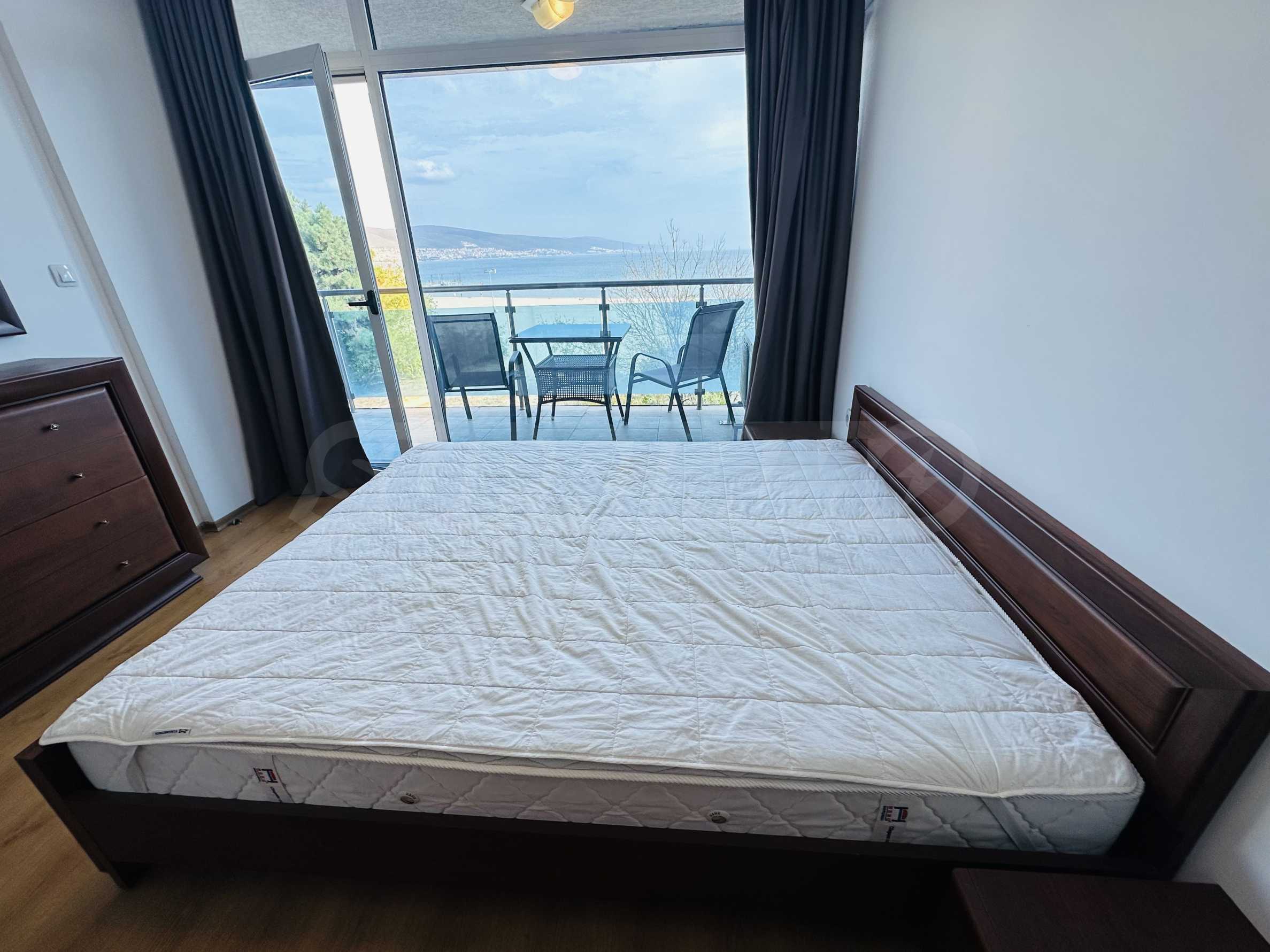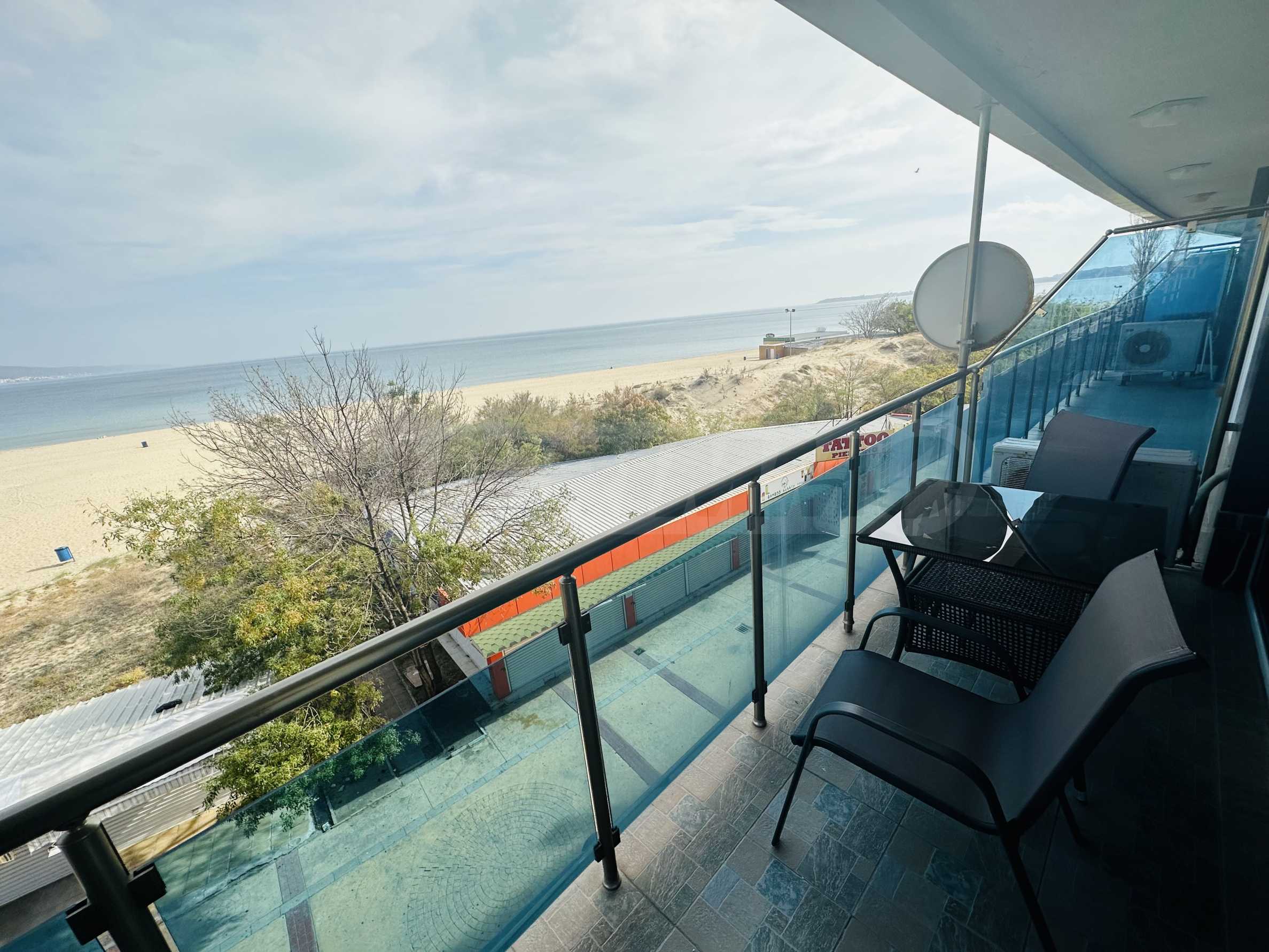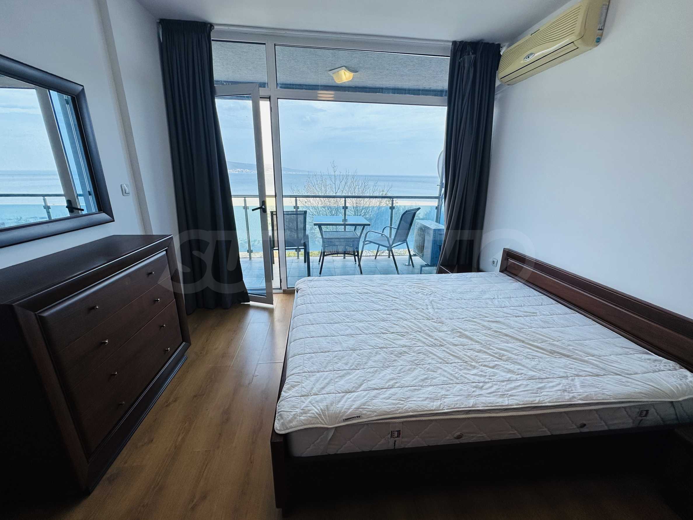 The property is part of a complex with a pool, located on the first line of the sea, in the top center of the resort. The location is strategic for renting out the apartment during the summer season. The complex has a restaurant and a children's playground. There is a bus stop 300 meters away.