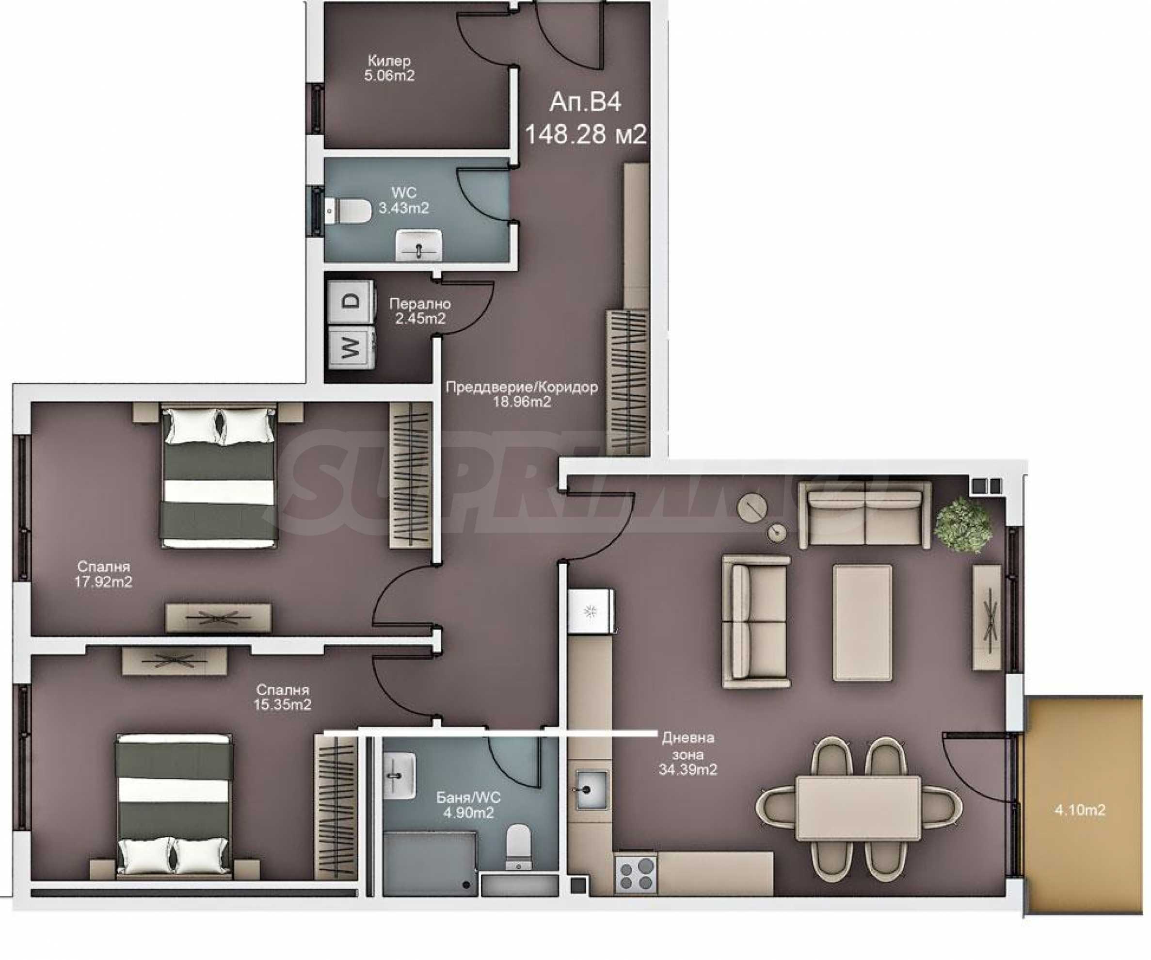 We present for sale a two-bedroom apartment, with a total area of 148.28 m2., in a newly built complex in Sveti Sv. Konstantin and Elena, near the city of Varna.