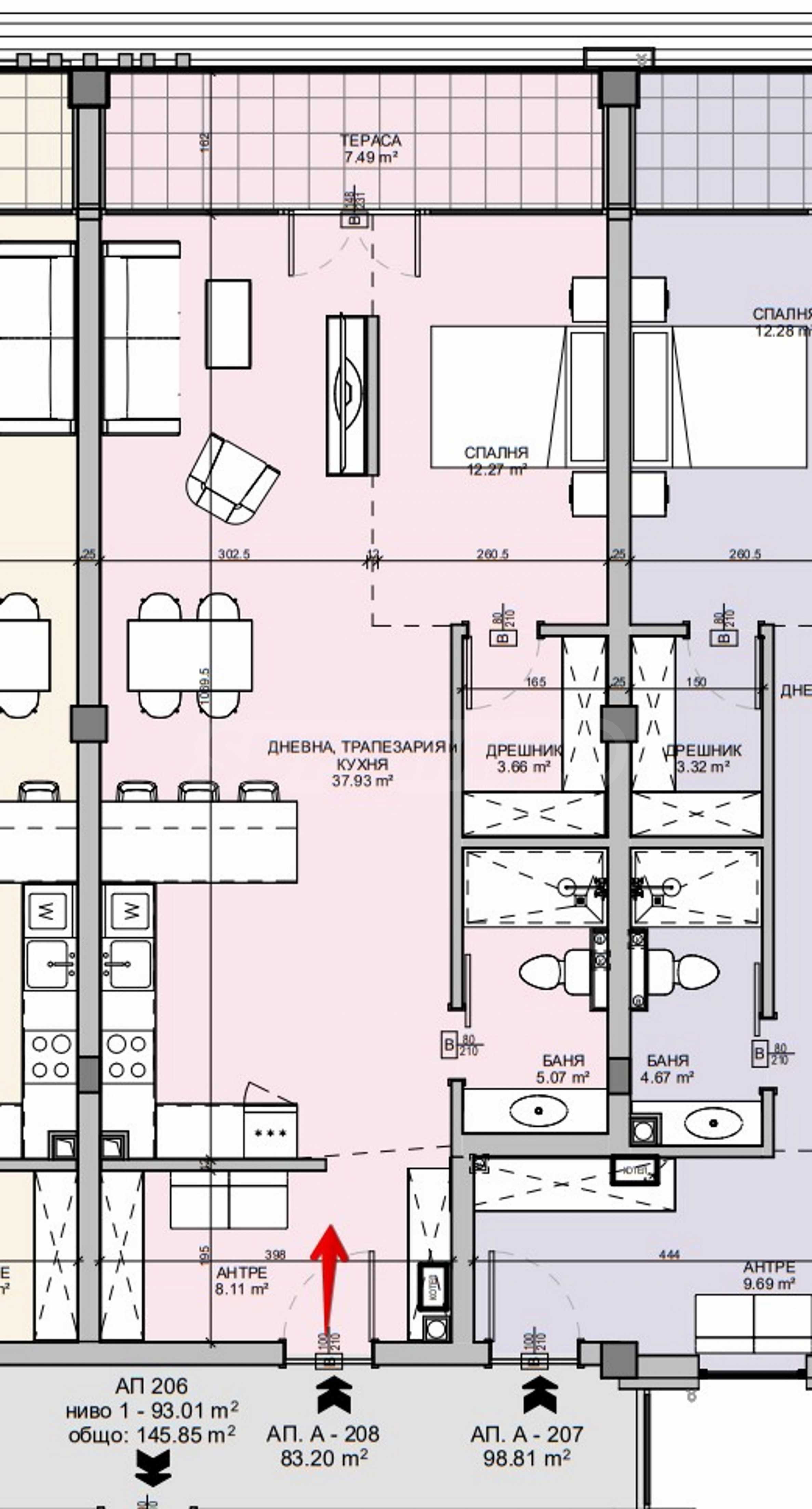 The complex is planned in three sections – two residential buildings and a restaurant between them, which connects them with a warm connection. The structural heights are 2.50 - 2.60 meters for building B and over 3.20 meters for building A. 58 apartments are planned with the possibility of merging - studios and apartments with one, two and three bedrooms, some of which have garden terraces, and others are of the maisonette type. The apartments are carefully designed for the most comfortable living, and the panoramic glazing of the building contributes to both an abundance of natural light and wonderful views of the breathtaking natural beauty.