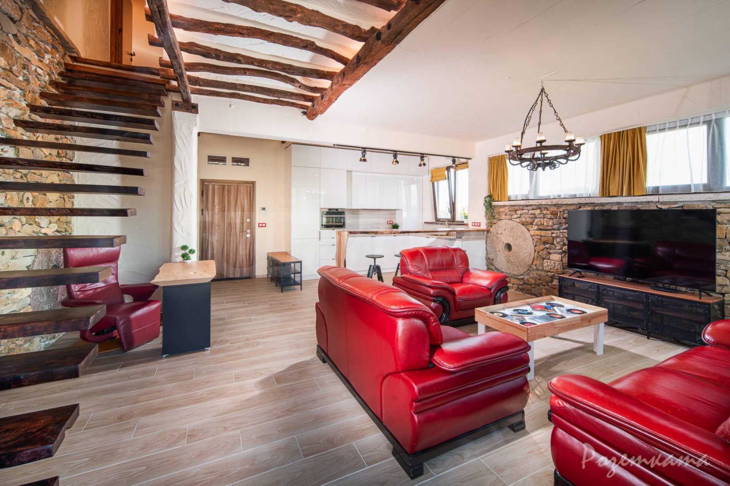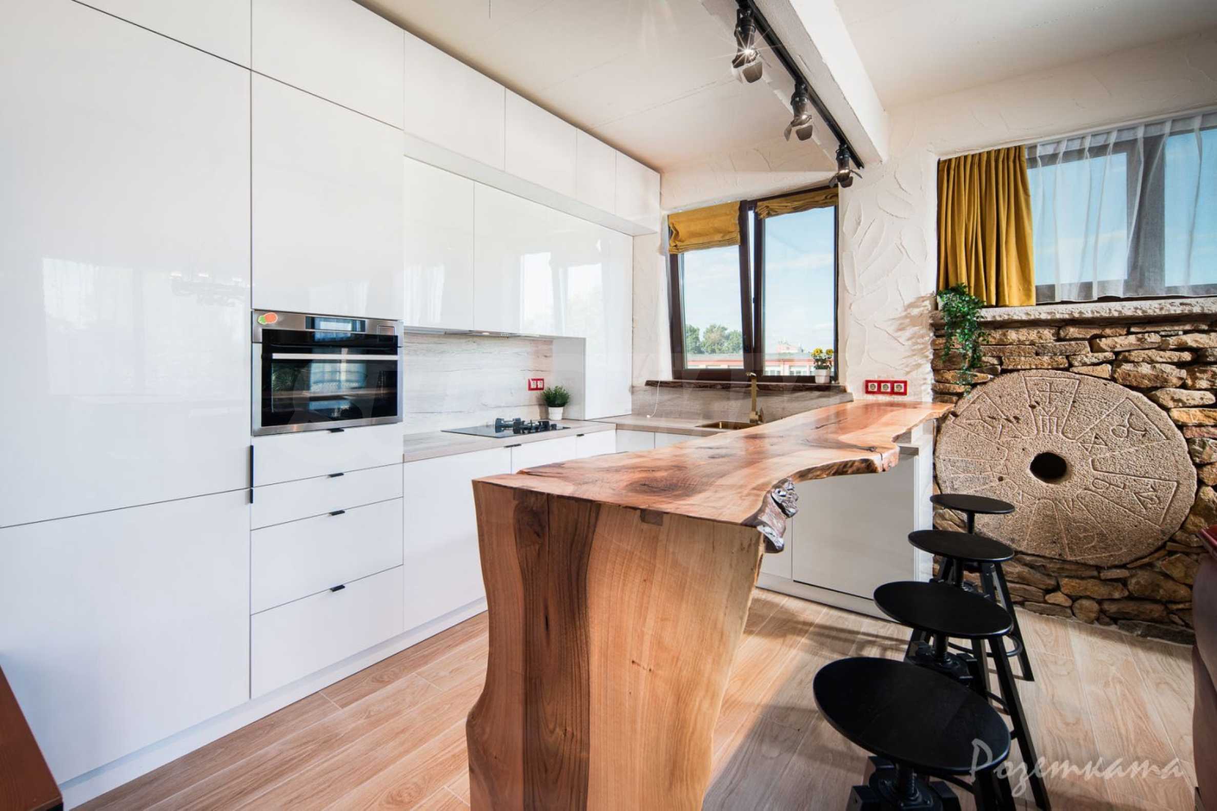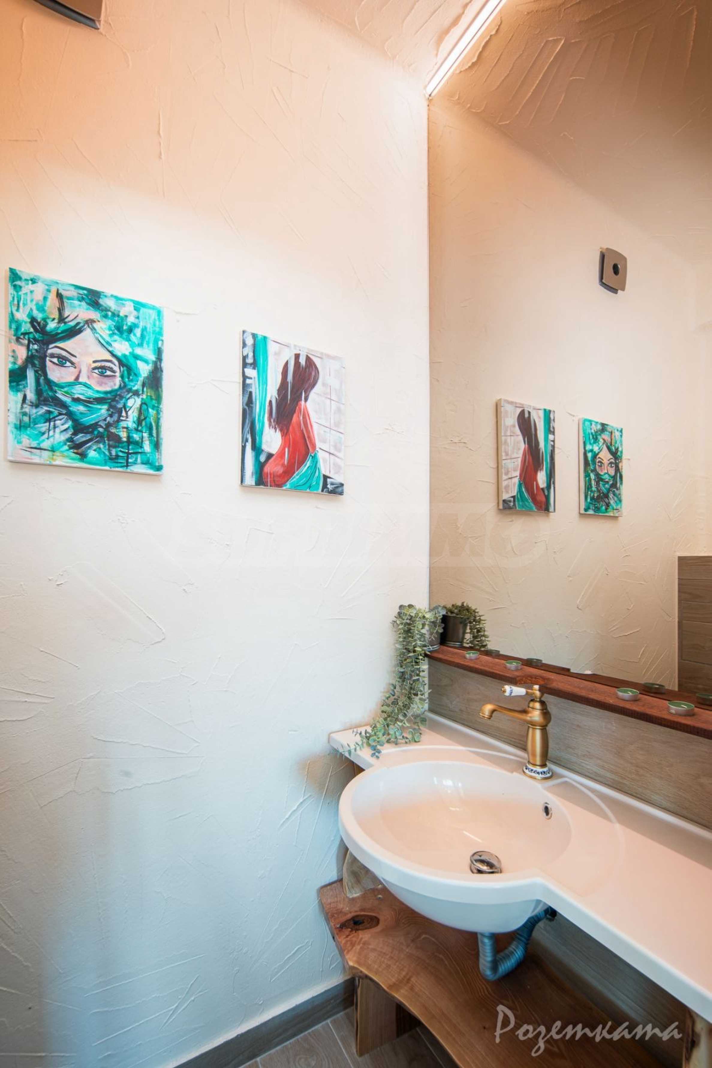 On the first level there is a living room with a kitchen, designed as an open and bright space. The highlight here is the specially built-in stylized "Pliska Rosette" in a stone wall, which adds character and sophistication to the interior. The floor also has a separate home office space, ideal for working from home, a guest toilet, a hidden laundry room and a terrace that covers the entire level - perfect for morning coffee or evening moments of tranquility.