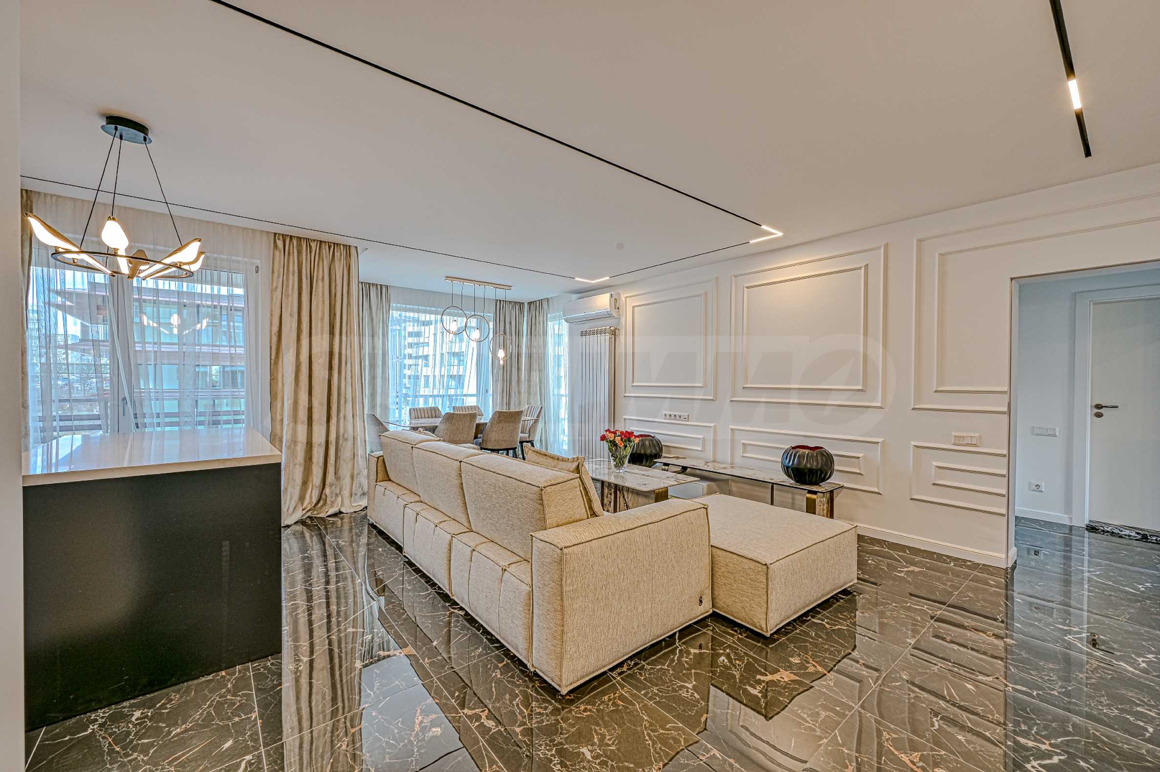 The living area is spacious and bright, with a harmonious combination of contemporary interior and comfortable atmosphere - suitable for both relaxation and gatherings with loved ones. The kitchen area is fully equipped with quality appliances and is conveniently separated from the dining area.