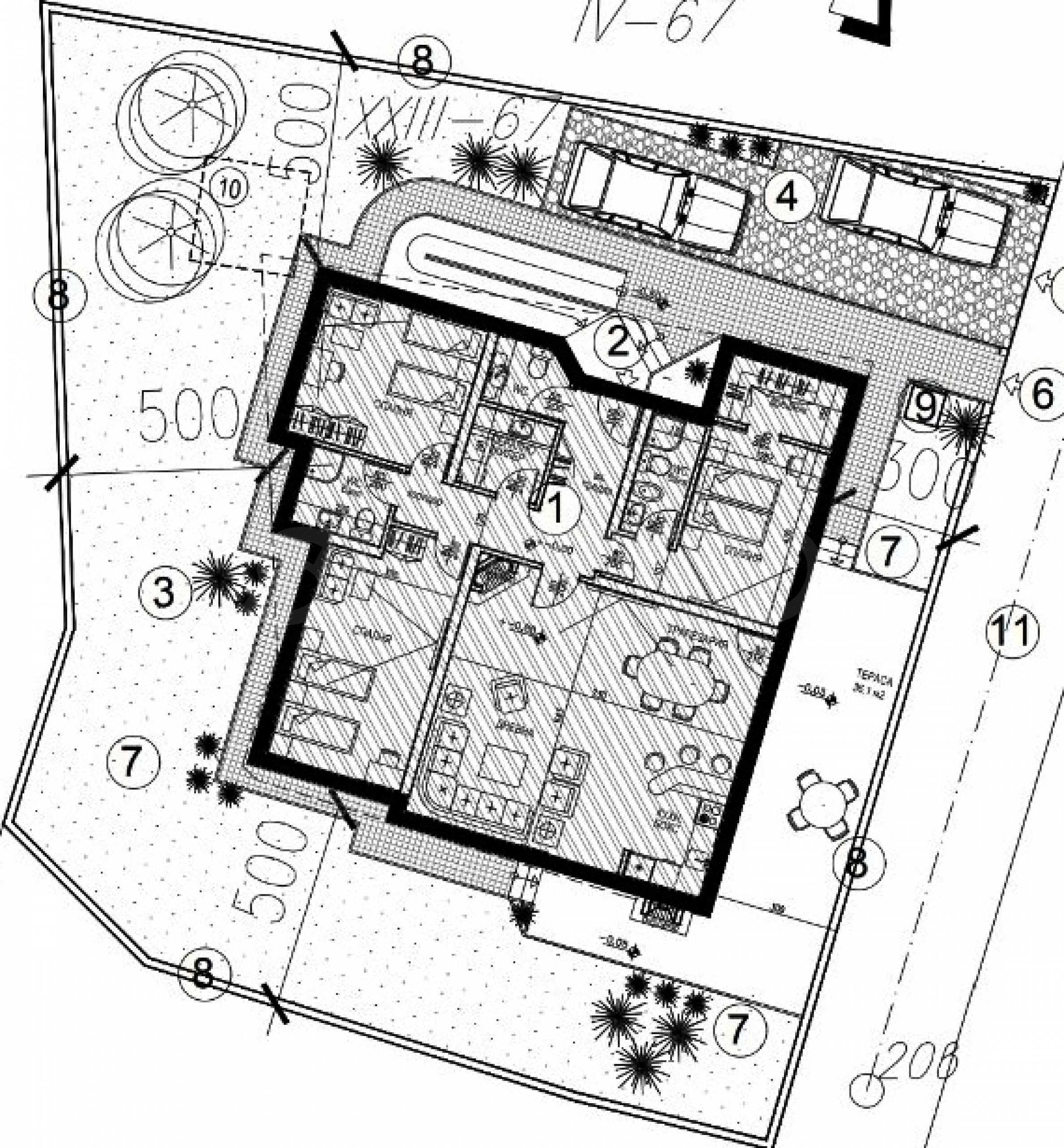 The property has a total area of 187 sq m including a veranda of 35 sq m and a plot of 500 sq m with a fence. It is in operation (with Act 16) and has electricity, water and sewage.