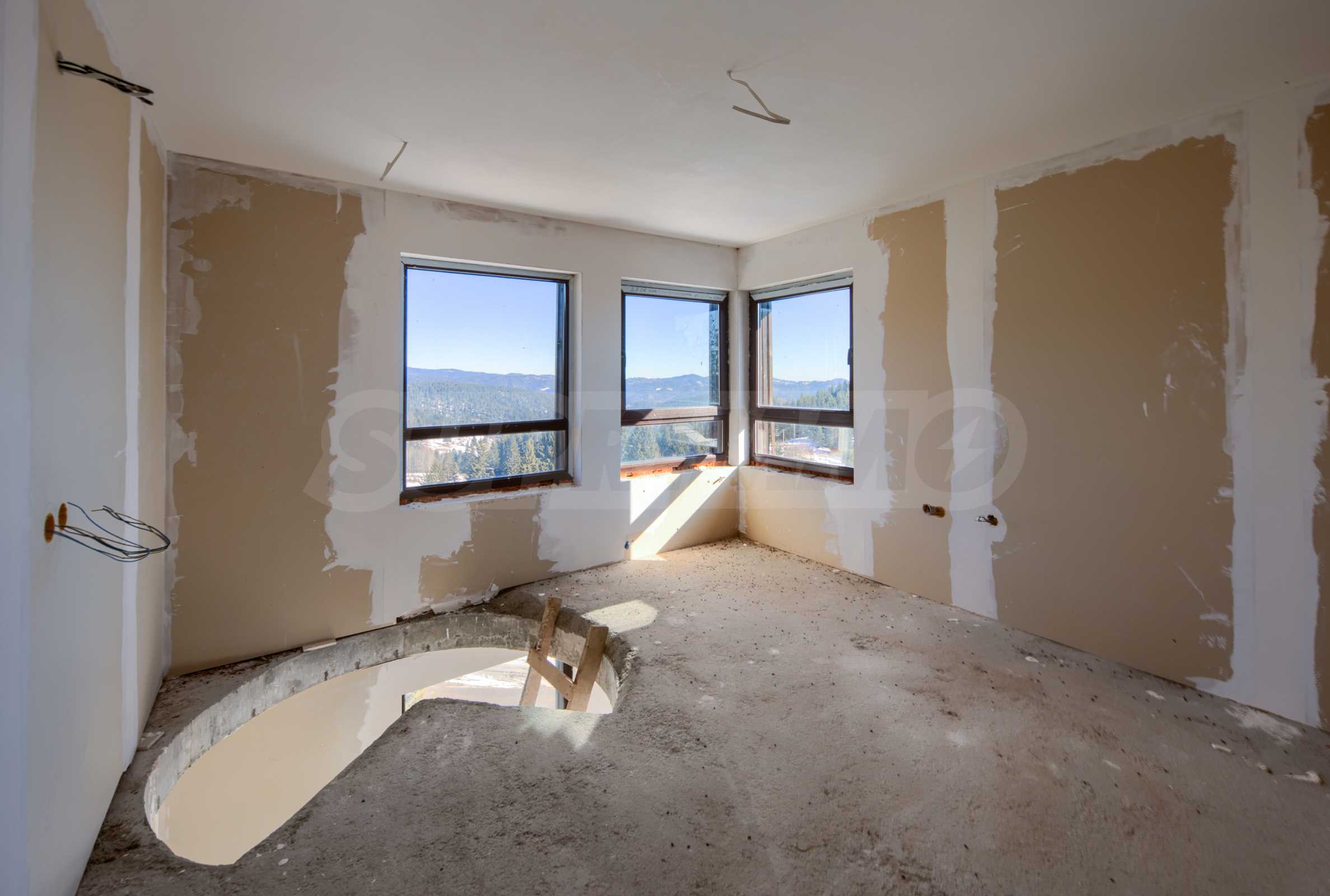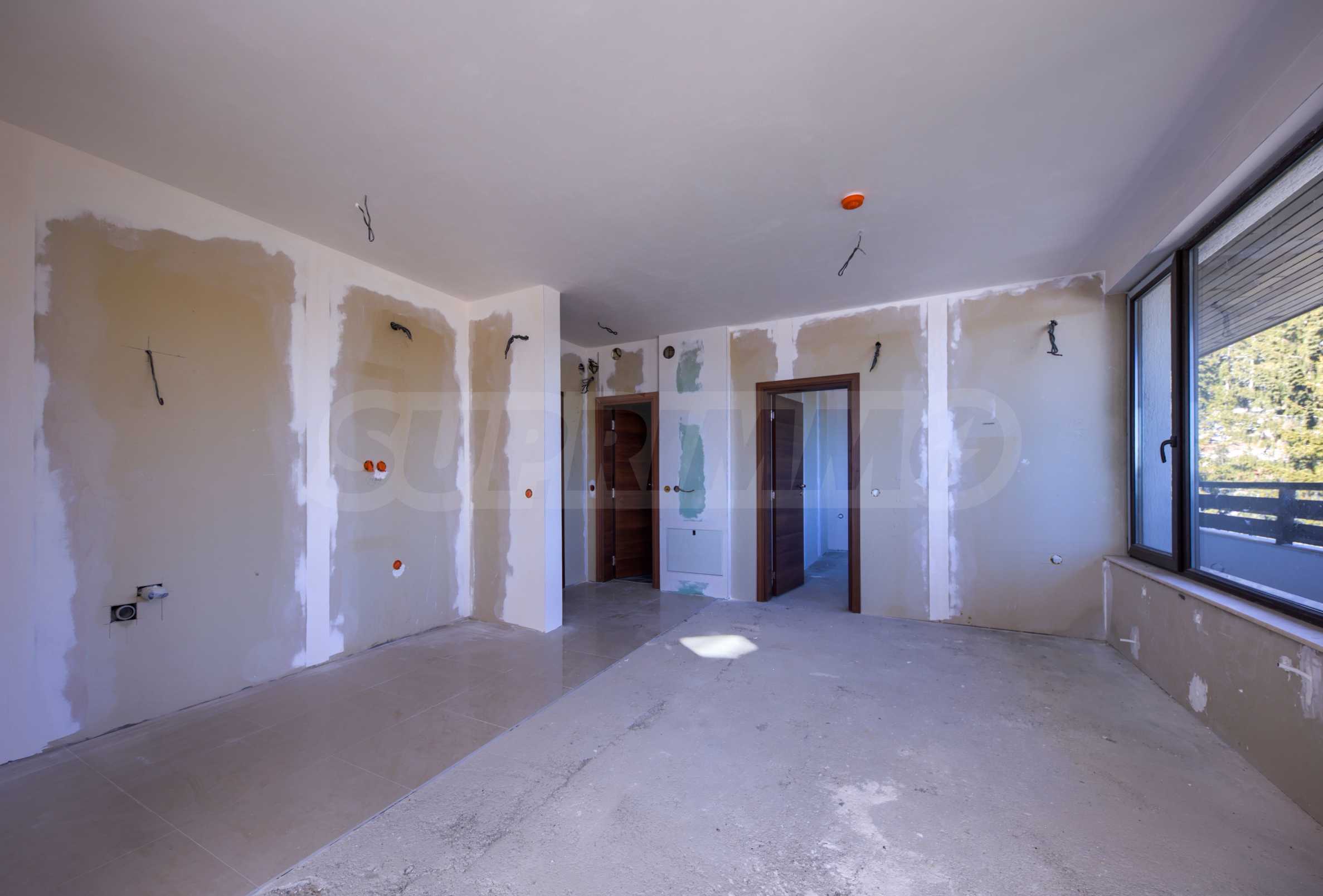 The complex consists of three sections - two buildings with apartments, each with two entrances, and another building - a hotel with a swimming pool and spa, with service and service rooms. The buildings are excellently located on a 10-acre plot. Close to villa villages and dozens of independent private villas, the complex fits magnificently into the unique nature of the Rhodopes.