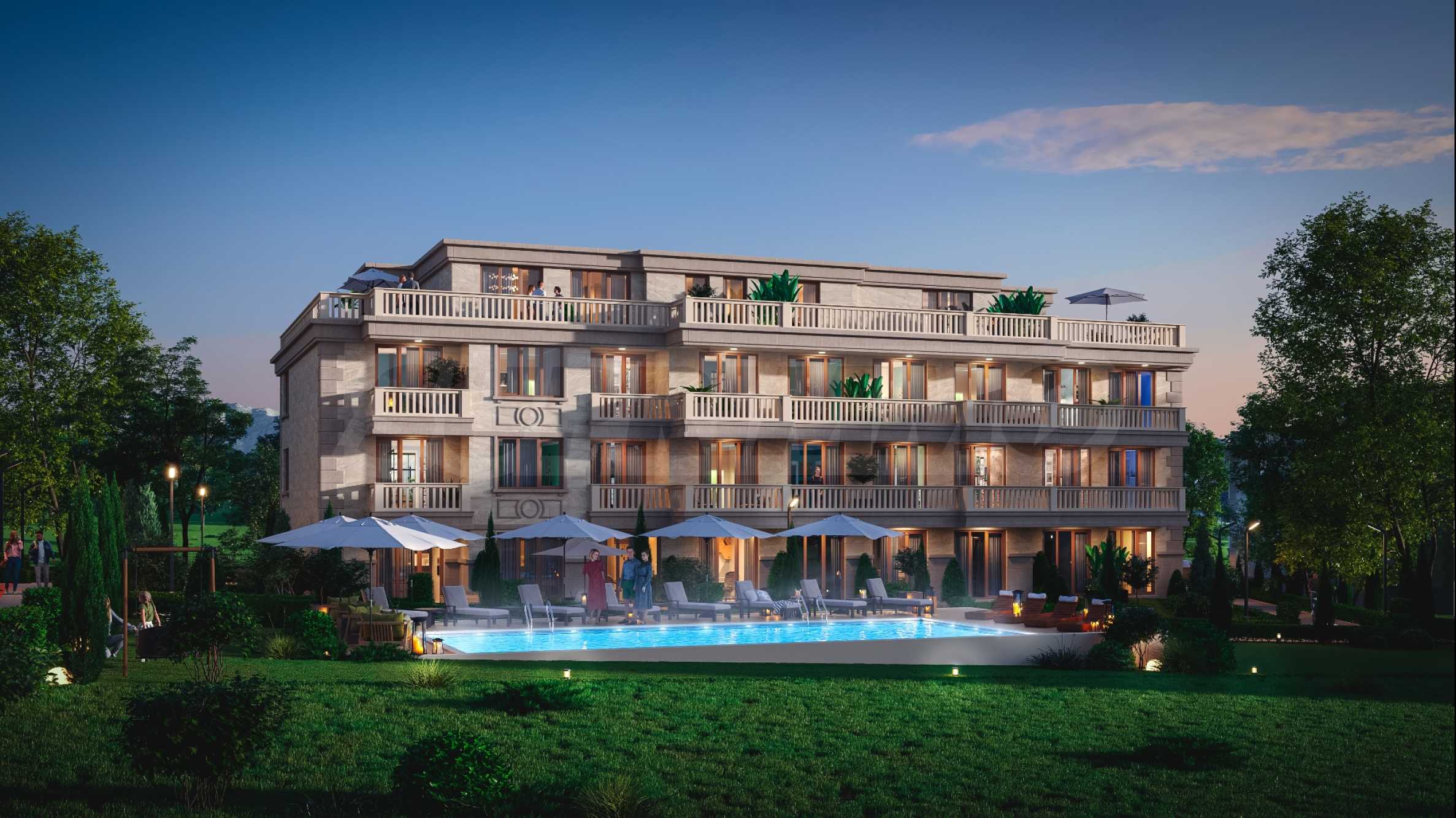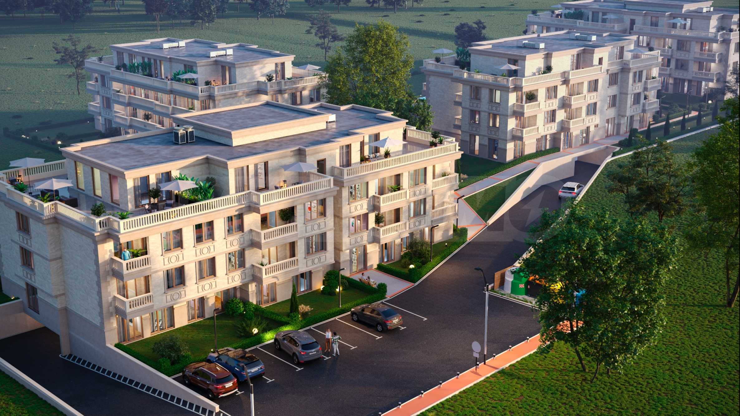 The complex consists of four residential buildings, with a richly landscaped yard with different areas - for walking, playing and recreational activities. It also has an underground parking lot with more than 100 parking spaces, charging stations for electric cars, 24-hour security, an outdoor swimming pool.