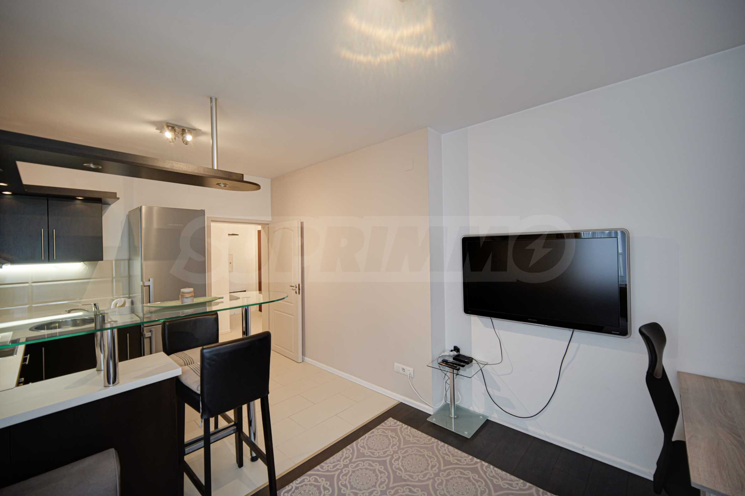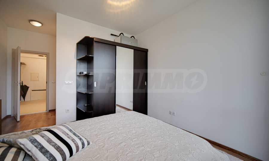 The apartment is bright and very cozy, fully furnished with modern furniture and all necessary electrical appliances. The space is optimally distributed between a living room with a separate kitchenette, a bedroom with a double bed and a wardrobe, a bathroom with a shower, a utility room with a washing machine and a terrace. Another advantage of the property is the possibility of renting a parking space in the underground garage of the building for an additional fee.