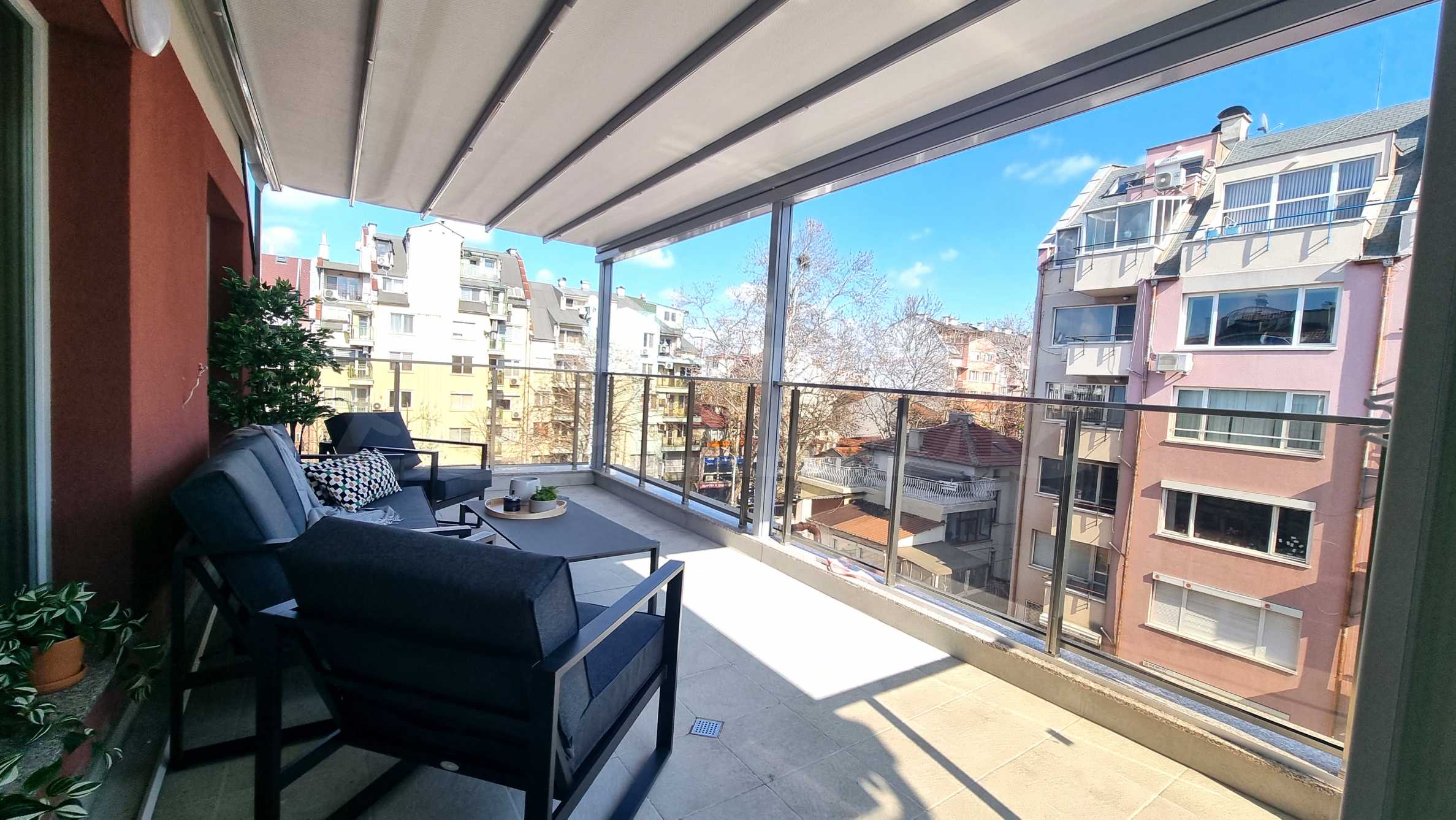 The terrace of this apartment is a true urban oasis. It offers a wonderful opportunity for relaxation and creates the perfect atmosphere for relaxing and gathering with friends and family. The terrace is furnished with modern furniture that combines functionality with elegant design.