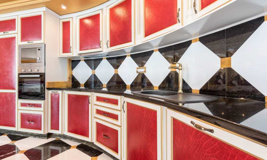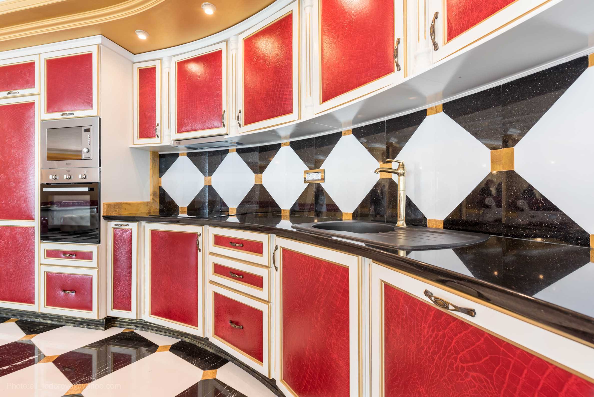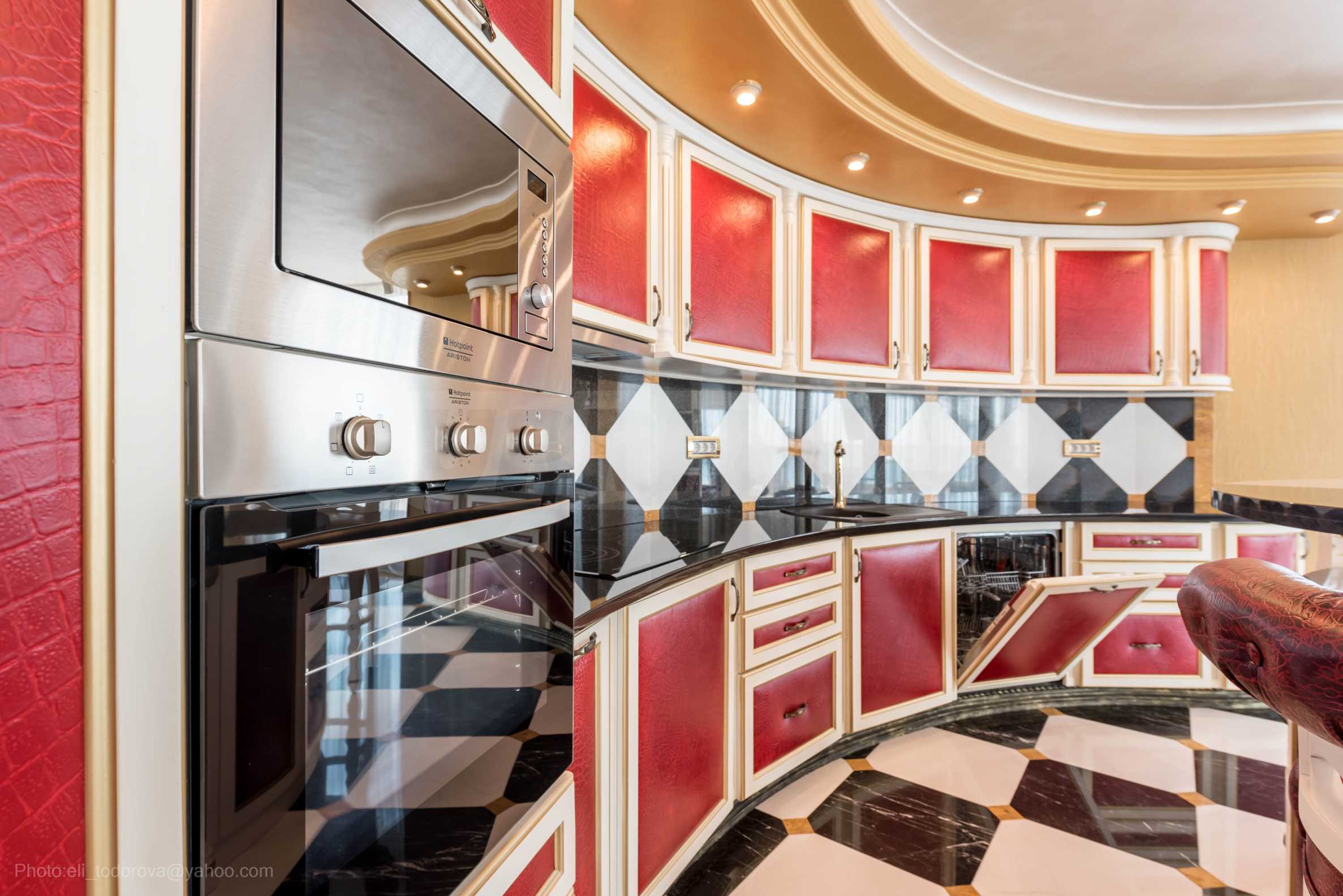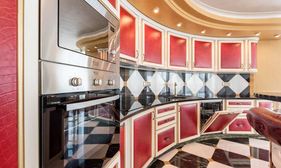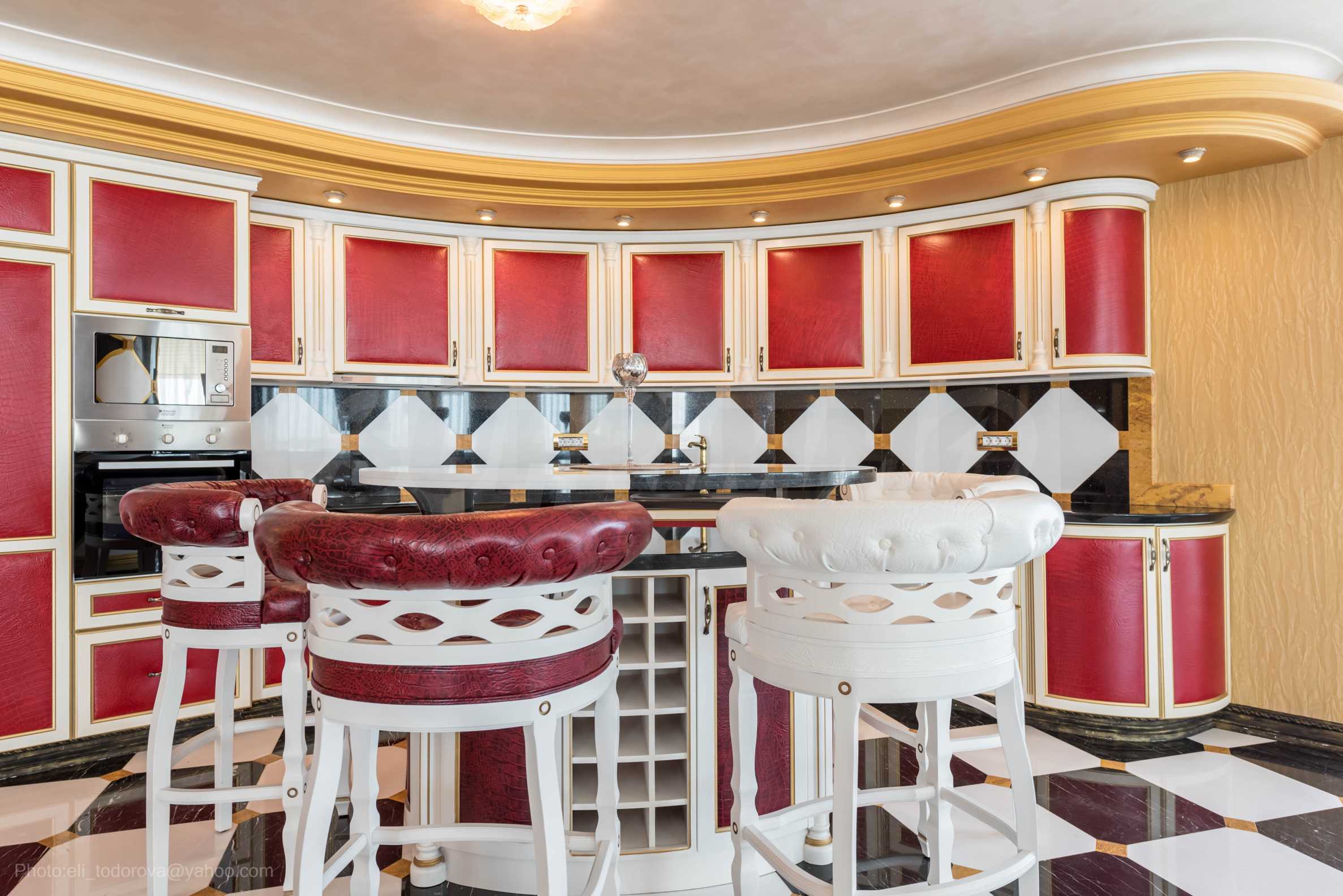 The design is sophisticated and bold. A remarkable and provocative element that has been assigned the key place in its classic interior - the upholstered furniture with natural leather in royal red.