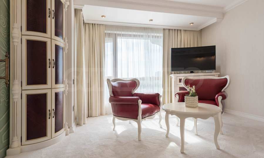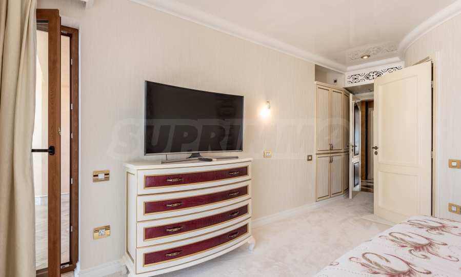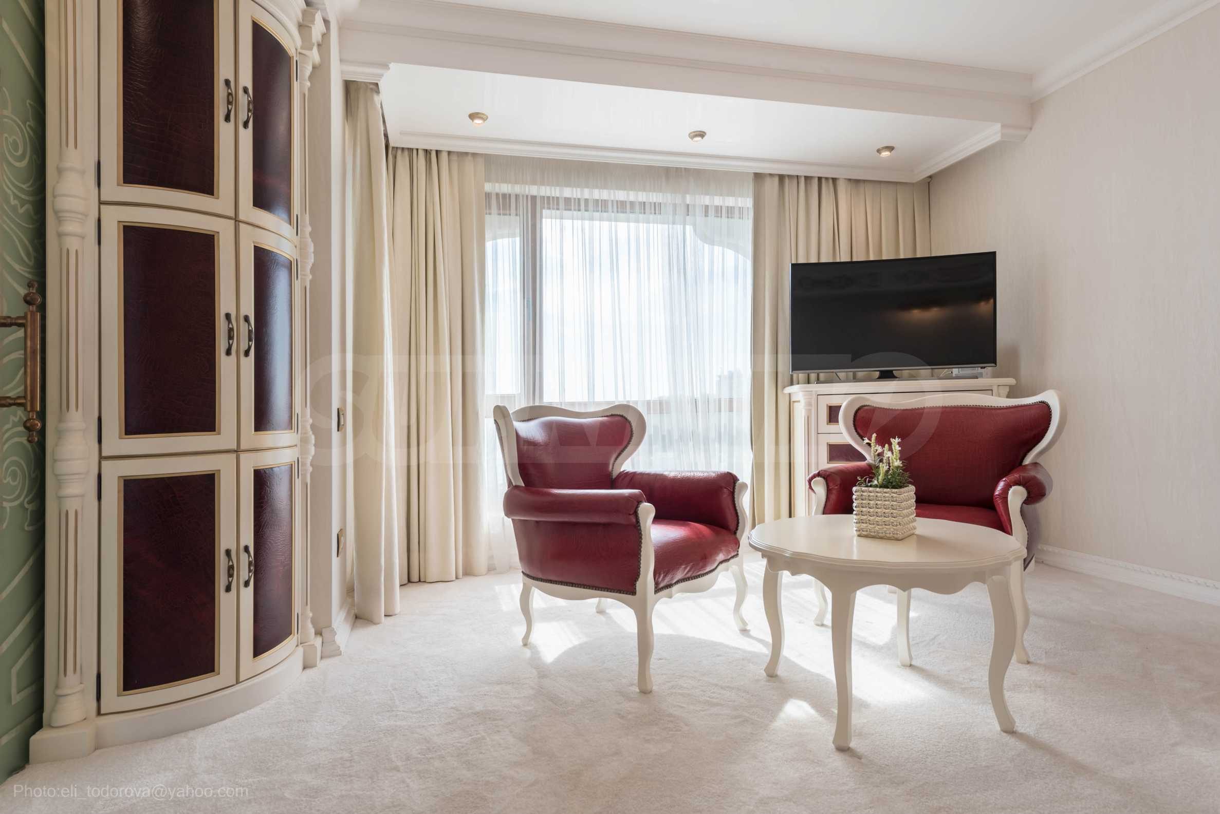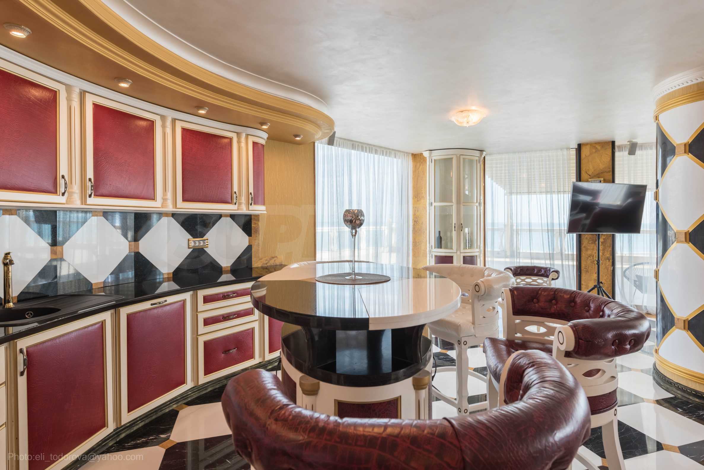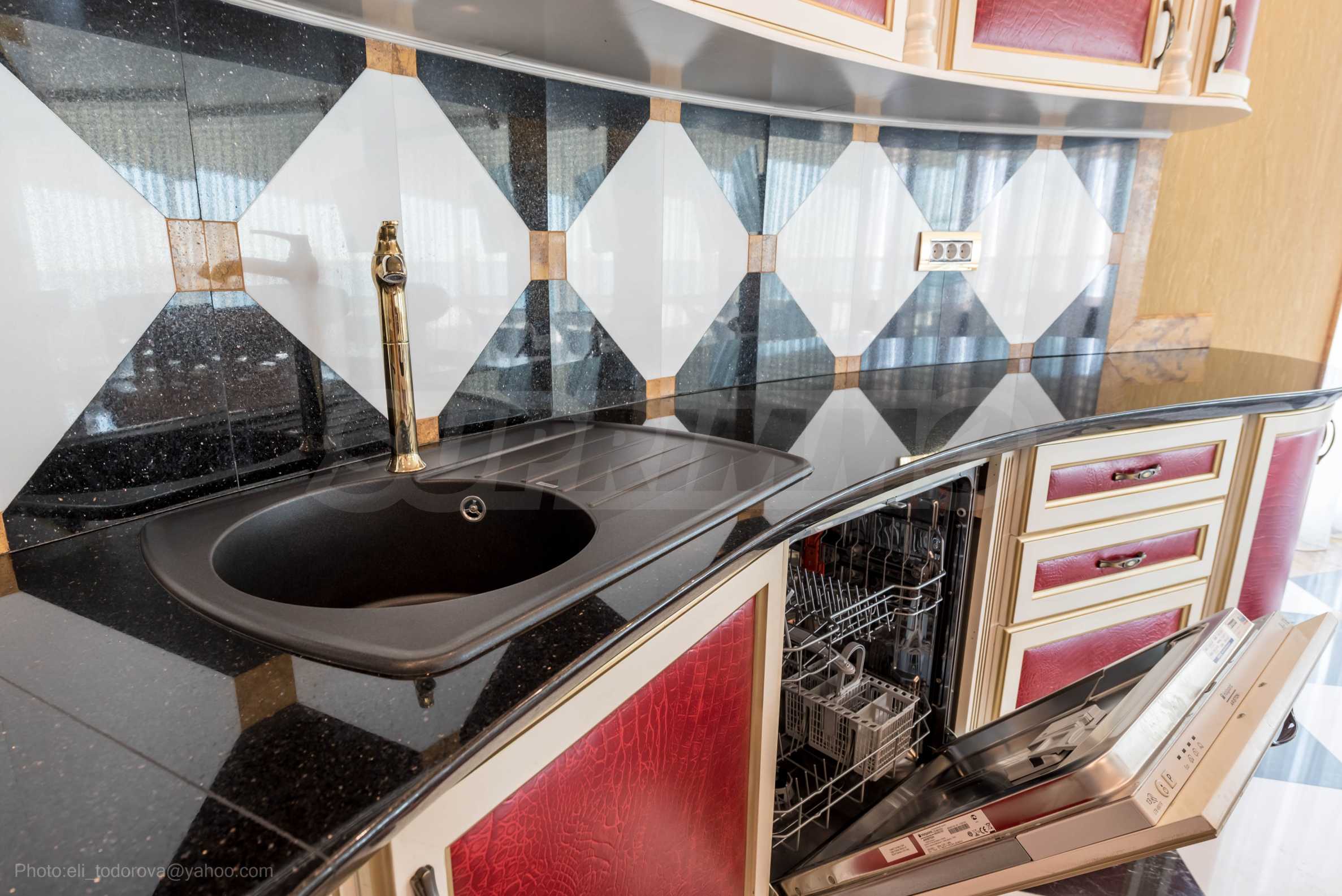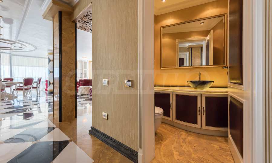 The apartment is luxuriously finished with custom-made furniture and high-class materials, equipped with first-class equipment.