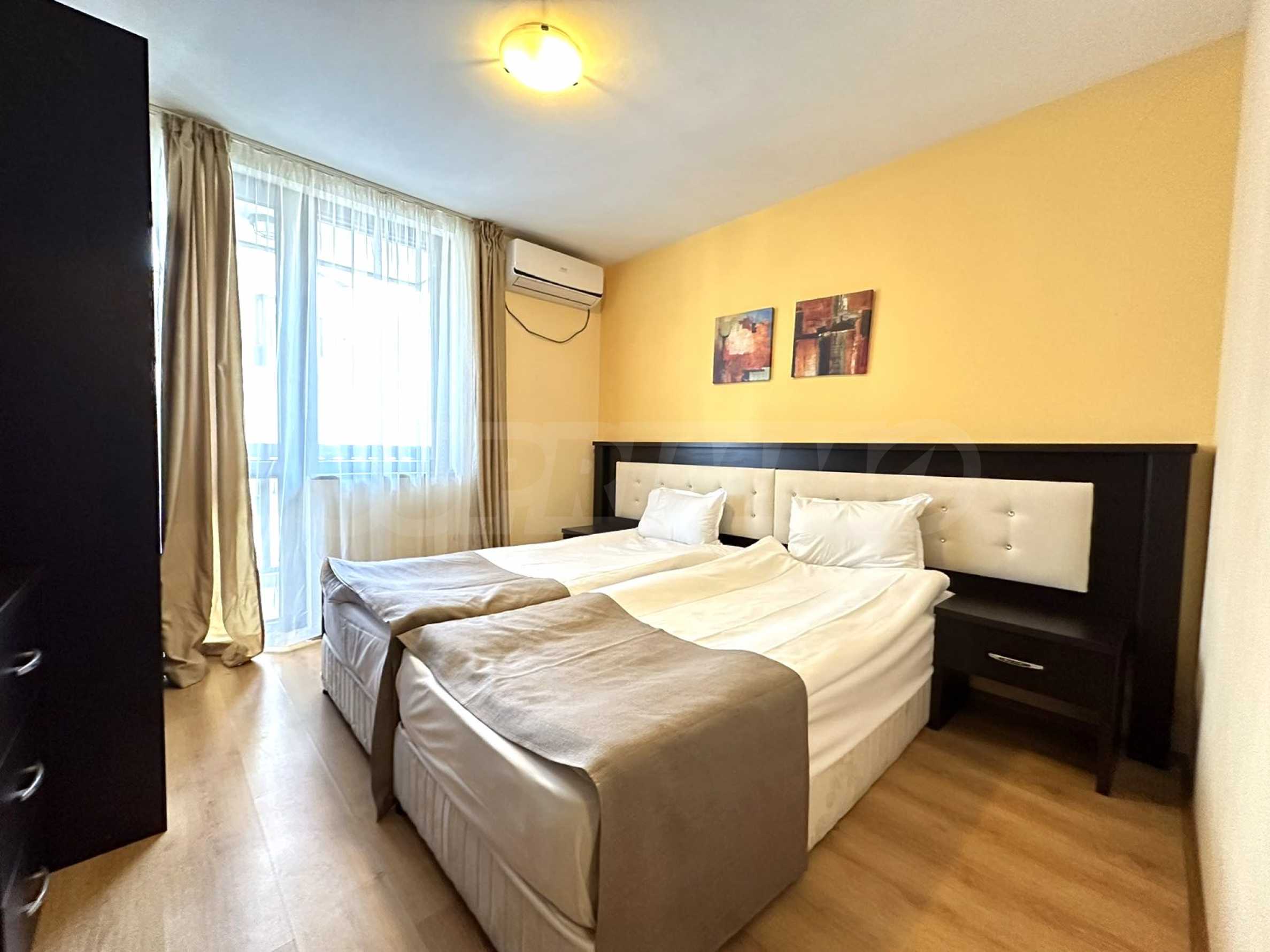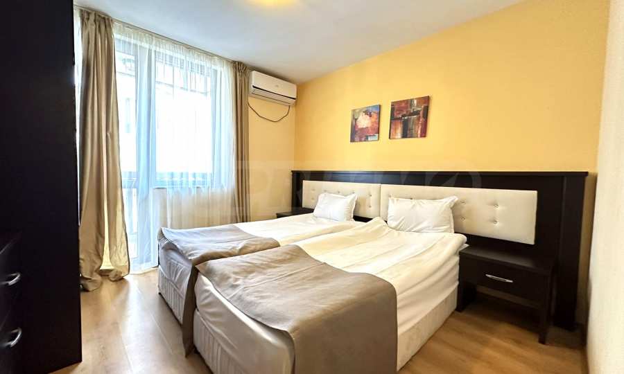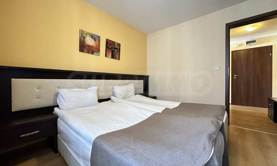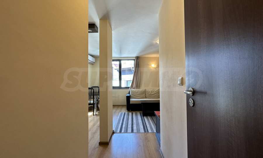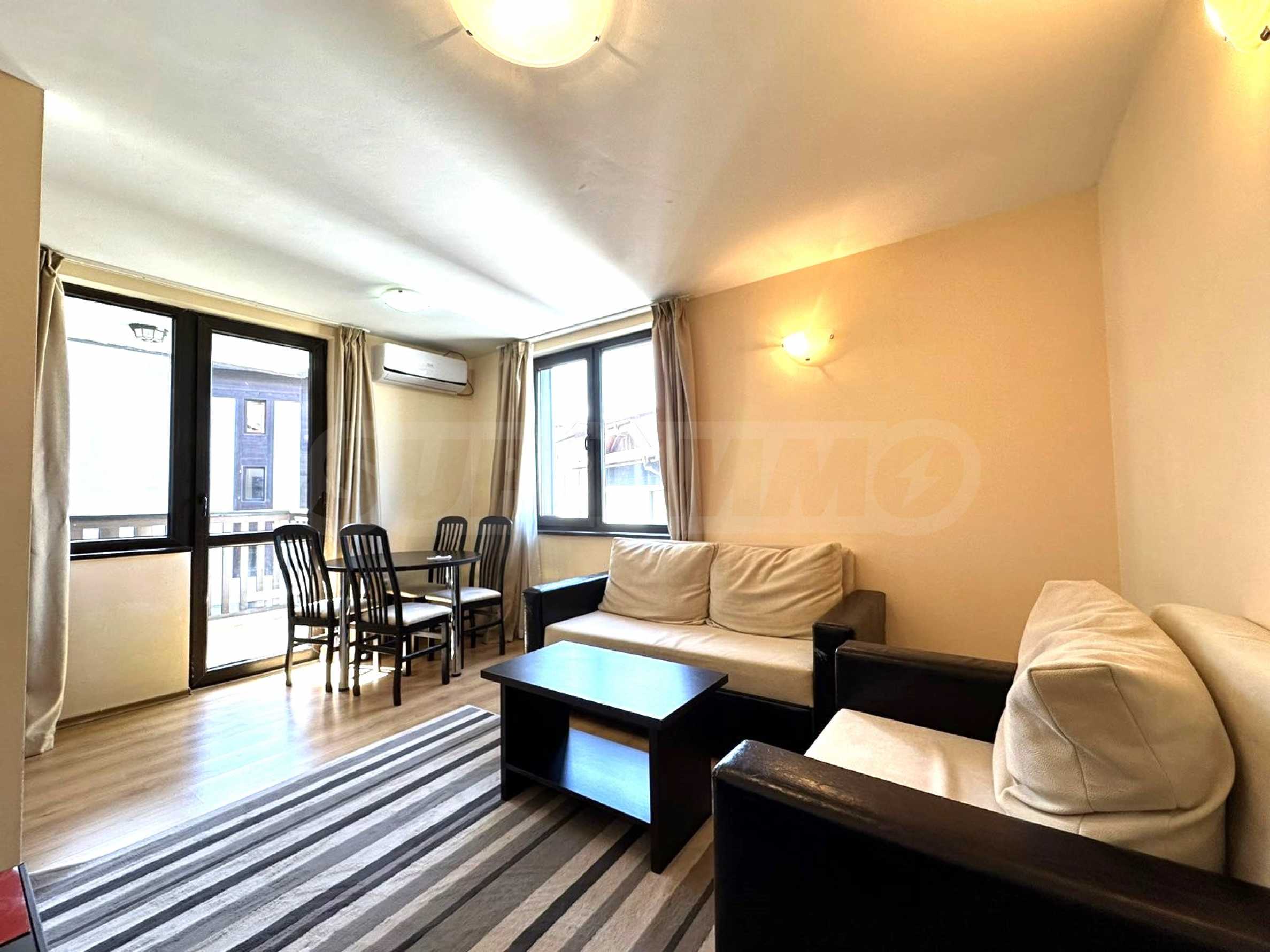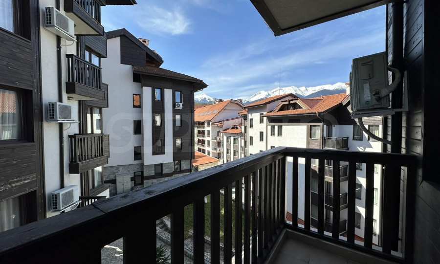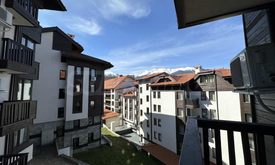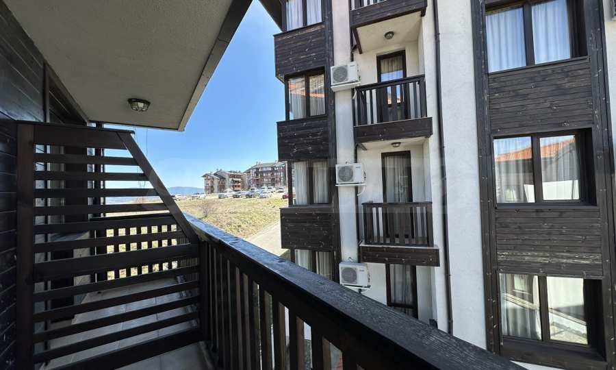 A spacious and bright two-room apartment in a hotel complex, located at the foot of the Pirin mountain, just a few minutes from the gondola lift and the ski slopes of Bansko.