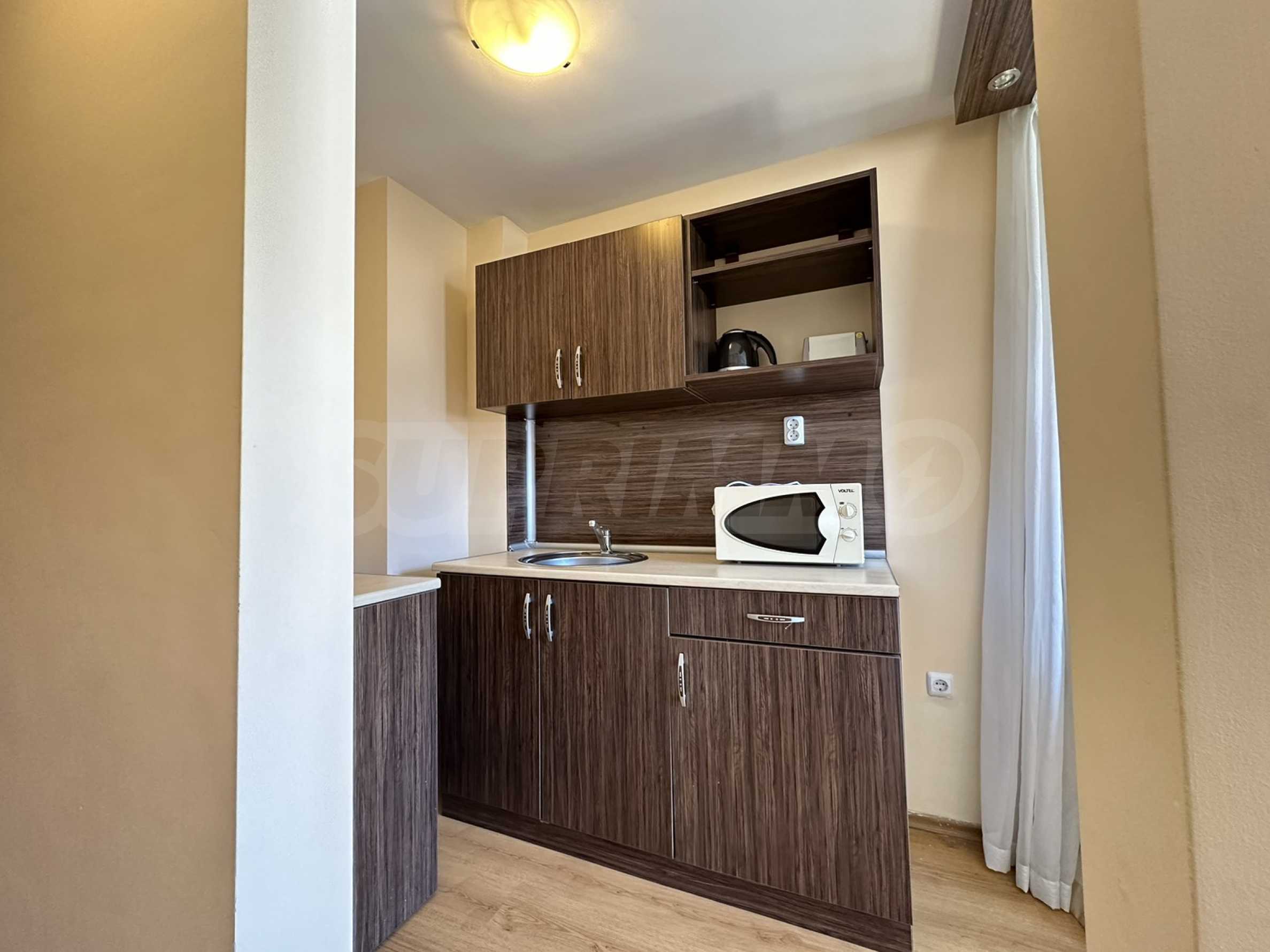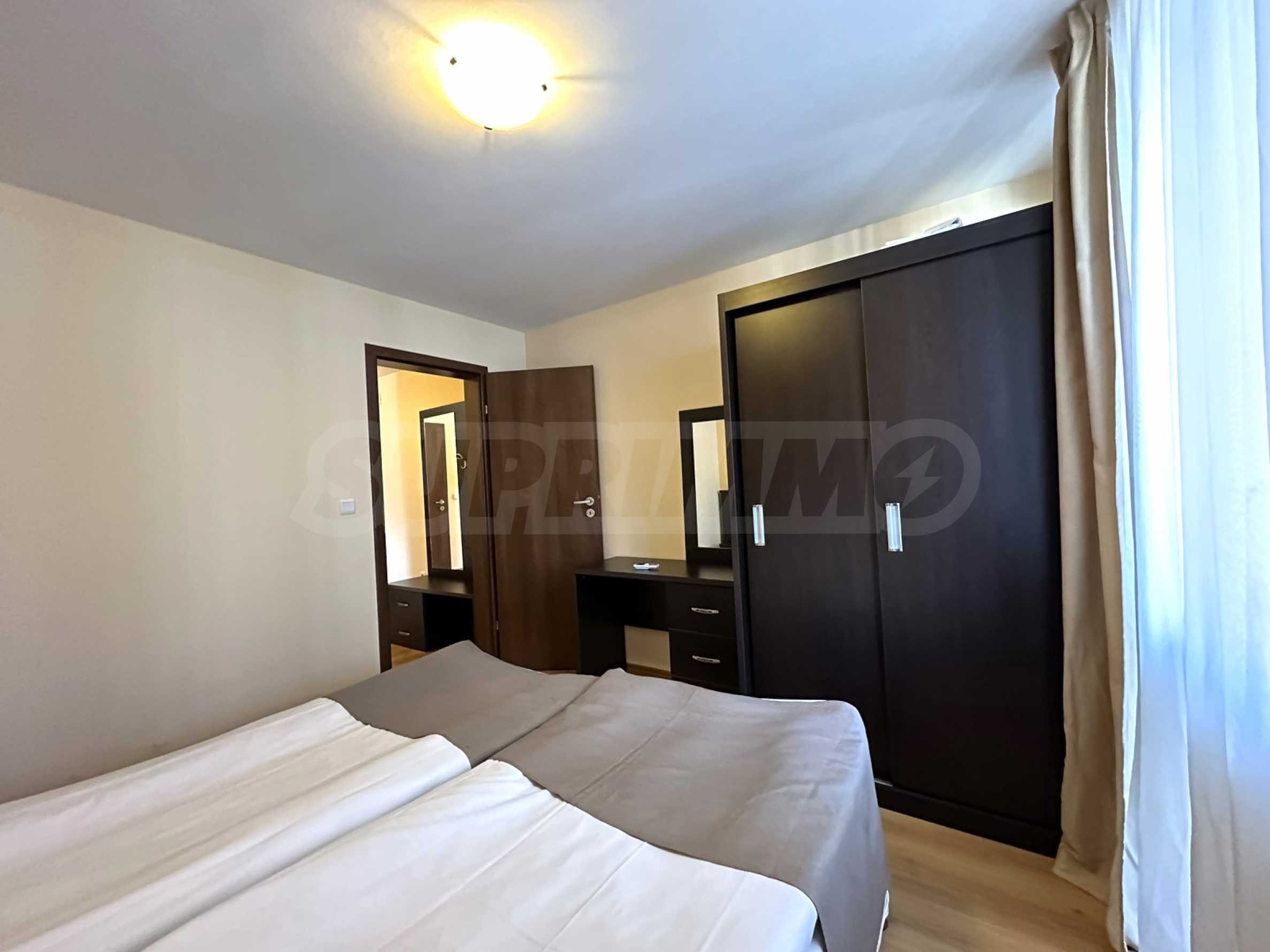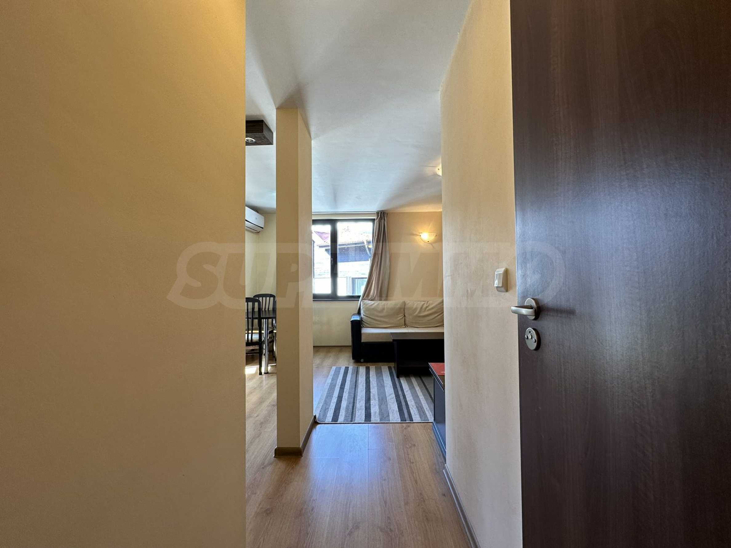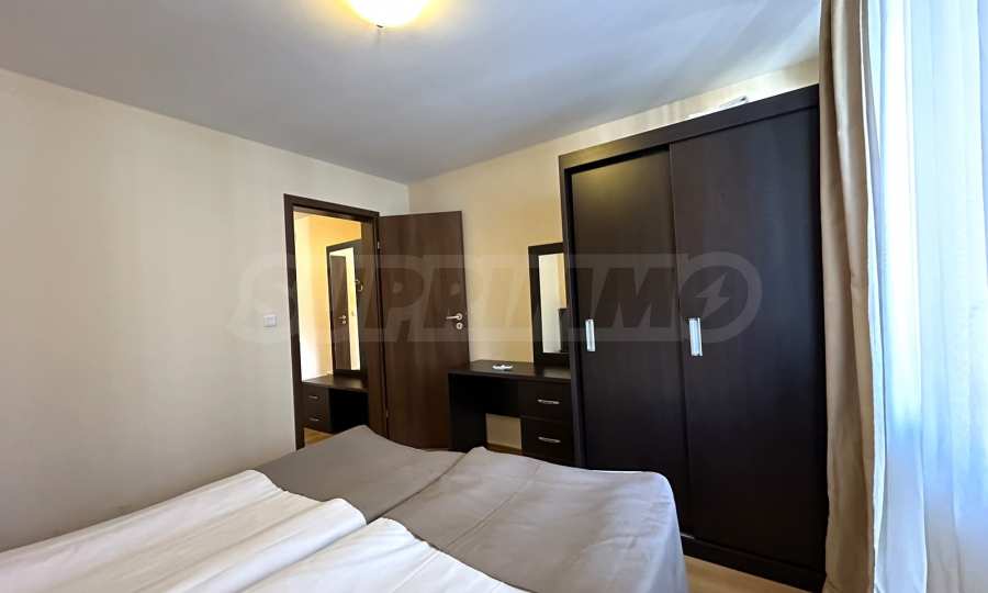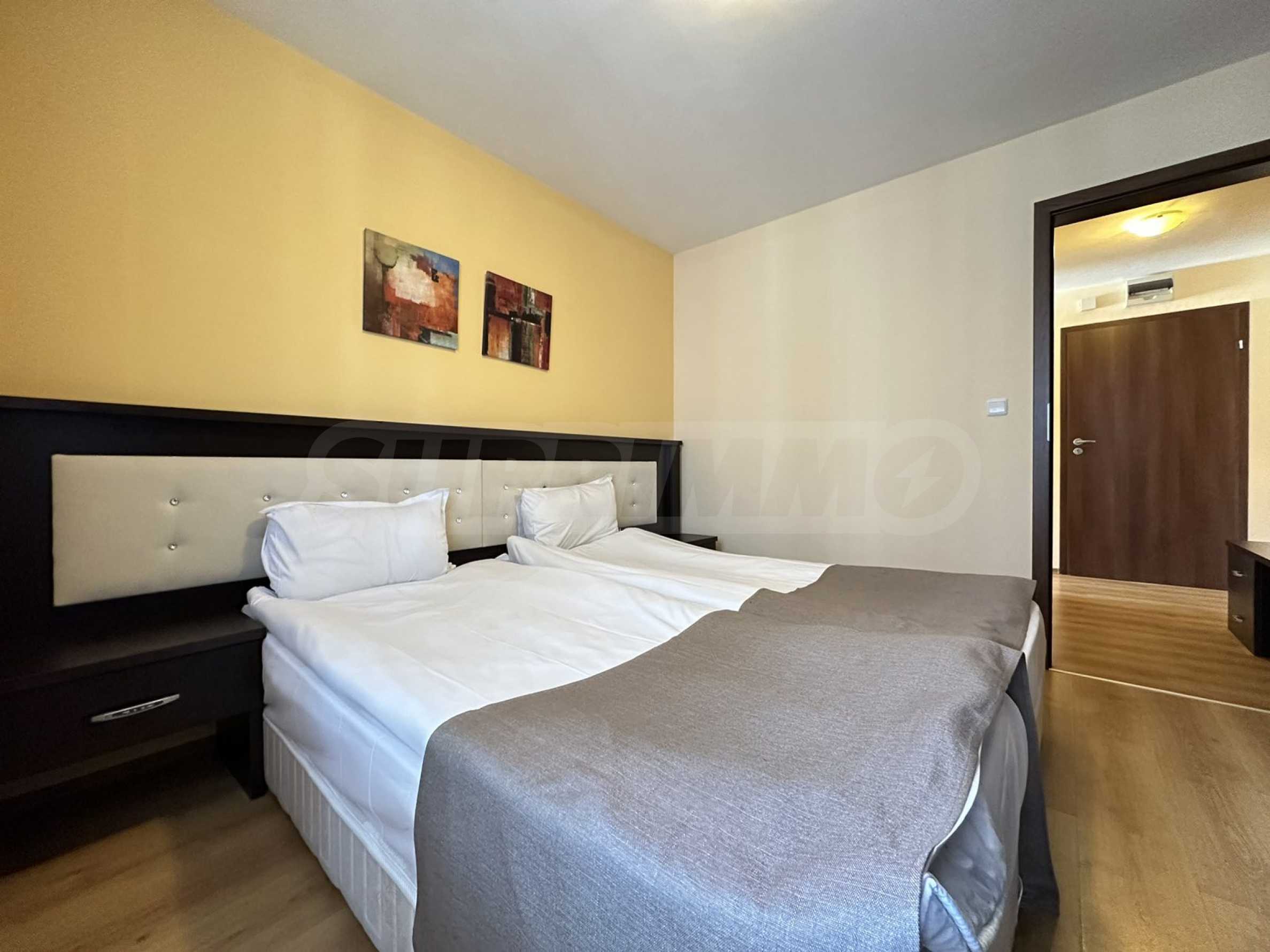 A spacious and bright two-room apartment in a hotel complex, located at the foot of the Pirin mountain, just a few minutes from the gondola lift and the ski slopes of Bansko.
