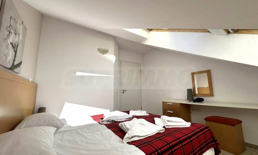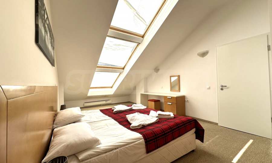 St. George Palace is one of the most luxurious year-round complexes in Bansko, with an extensive spa area with massage services and a panoramic view of Bansko, Pirin and Rila. The complex has a restaurant serving traditional Bulgarian, Italian and European cuisine, and a children's play area. The apart-hotel has 2 bars: a sports bar with a pool table and jigs and a panoramic lobby bar with 50 seats, which offers mountain views. Guests can relax in the indoor swimming pool and the hot tub or take advantage of the equipped gym and conference hall (100-120 seats), as well as the following services - laundry, ironing, dry cleaning, safes at the reception, rent-a- car, excursions and transfers.