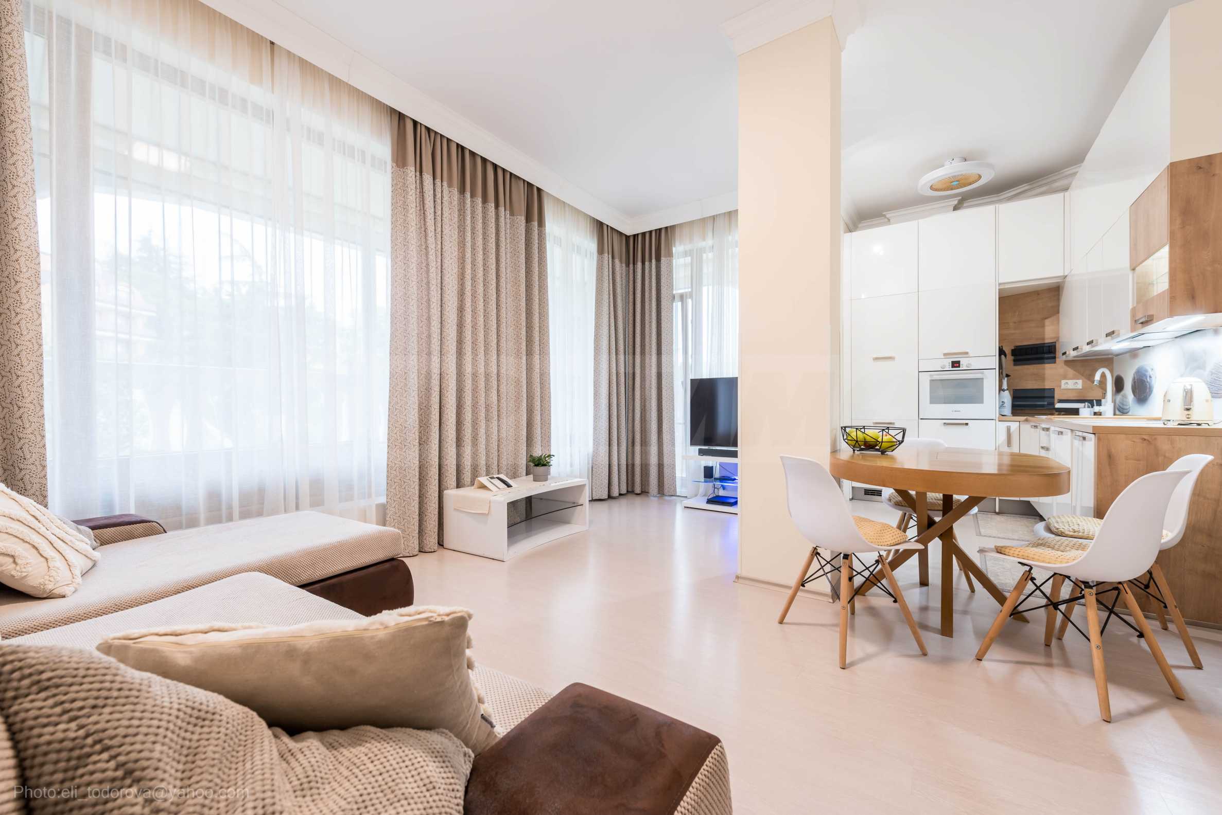 We present a cozy designer two-room apartment for sale in an elite complex right on the seashore, on Kabakum beach.