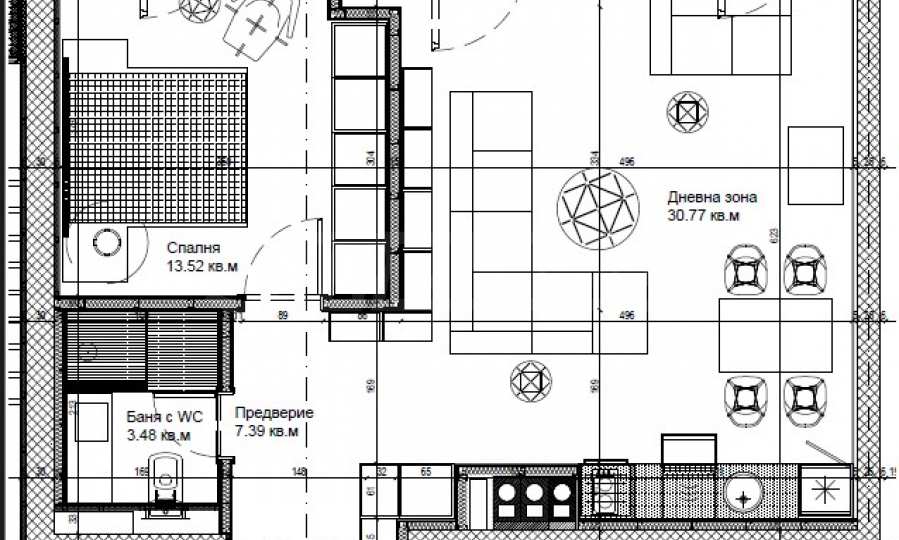 The apartment is delivered qualitatively finished according to BDS. A floor heating installation connected to an individual gas boiler is installed. There is an option for placing air conditioners in designated places in the building.