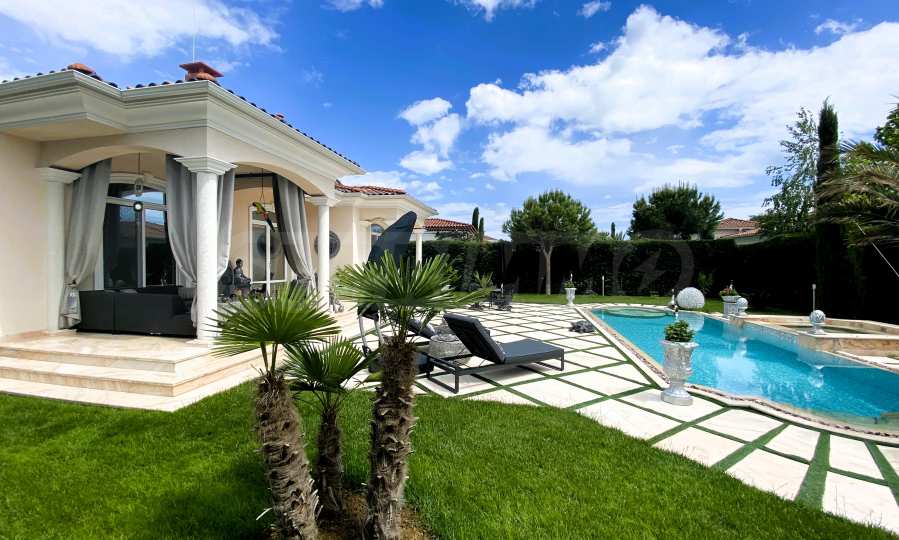 The complex is located only 2 km from the sand dunes of Sunny Beach and enjoys a picturesque, peaceful and autonomous atmosphere, with the feeling of comfort and security, favorable exposure to the sun and unique views. The fences are low, discreet, providing sufficient privacy. Stylishly and richly landscaped, with maintained common areas, the project provides for beautiful pools and gardens next to the villas, as well as first-class amenities on the grounds.