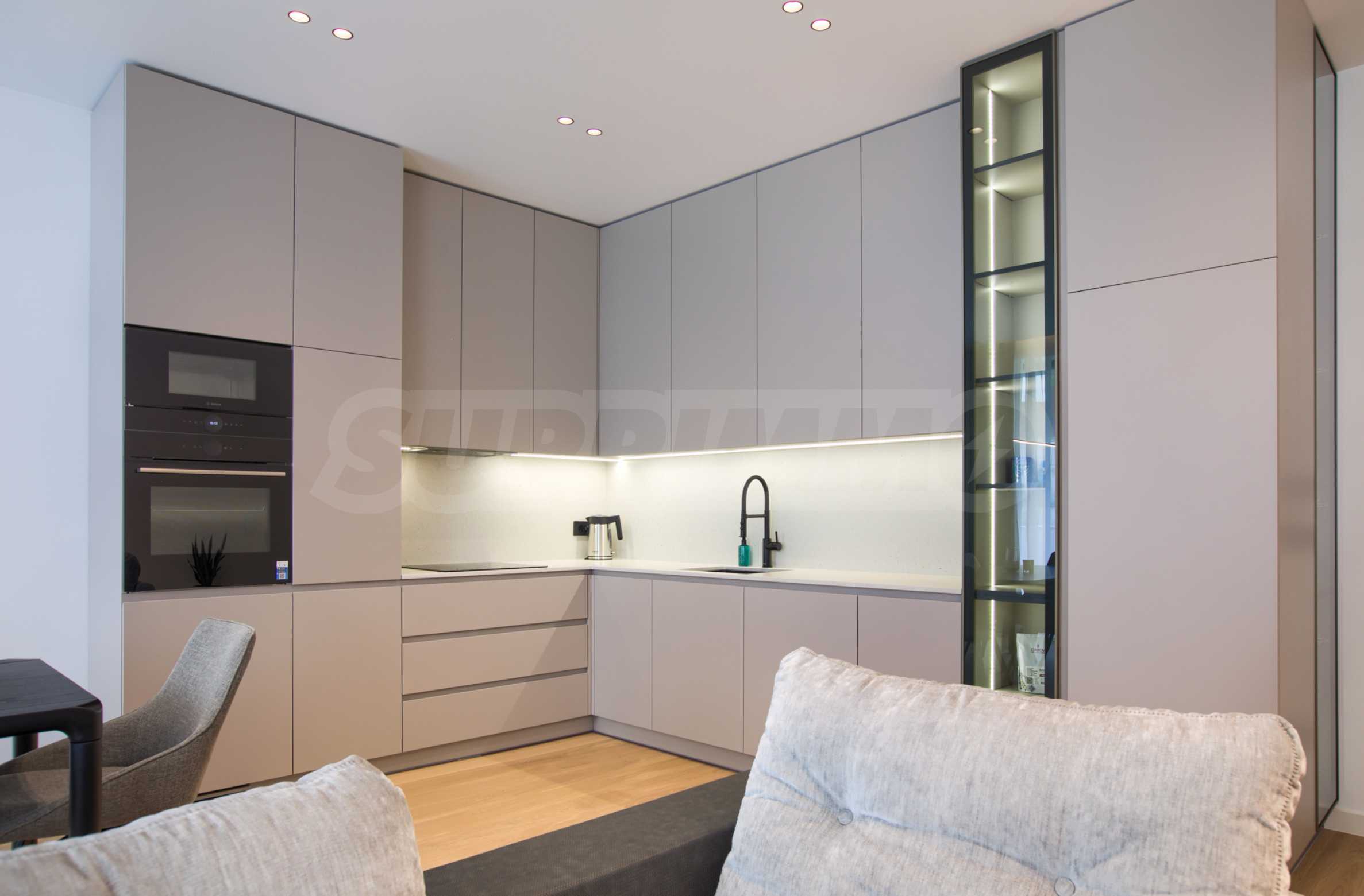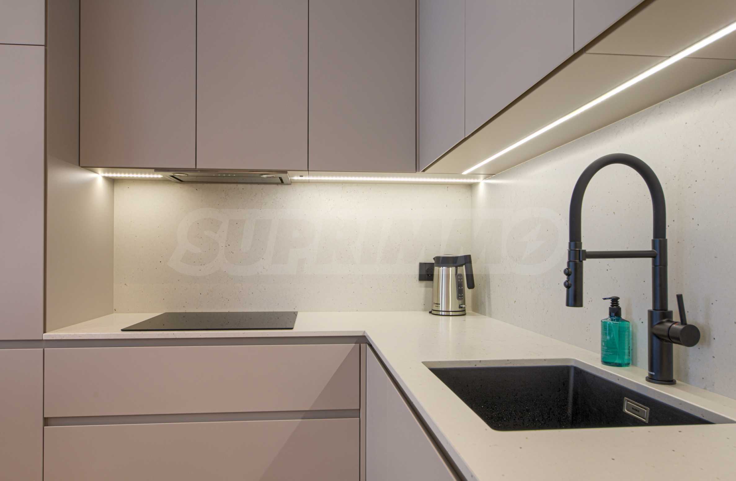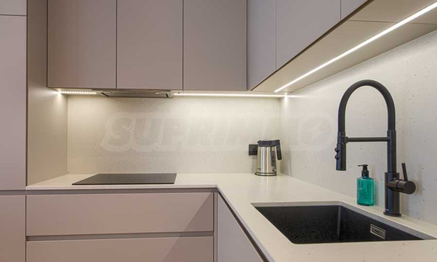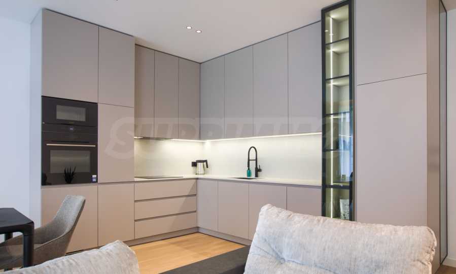 - Kitchen box with built-in appliances of the highest class (oven, induction hob, dishwasher, refrigerator);