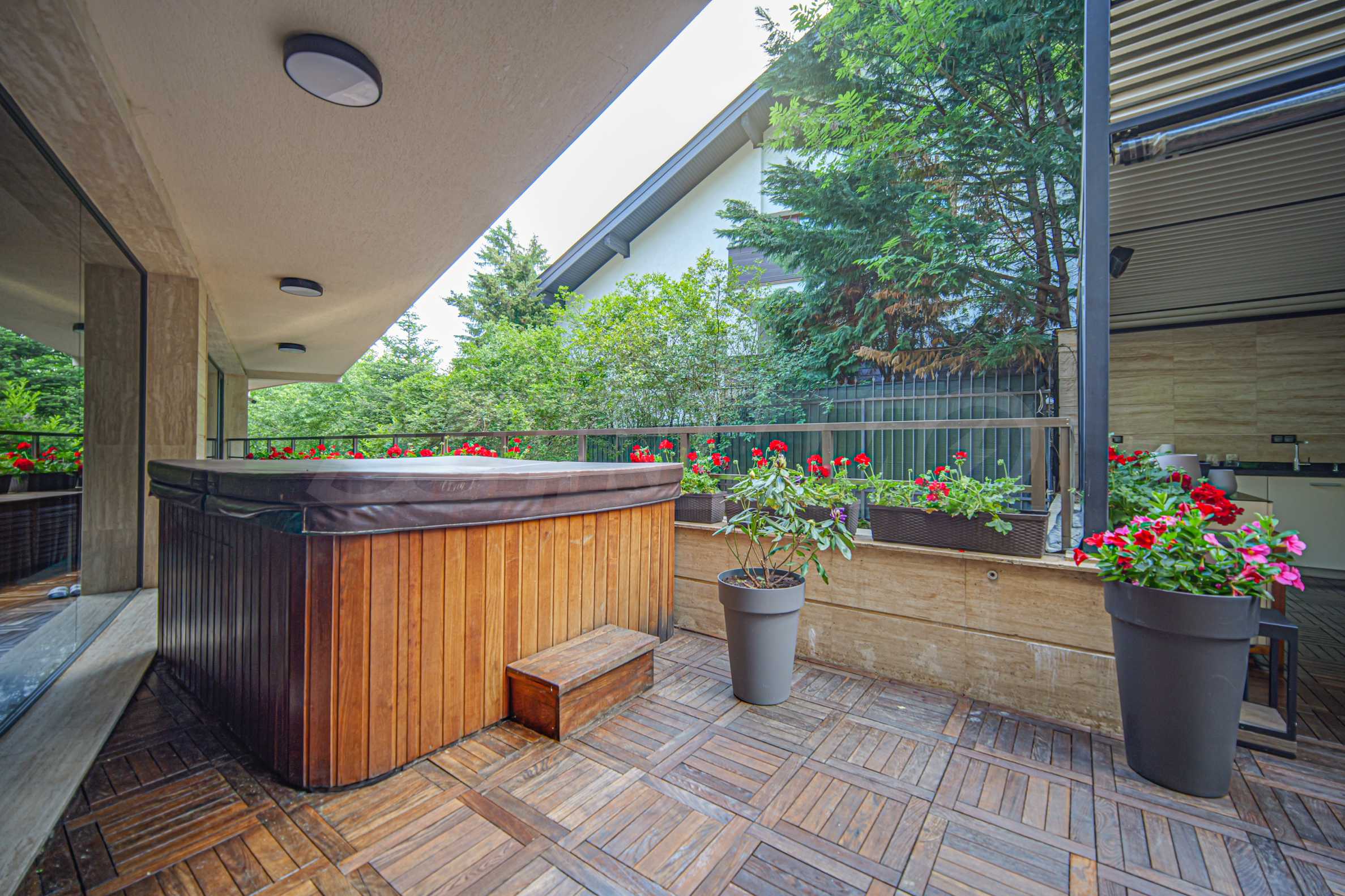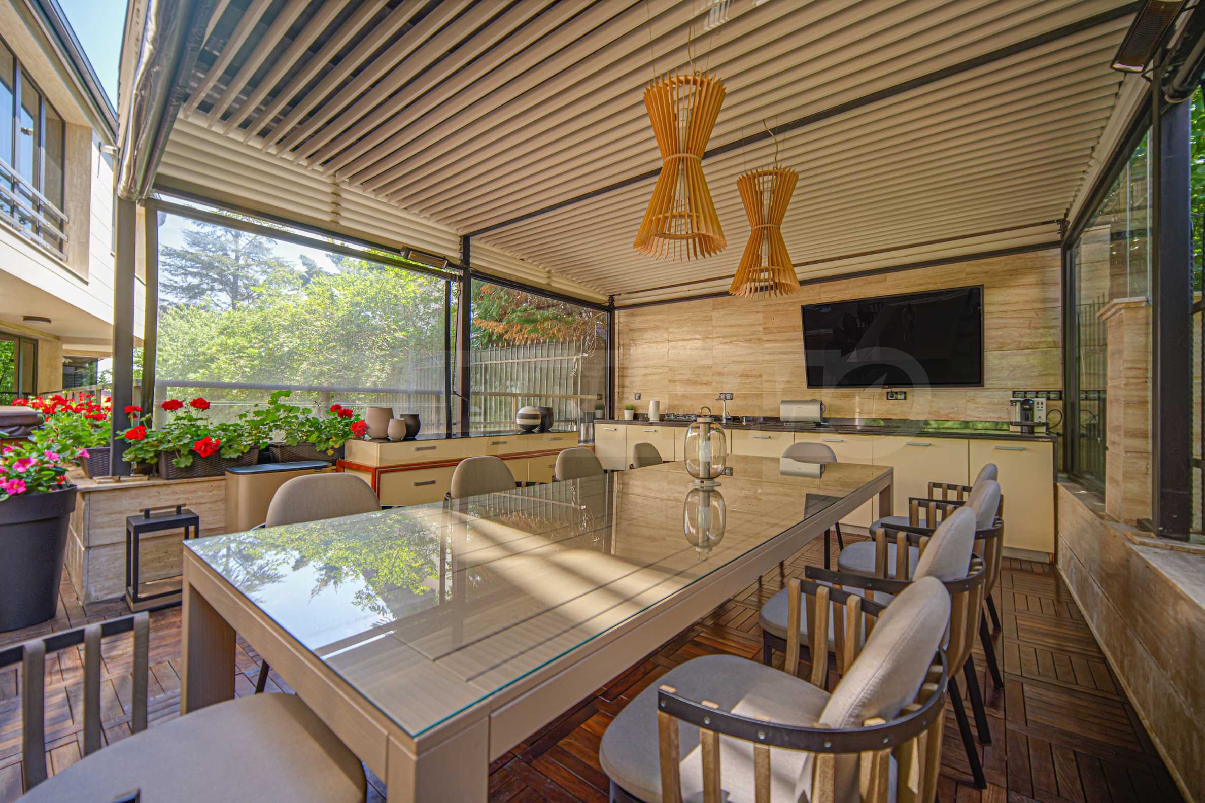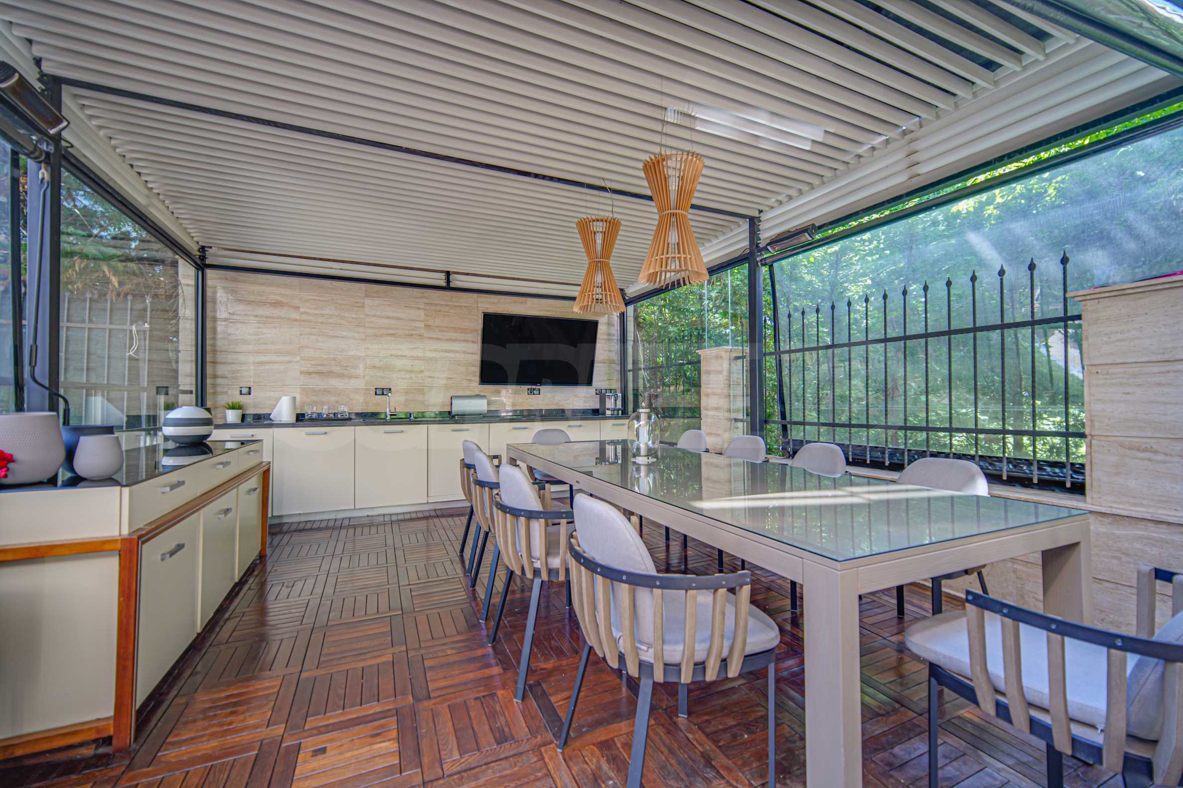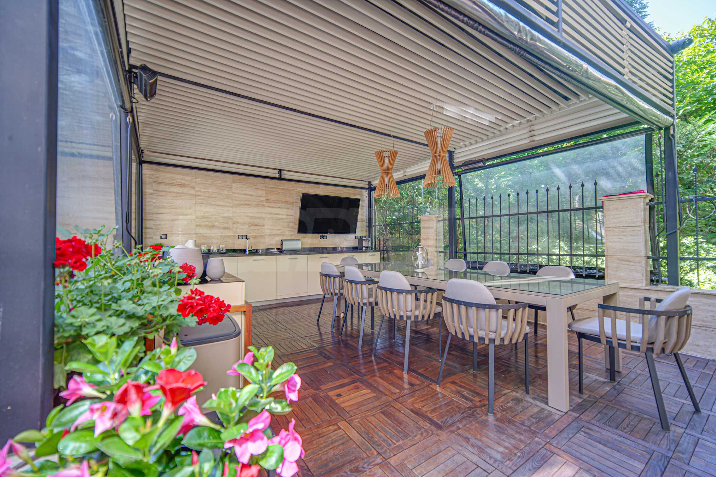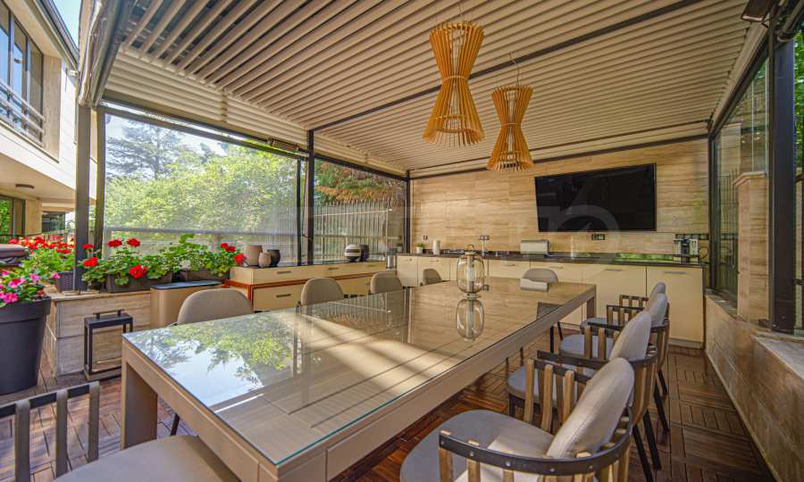 - Amazing garden with barbecue: spacious and beautifully maintained, with wooden decking, sun loungers, outdoor TV, a great space for summer gatherings and barbecues with family and friends. The garden offers privacy and tranquility, creating a true oasis.