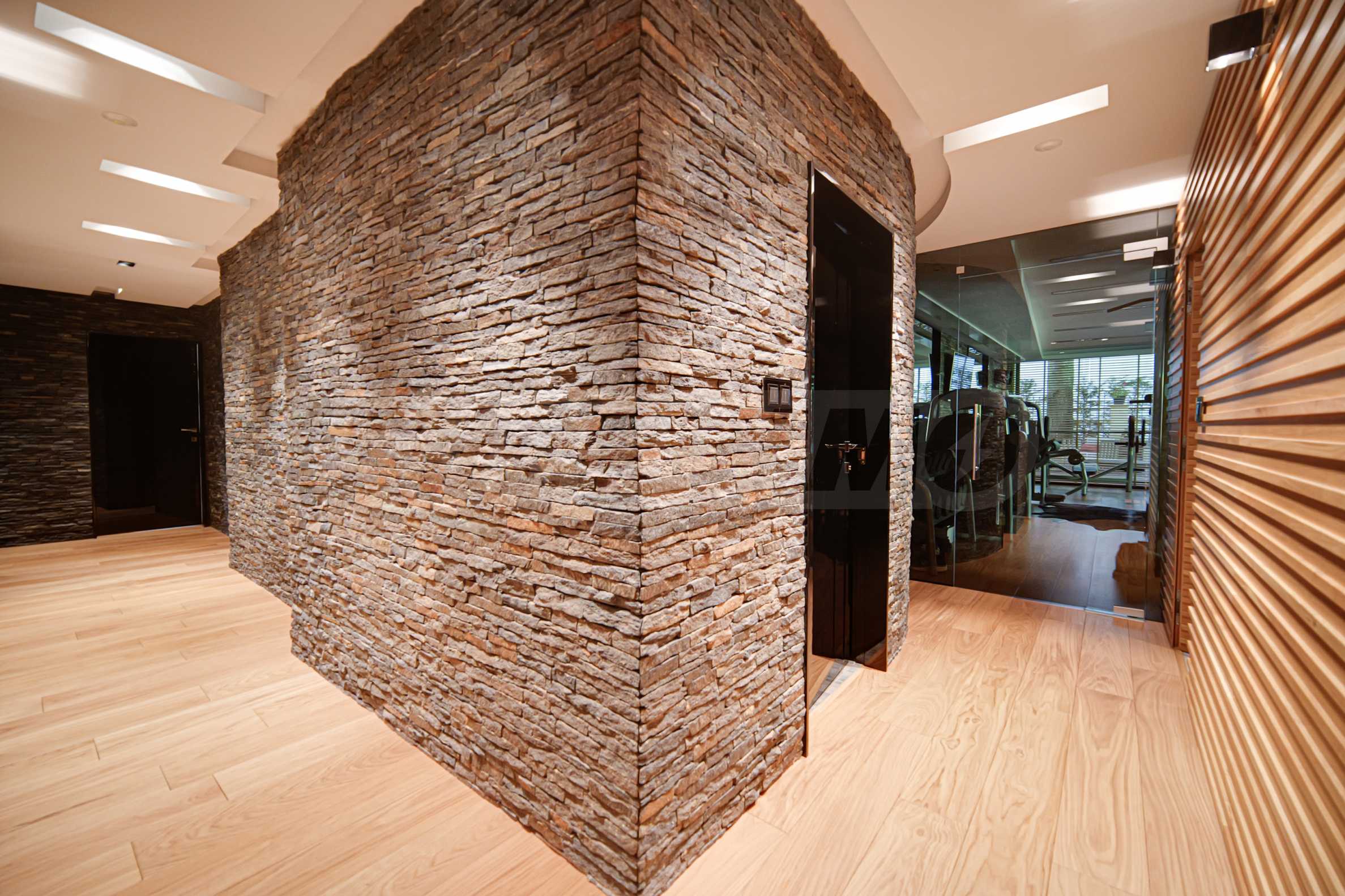 - the walls are entirely handmade with black gneiss and oak paneling;