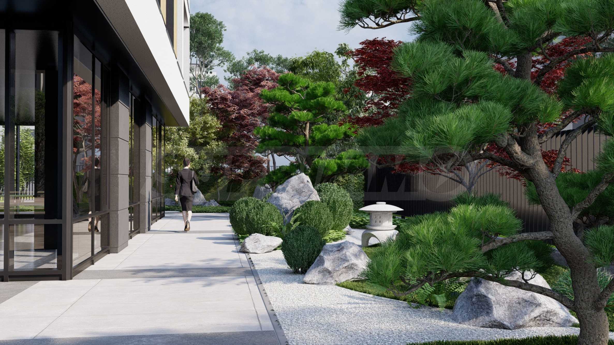 - Private Park Area: surrounding the building is a unique Japanese Zen garden with various plants and pathways, covering a total area of 1,311 square meters.