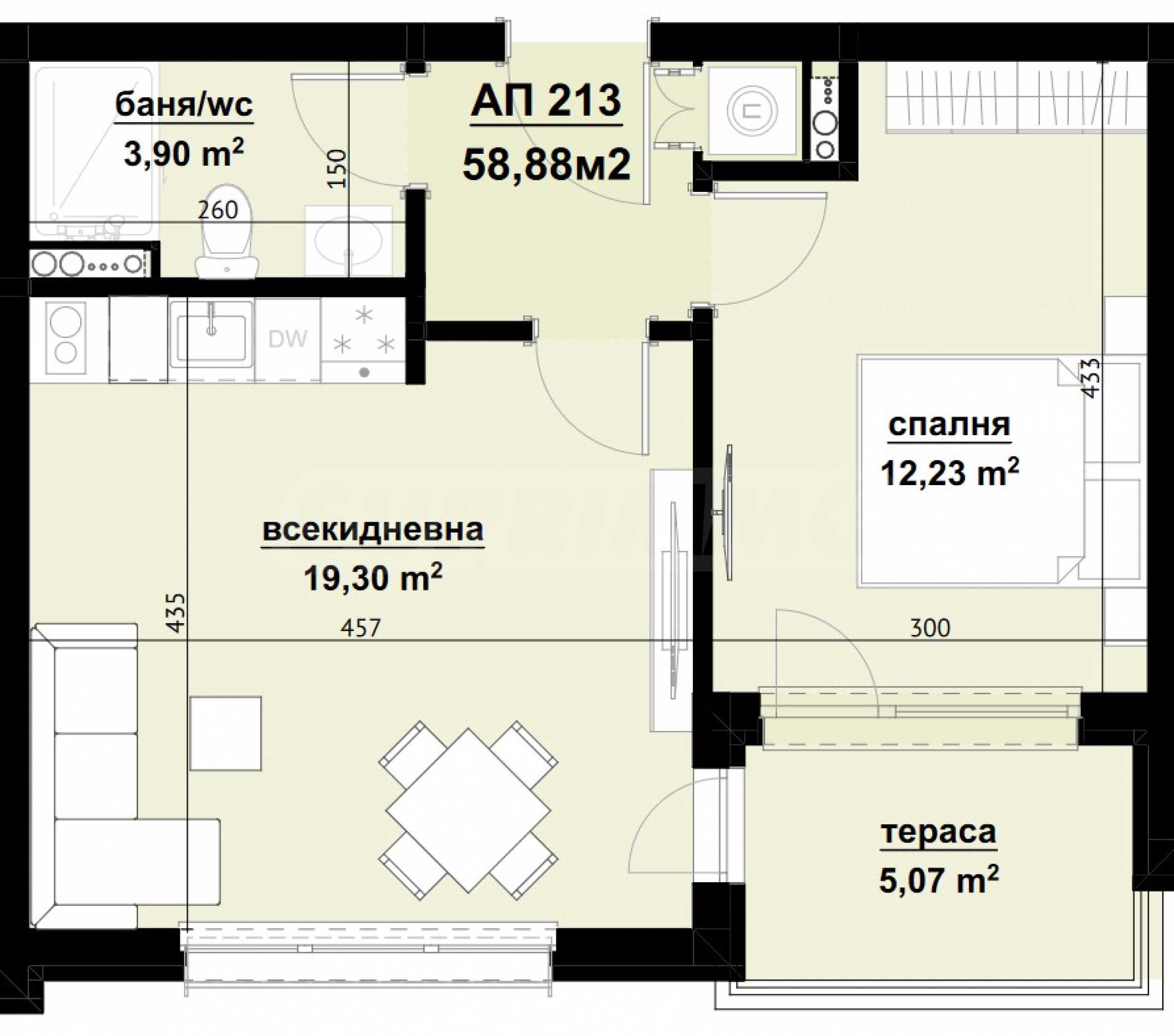 We present for sale a new one-bedroom apartment - 58.88 sq m in a modern residential building in a convenient location in the new town of Sozopol, Misarya area.