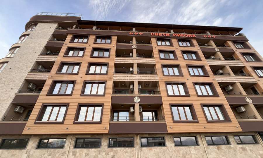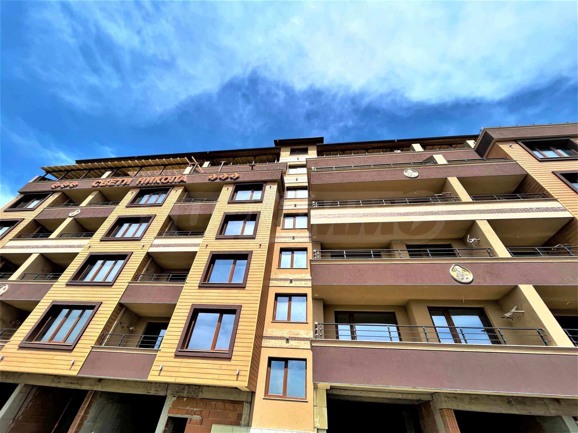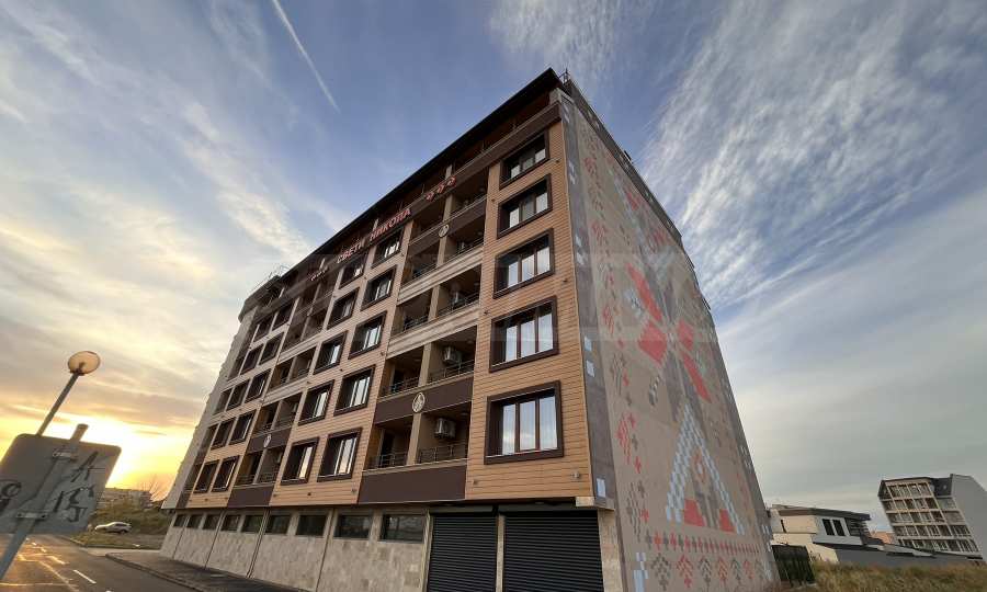 We present a one-bedroom apartment in a new residential building with shops and garages in the town of Pomorie, located 450 m from the sea and close to the rehabilitation complexes.