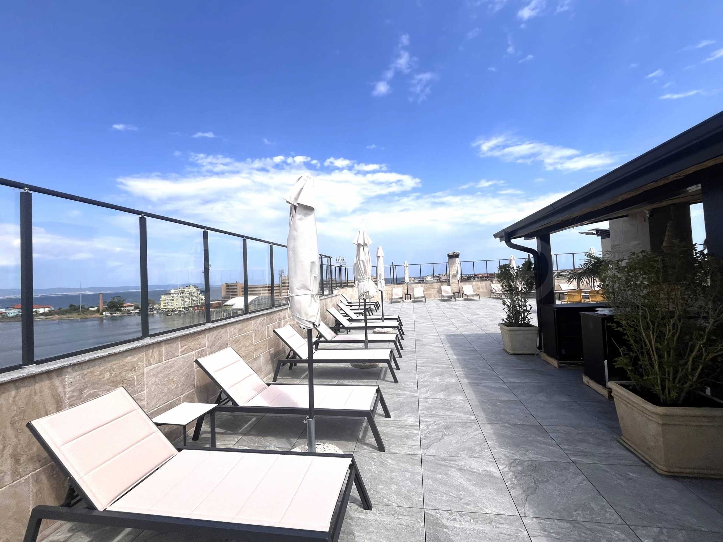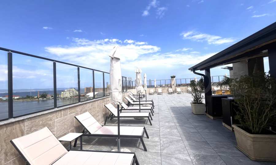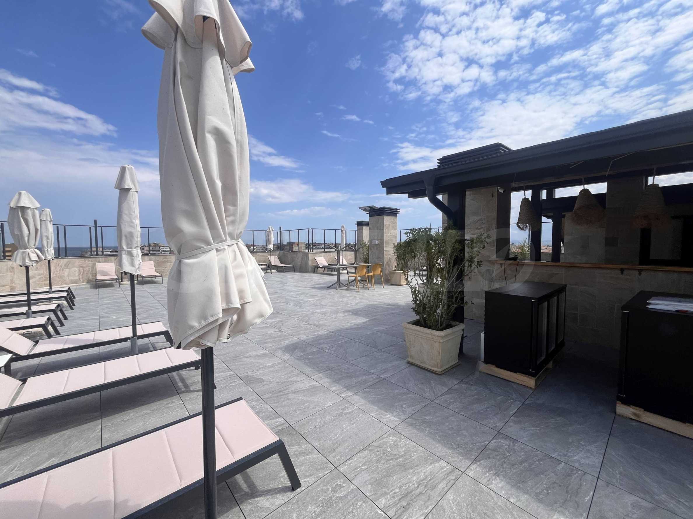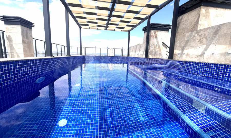 The building has Act 16. It has luxuriously finished common areas, a large parking lot, a lobby bar, reception, swimming pool, sun loungers, umbrellas and a sky bar on the roof.