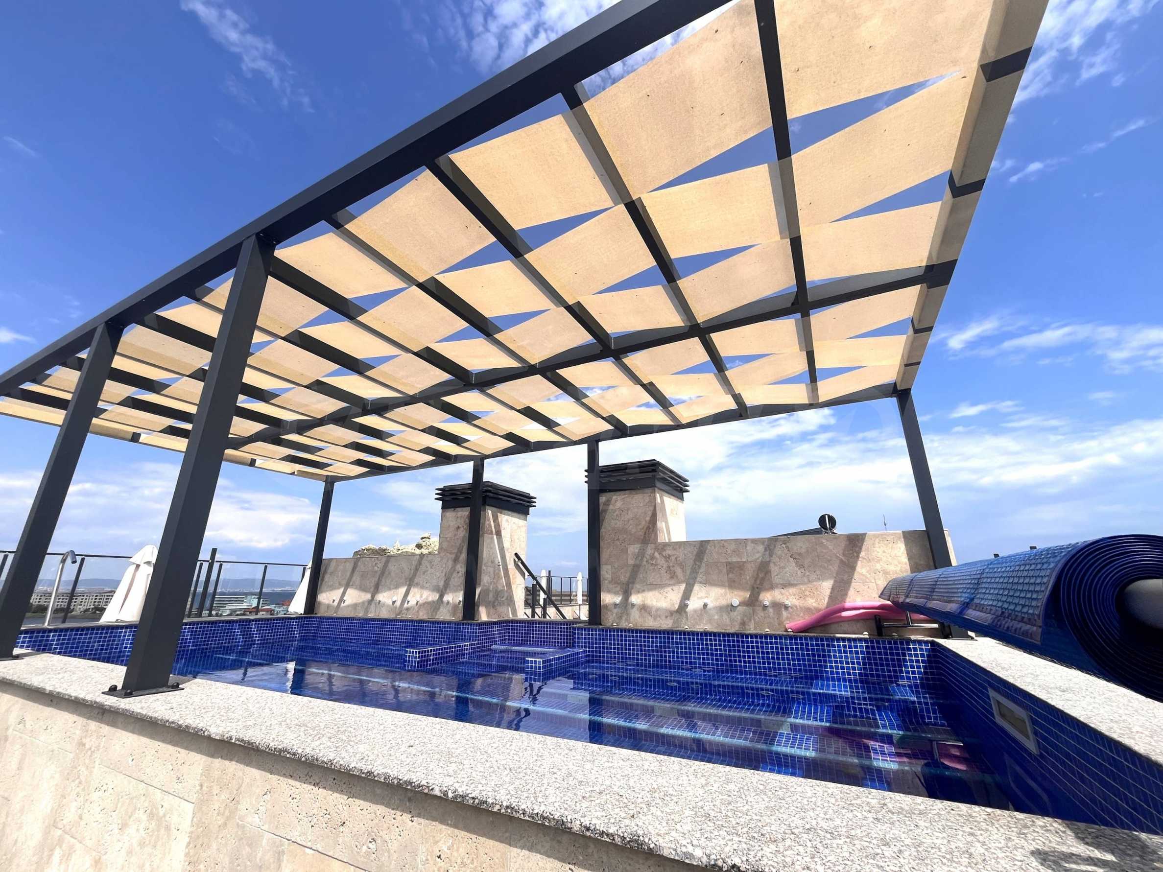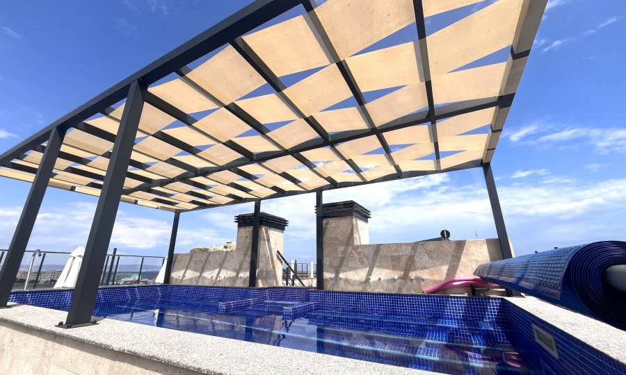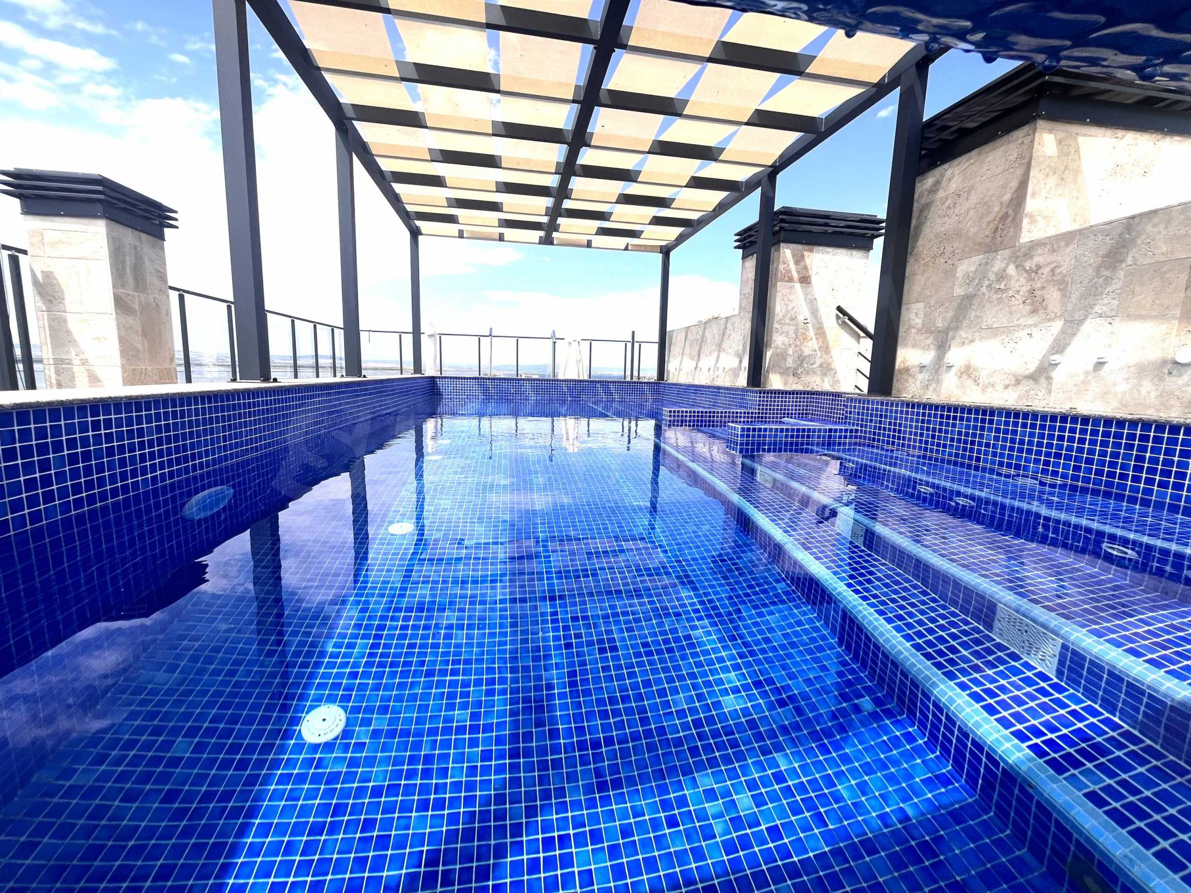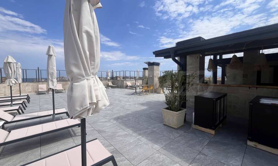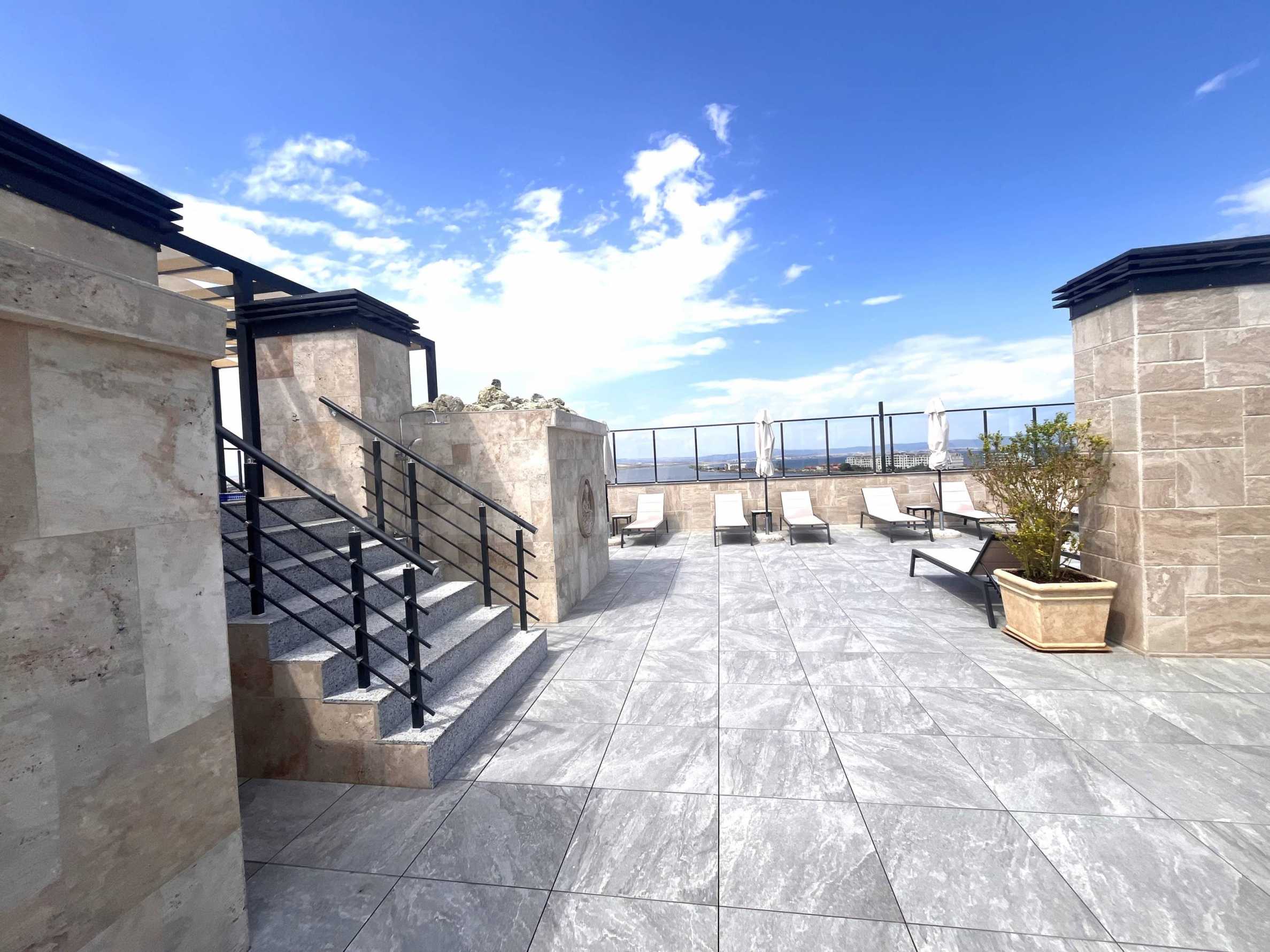 The building has Act 16. It has luxuriously finished common areas, a large parking lot, a lobby bar, reception, swimming pool, sun loungers, umbrellas and a sky bar on the roof.
