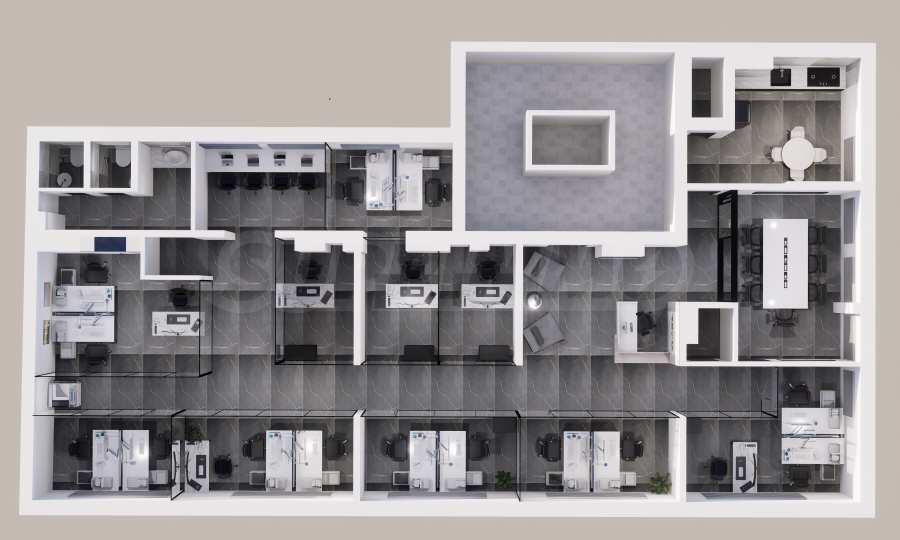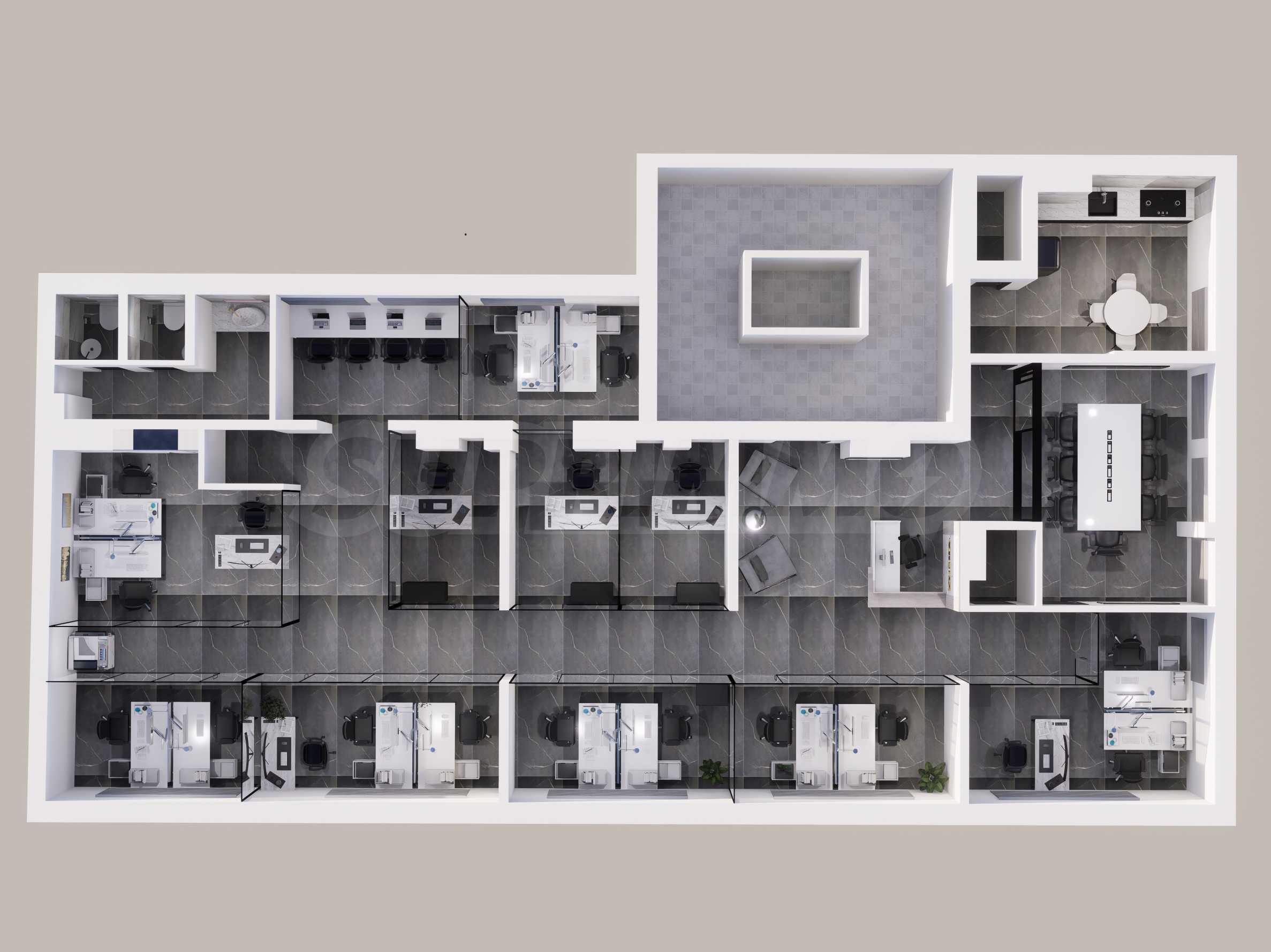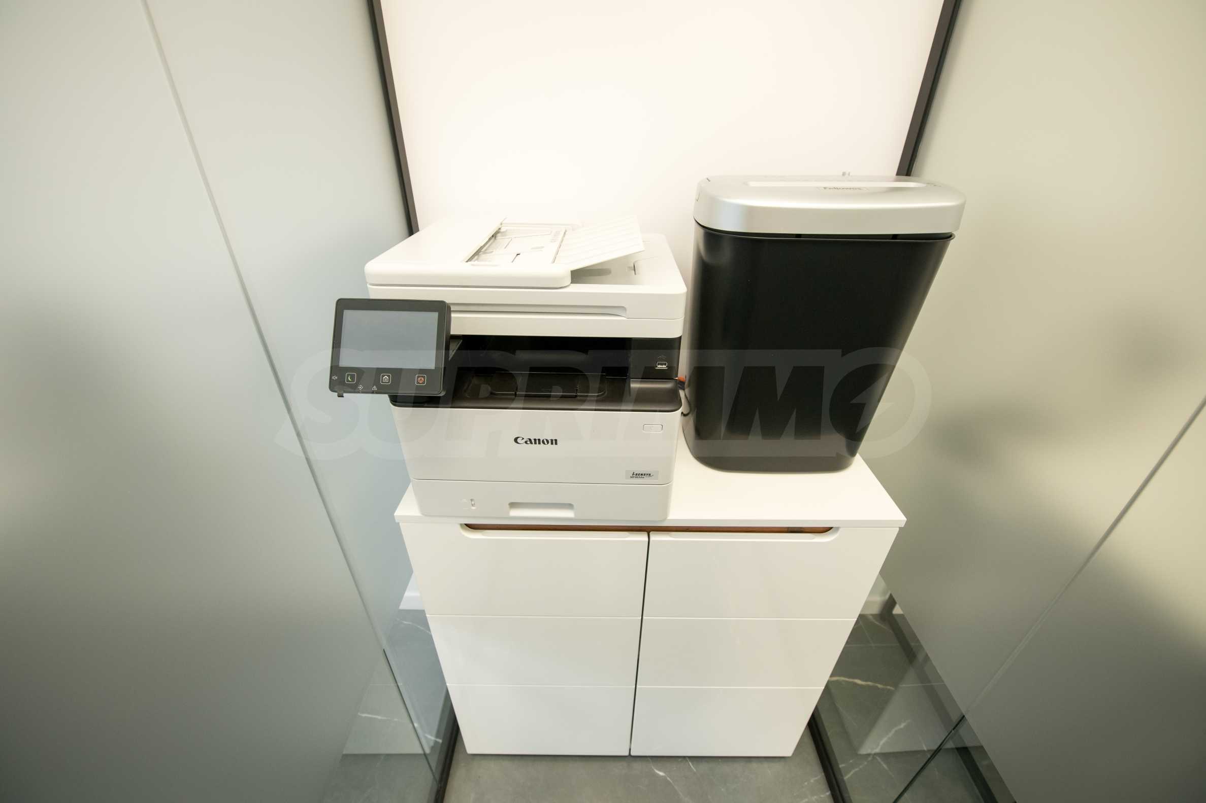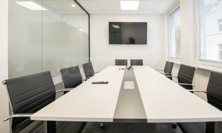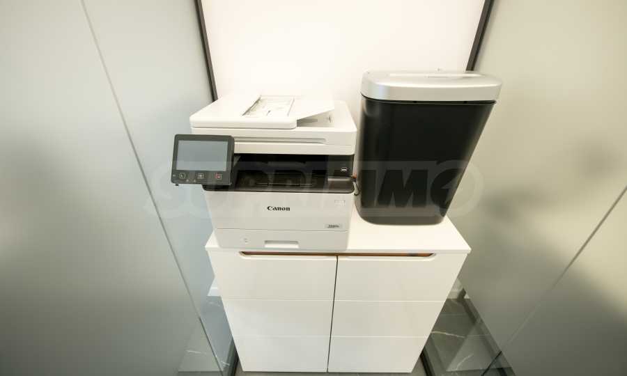 The premises are finished and equipped with 20 workplaces as seen in the pictures. The space is divided between 10 independent work rooms of different sizes, a reception, a kitchen with a place to eat, a printing corner, sanitary facilities, a corner for rest and socialization. Each room is fully equipped and prepared for work process.
