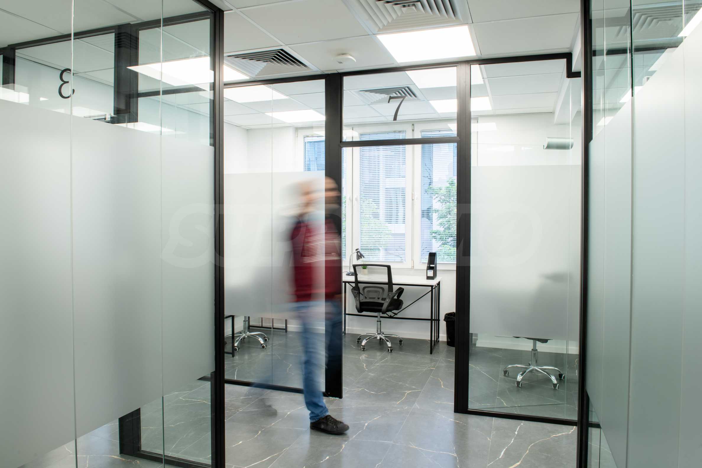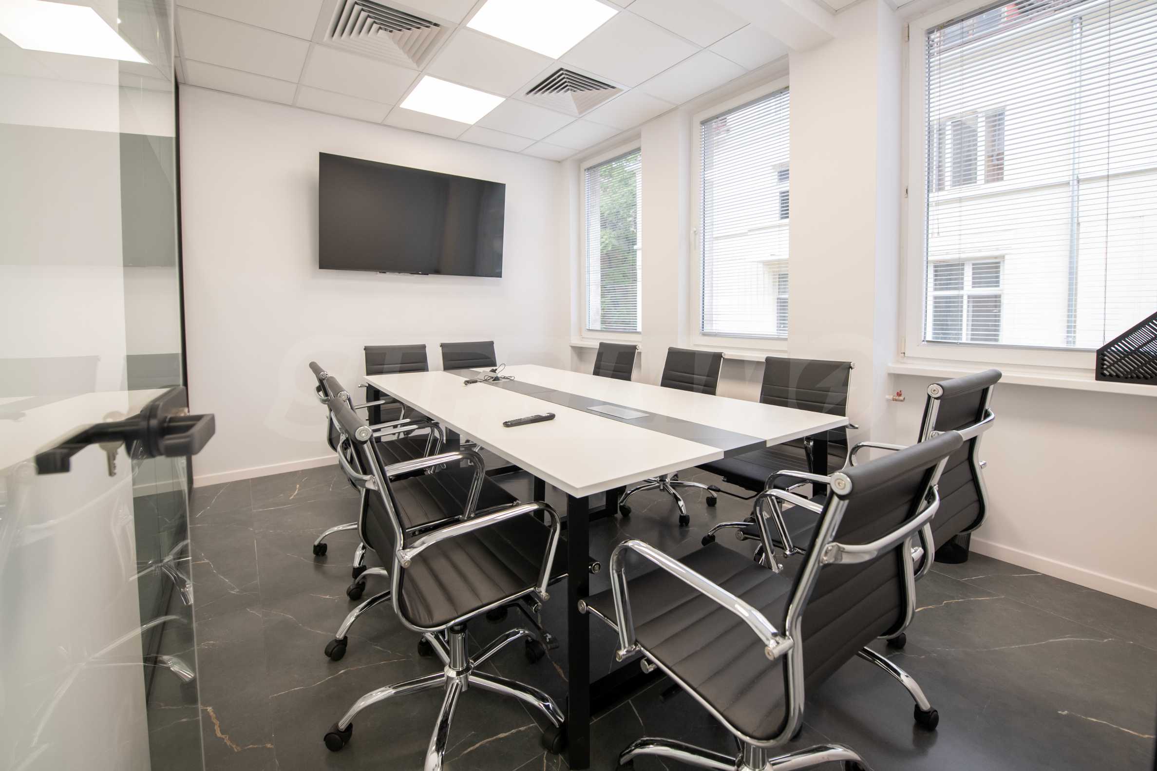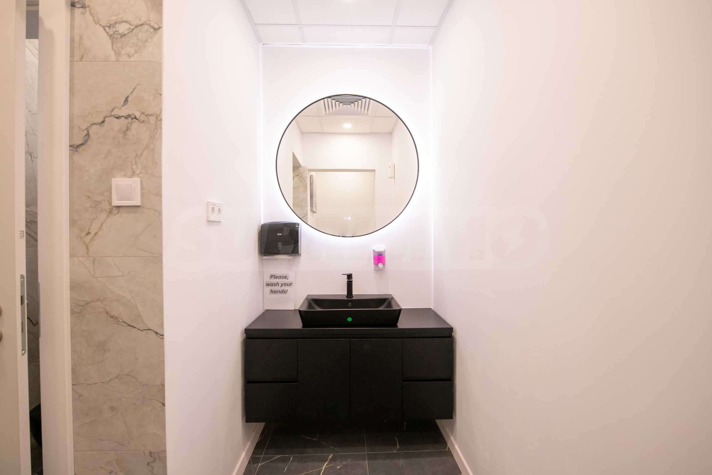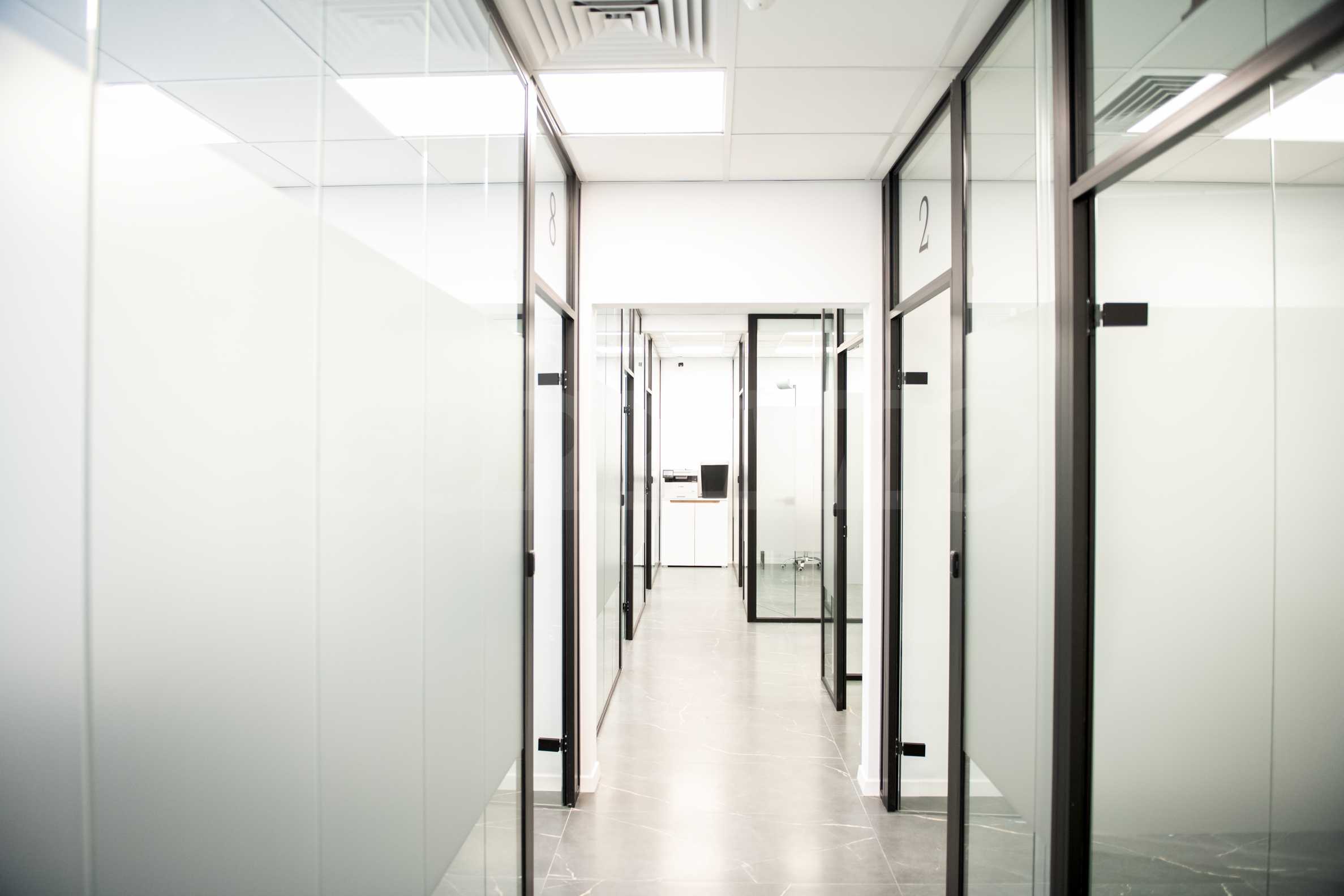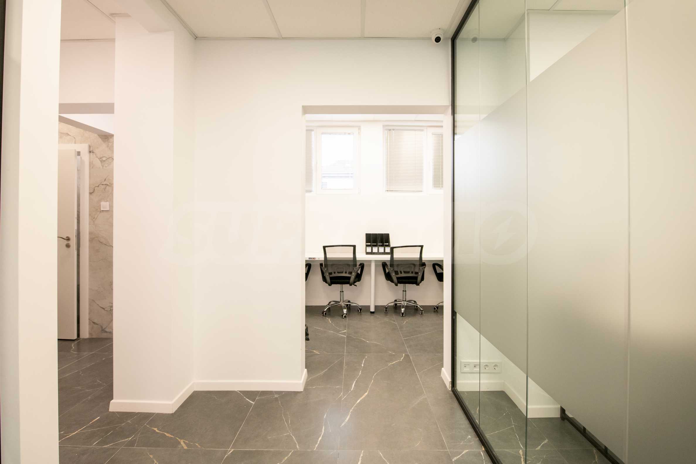 A variety of restaurants and shops are available in the vicinity, as well as various options for getting around by public transport, including the Serdika and NDK metro stations. The office occupies an entire floor in a building with well-maintained common areas and an elevator.