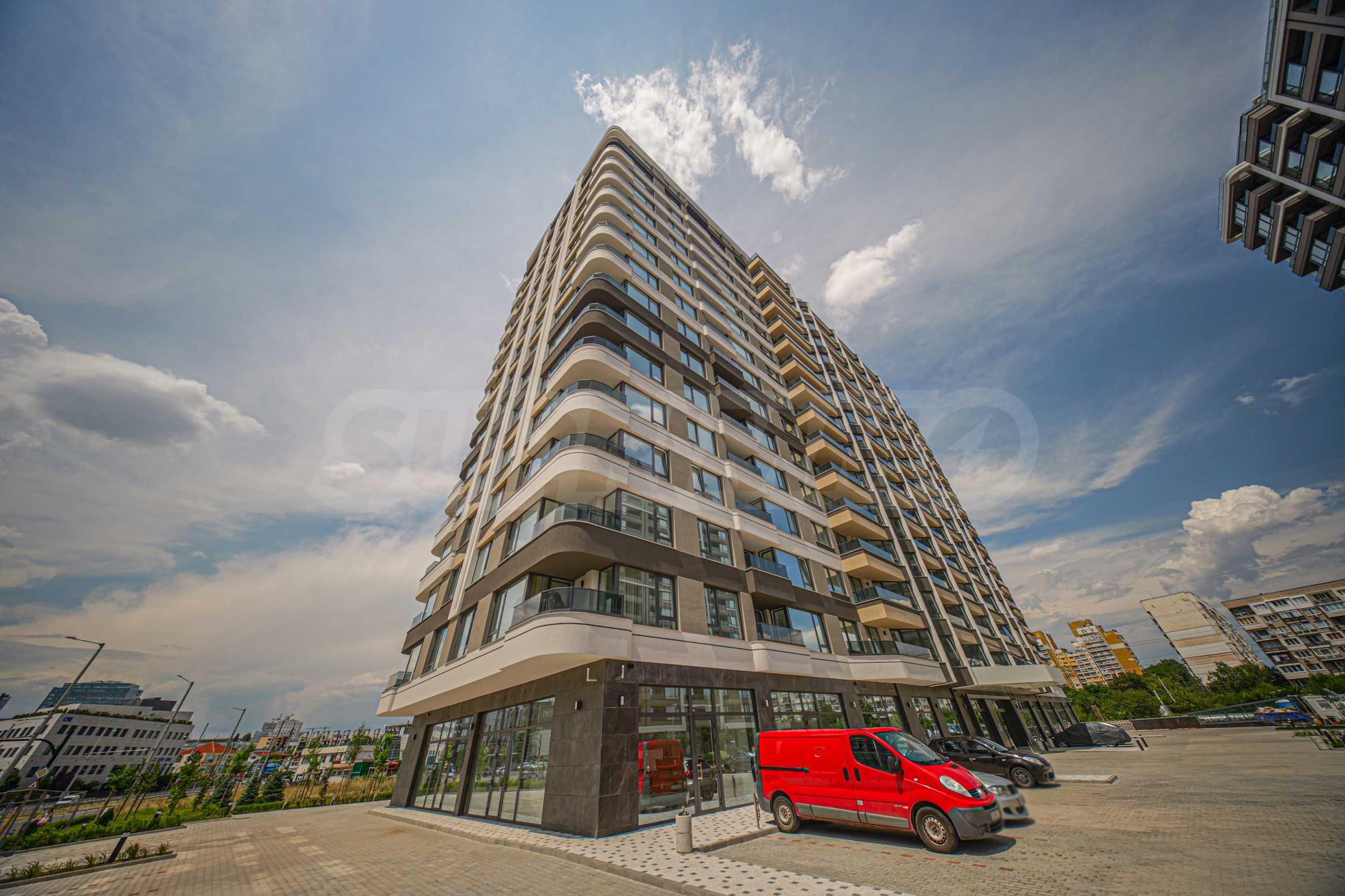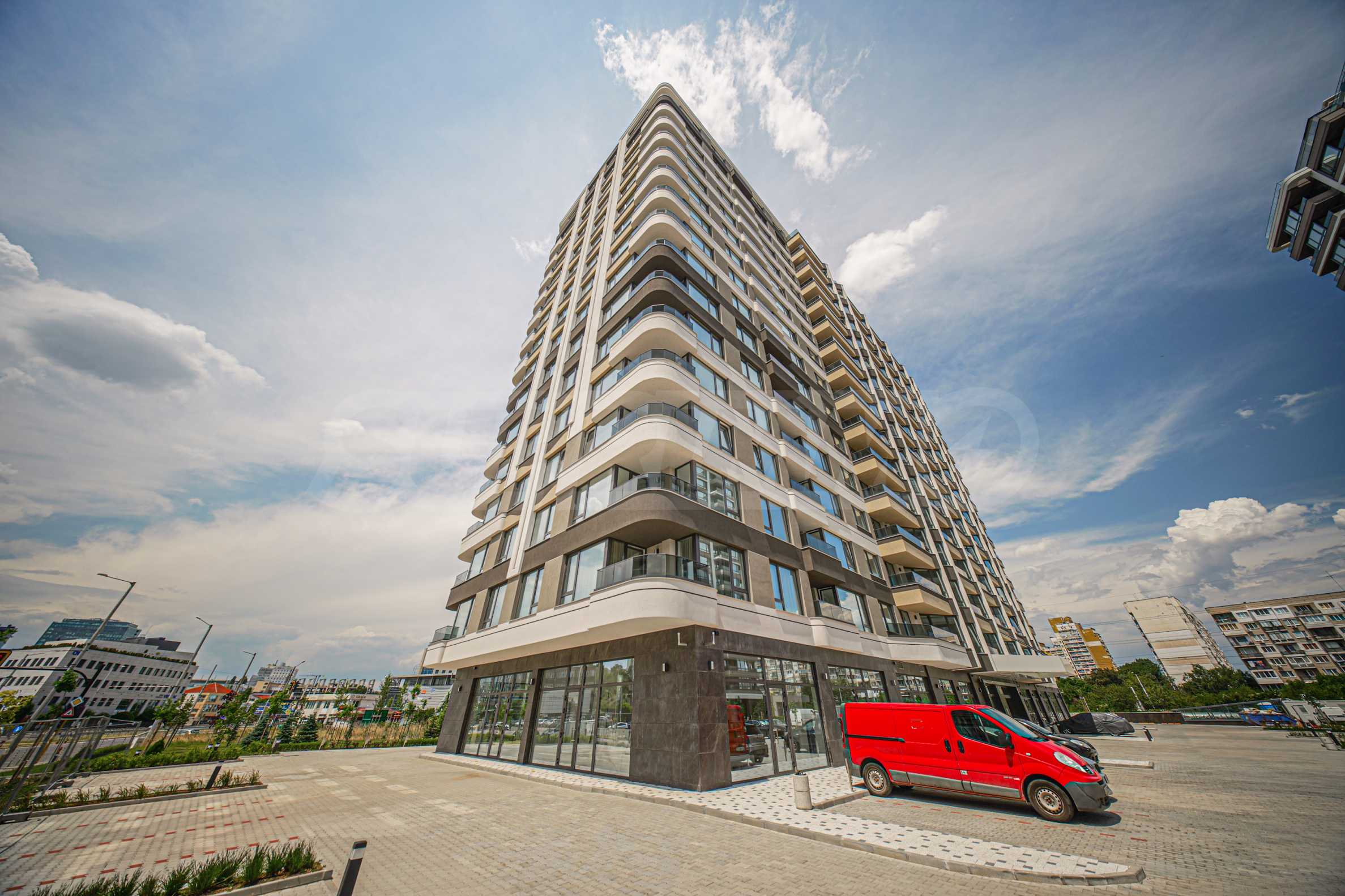 The 17-storey building satisfies the different needs and tastes of the working city person. The basement level and an underground street solve the parking to achieve maximum landscaping of the external areas. The building is oriented so that it catches the sun throughout the day, with the predominant exposure being southern, and the view of Vitosha is panoramic and stunning.