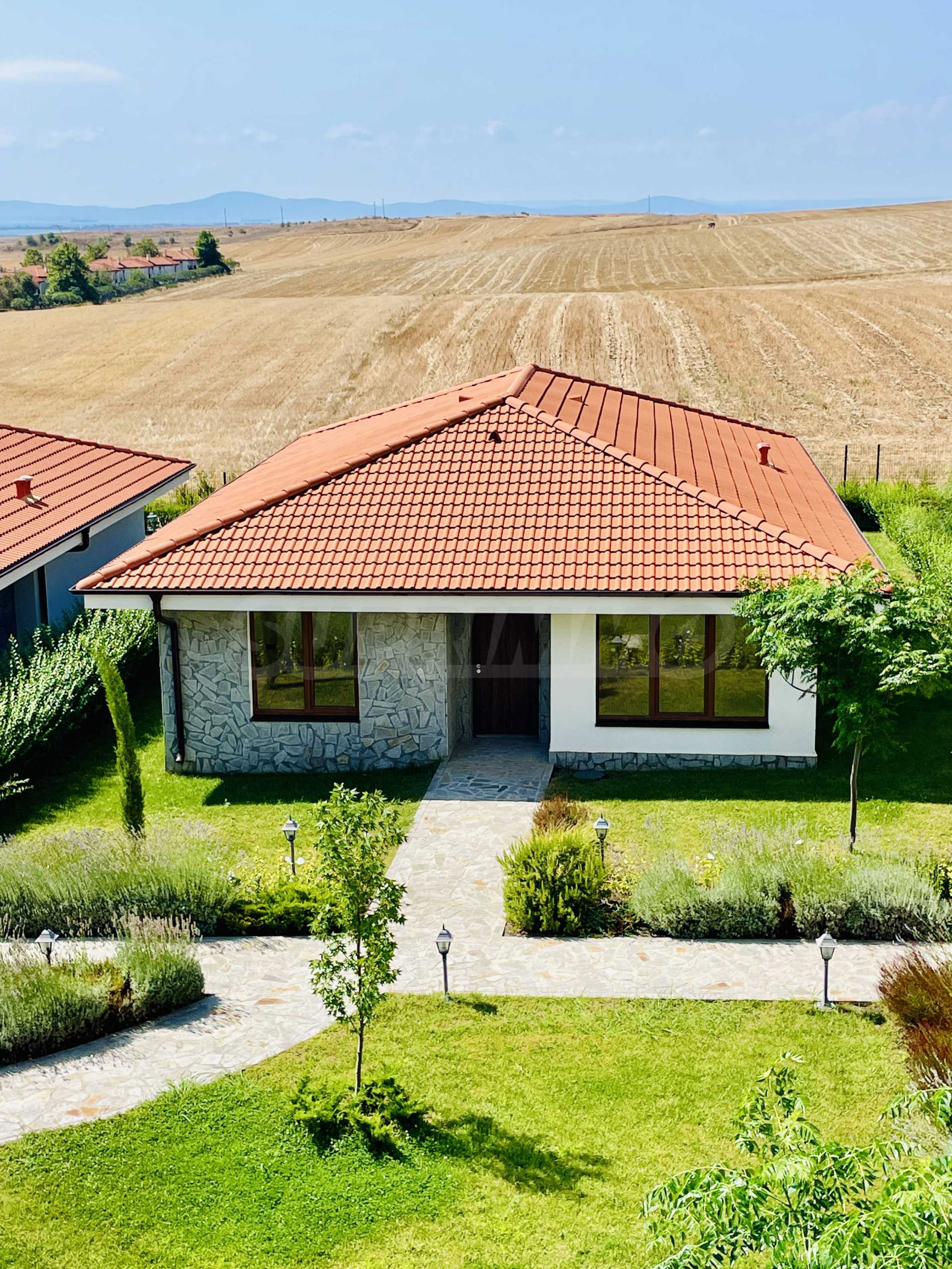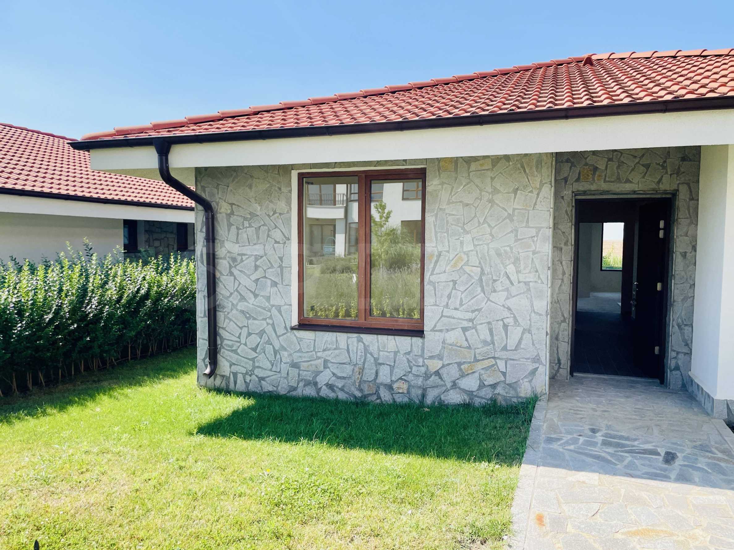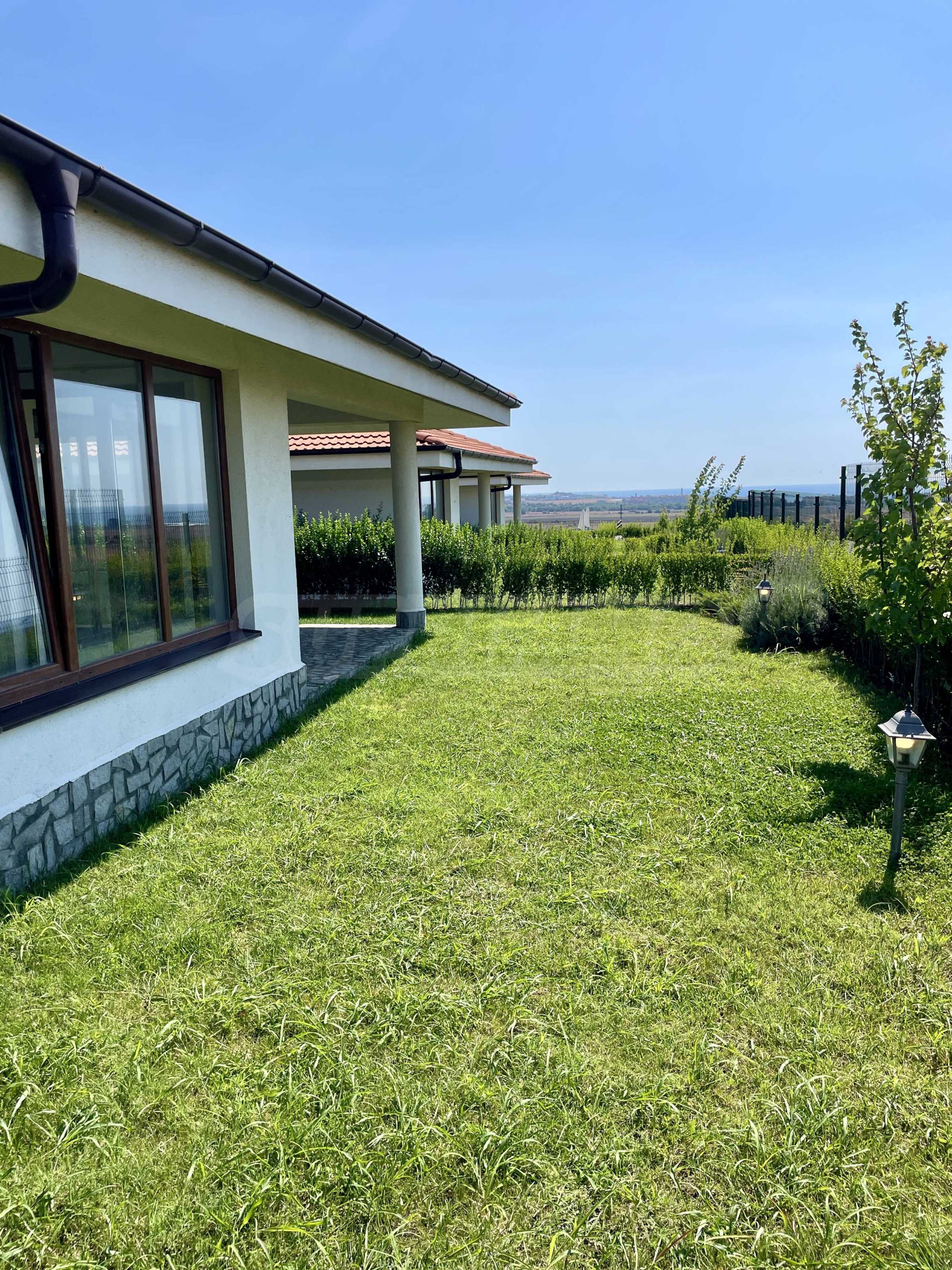 We present for sale a one-story house, part of a new complex, a continuation of an already built and successfully functioning resort of complexes and villas, in the ecologically clean area next to the towns of Aheloy and Kableshkovo. The project includes 2 buildings called "Panorama" and "Muscat", located on the hill with a sea panorama and views of the hills of Stara Planina.